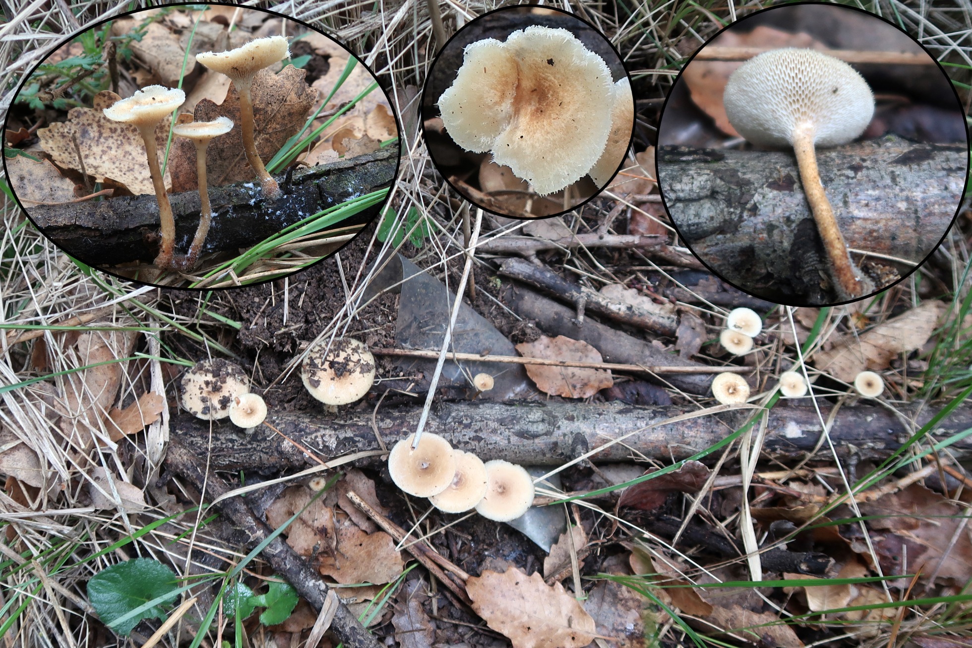 Y ya sin micro, un par de clásicos en este hábitat, por un lado el Polyporus arcularius = Lentinus arcularius.