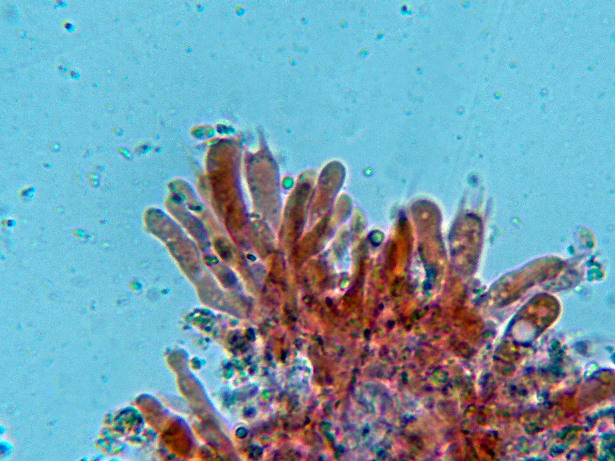 Hifas basales con incrustaciones y con pigmento intracelular ocráceo.