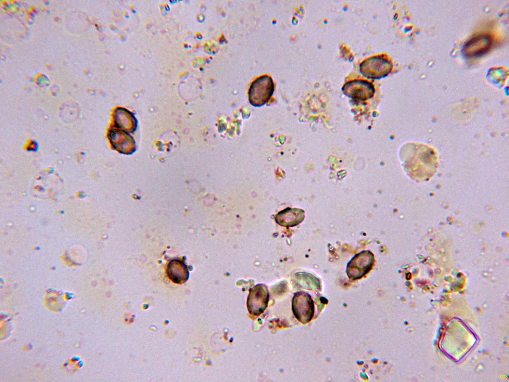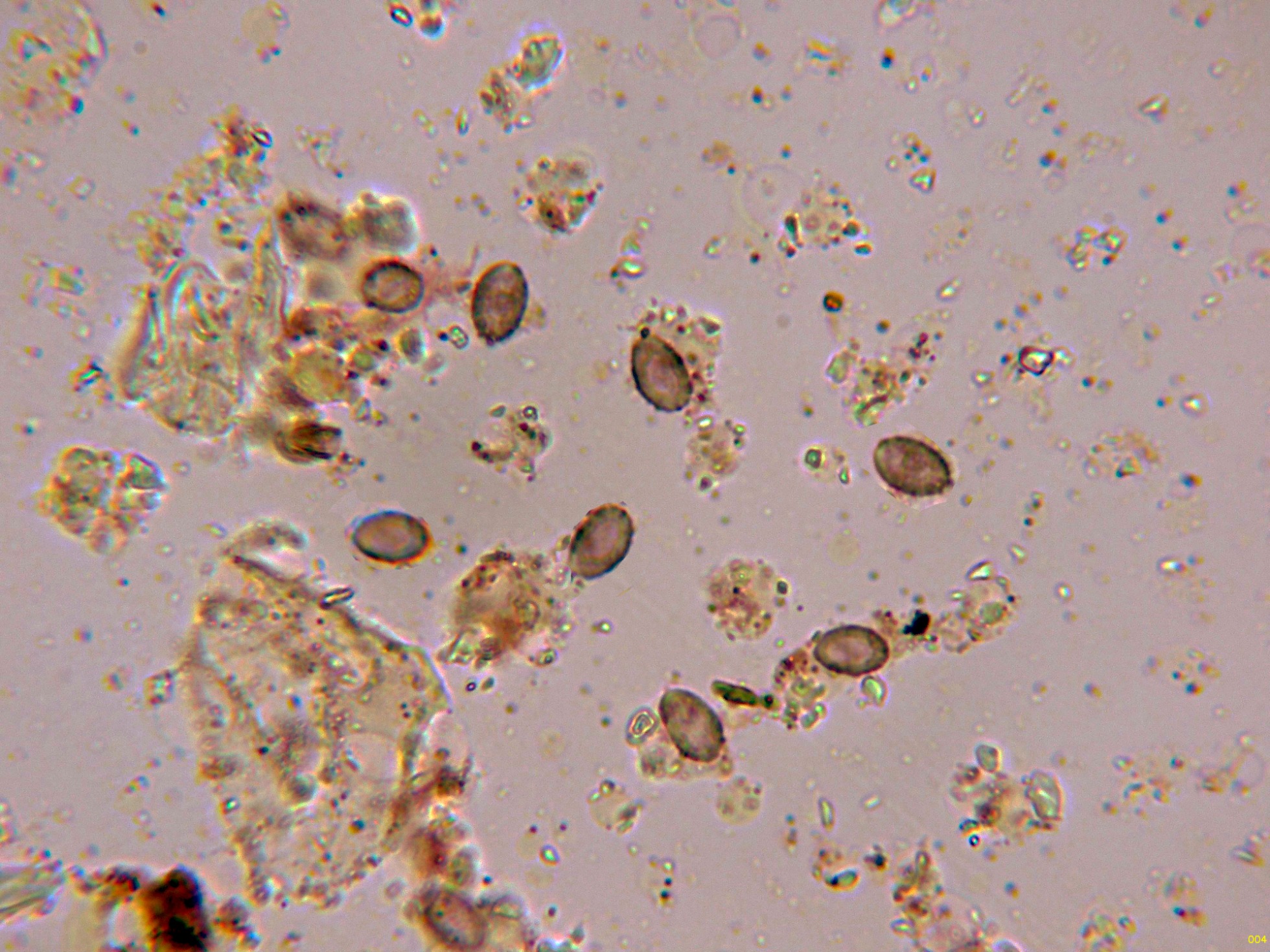 El hongo era aún inmaduro y soltó muy pocas esporas, estas esporas elipsoidales, de pared gruesa, pigmentadas y con unas medidas de (7.8) 8.6 - 9.3 (9.6) × (4.8) 5.3 - 5.9 (6.3) µm.