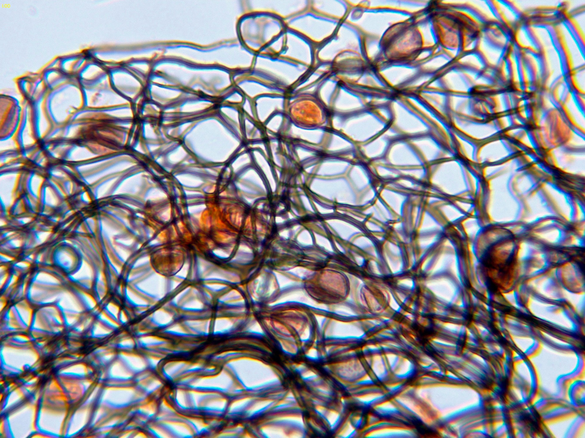 Fusionado de imágenes de un esporocarpo a 100 aumentos.
