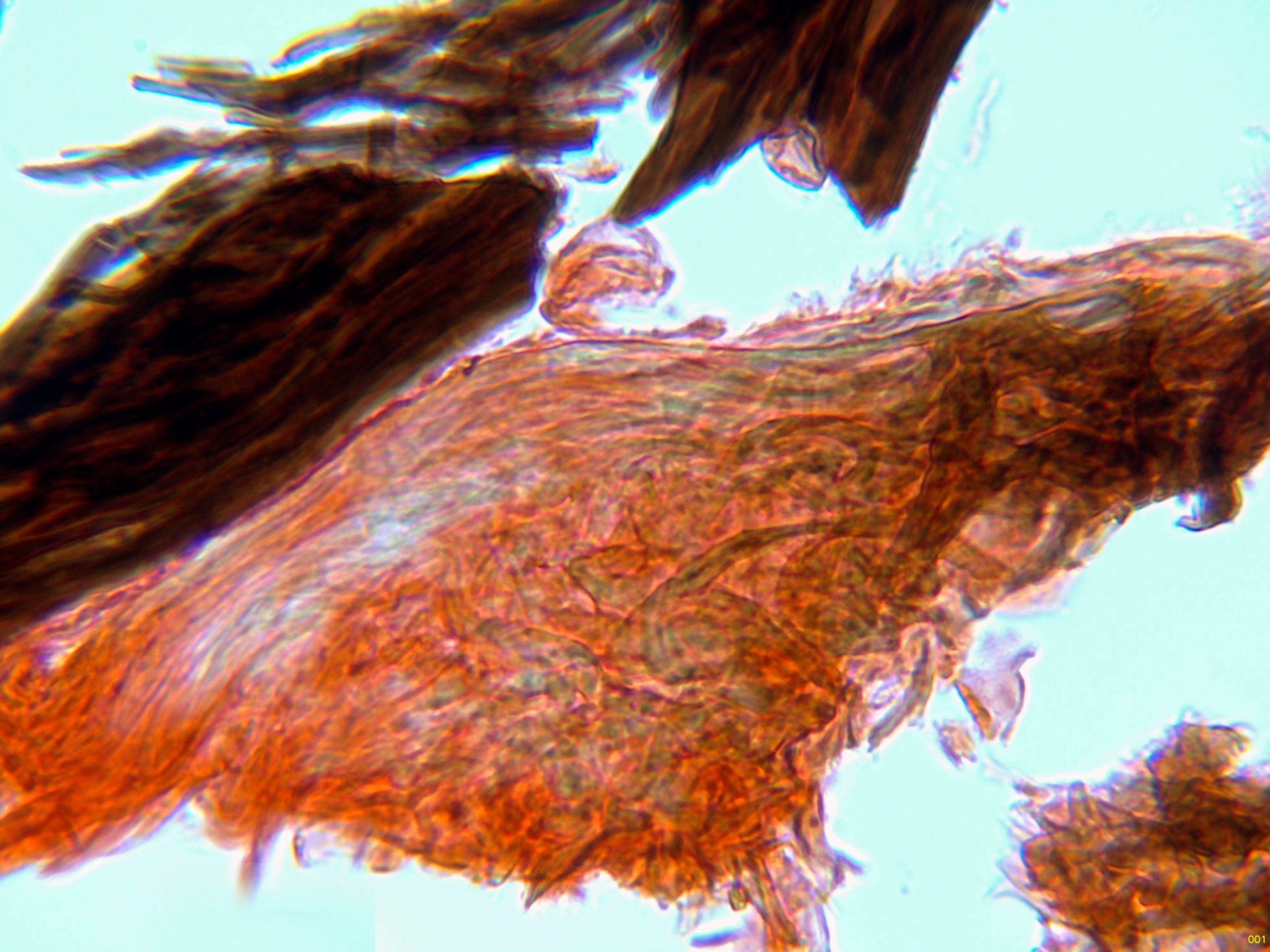 Unas pocas esporas en solución de Rojo Congo diluido.