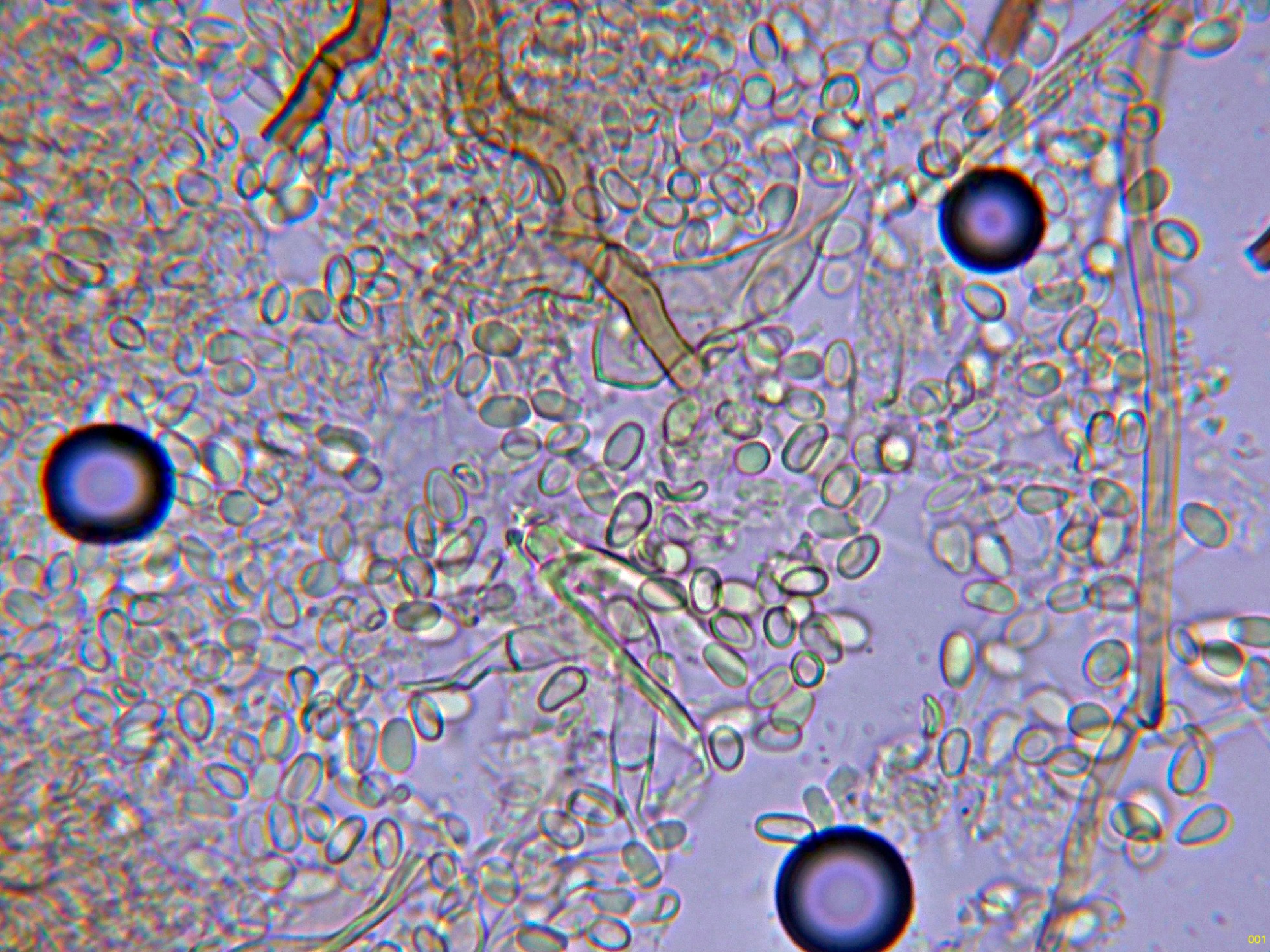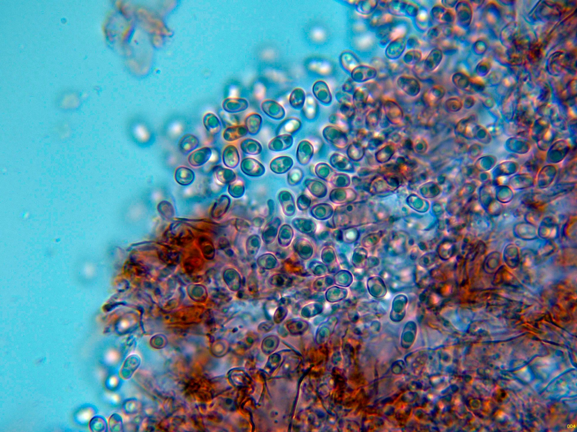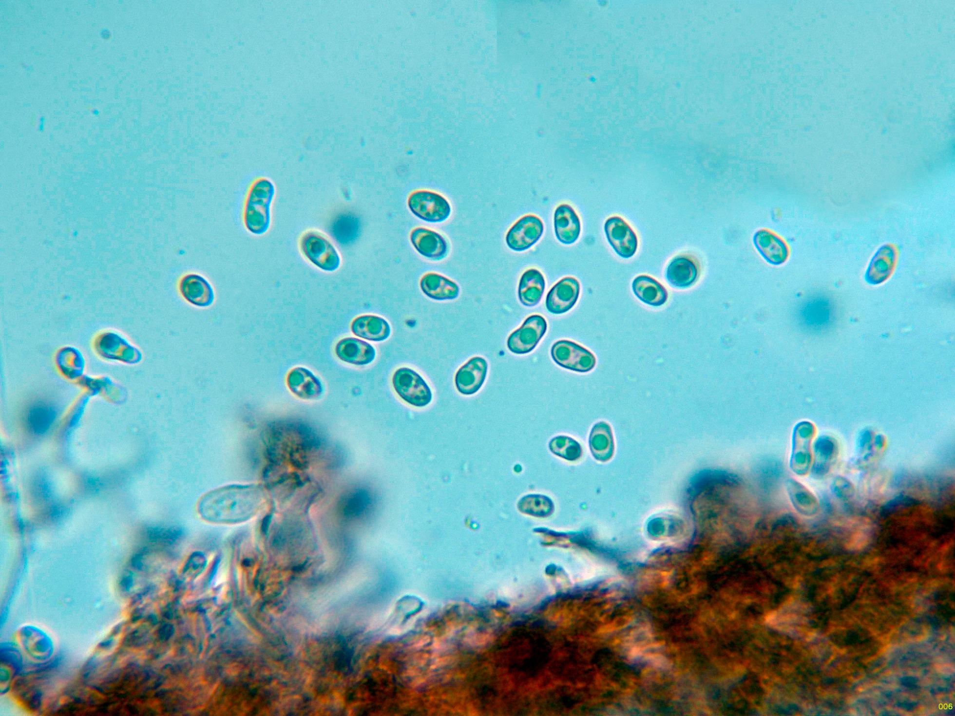 Estudio contrastado con con la información detallada en el artículo de Karstenia 30-2 1990-2, que literalmente indica las esporas elipsoides, de paredes gruesas, con el lado adaxial recto o ligeramente convexo, lado abaxial cóncavo, y con unas medidas de 4.9- 6.0 x 3.0 - 3.7 µm, Q = 1,5--1,9, Qe = 1,6.