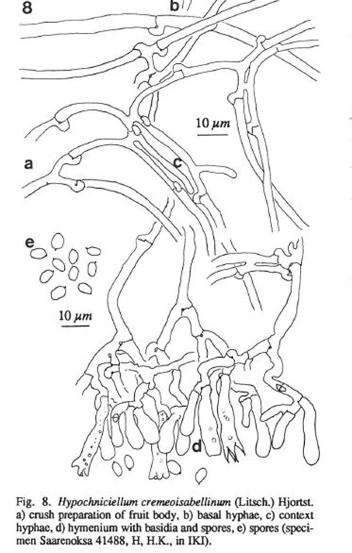 Adjunto una imagen del documento de Karstenia 30-2 1990-2, con un dibujo de la microscopía del Hypochniciellum cremeoisabellinum.