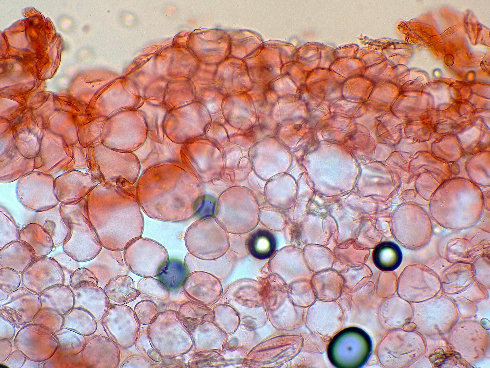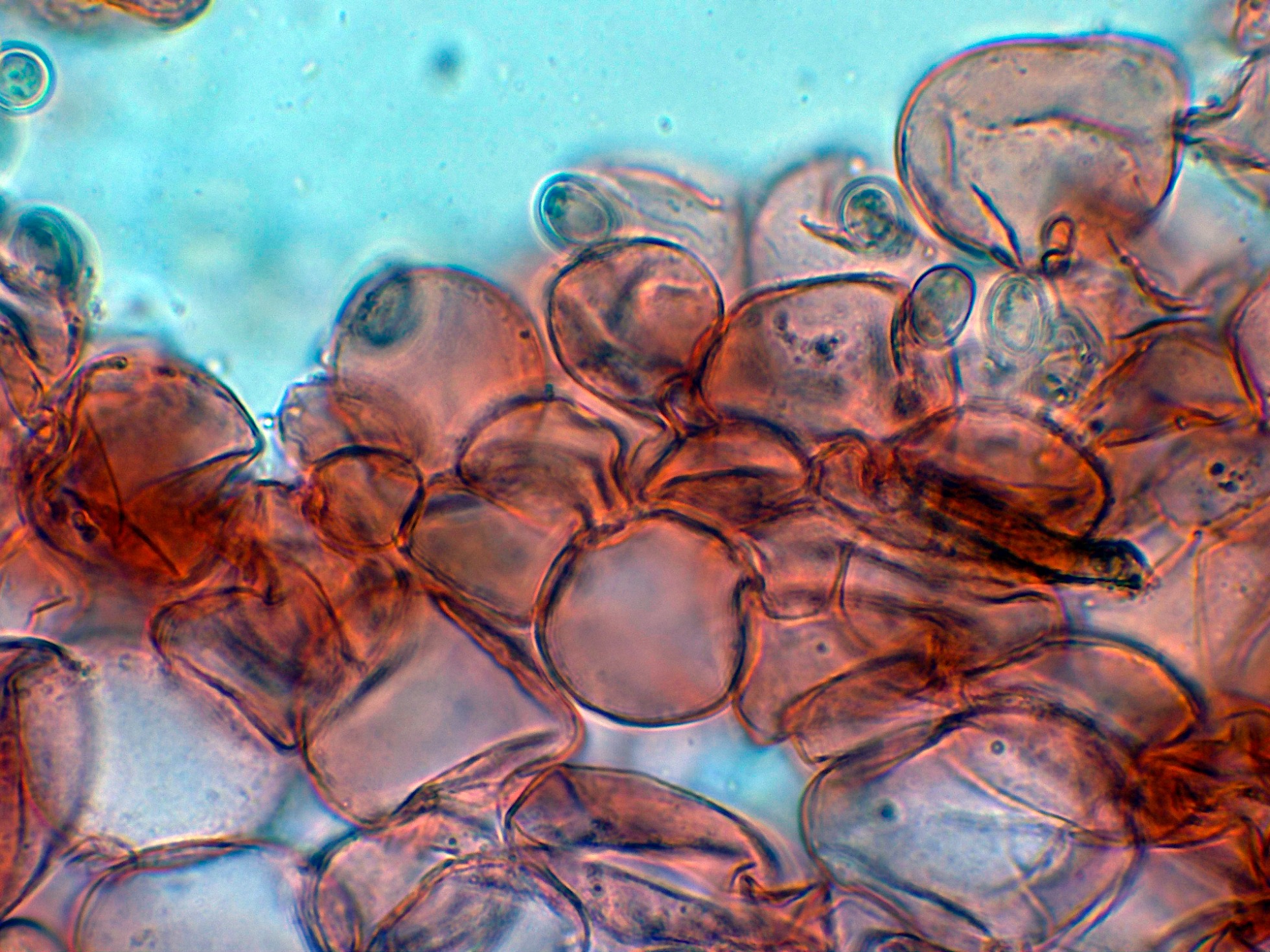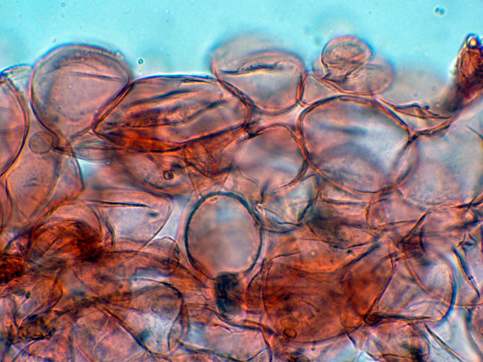 Cutícula celulósica, con hifas de la suprapellis globosas con unas medidas de (21.9) 25.2 - 37.4 (42.3) × (18.6) 21.9 - 27.9 (33.7) µm.
