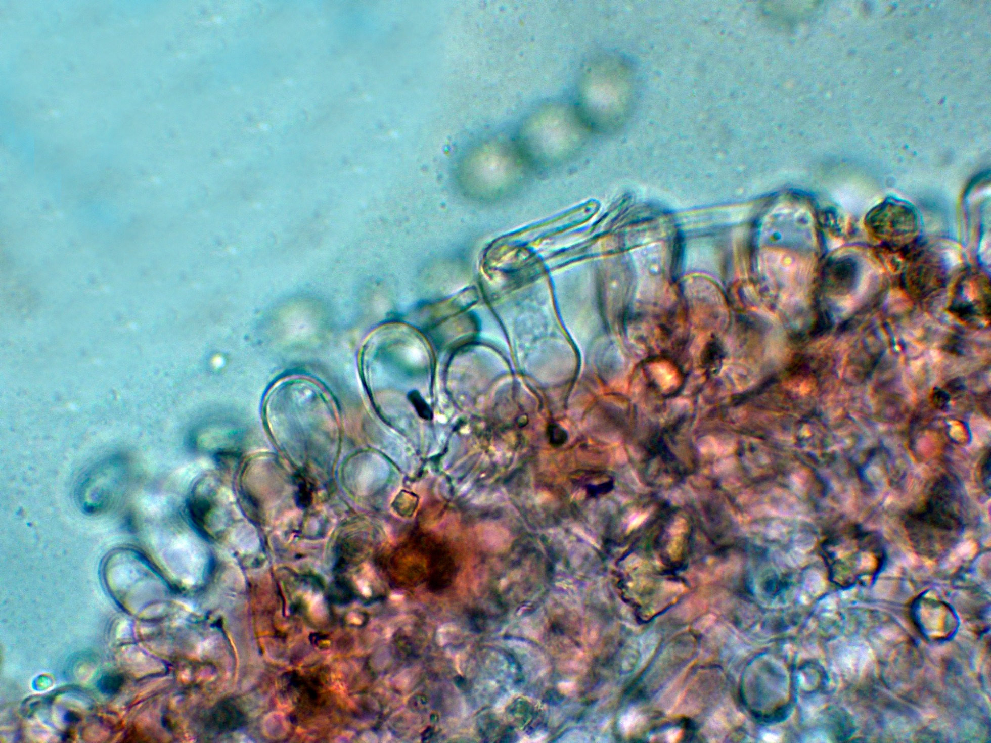 En este mismo documento de describen unos queilocistidios con unas medidas de 30-65 x 10-15 μm., estratosféricamente por encima de las de este estudio, además de las medidas esporales de 6,3-10,7 x 4,5-5,9 μm. en este caso por debajo.