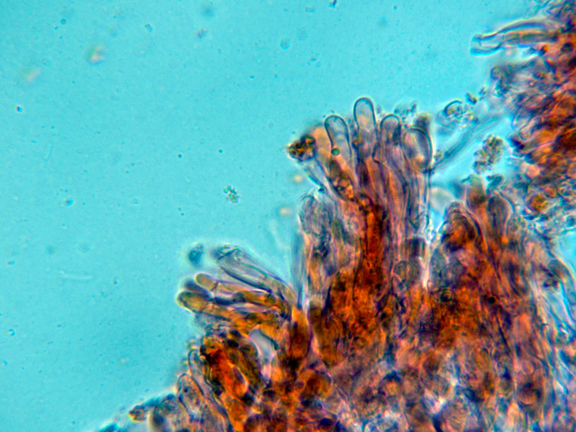 Himenio con muy pocos elementos diferenciados de los basidios, y aparentemente sin cistidios.