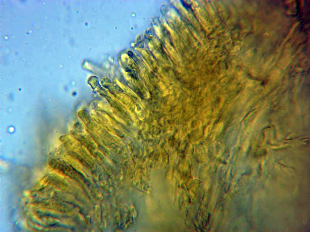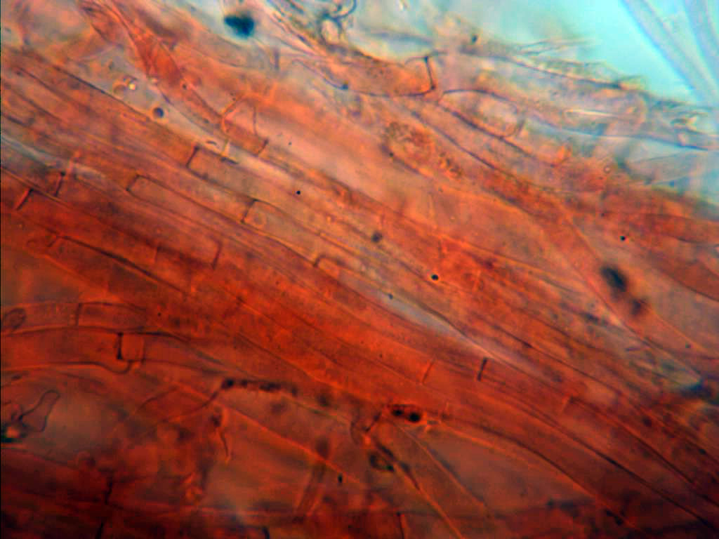 Pileipellis compuesta por unas hifas filamentosas dispuestas más o menos paralelamente y fibuladas.