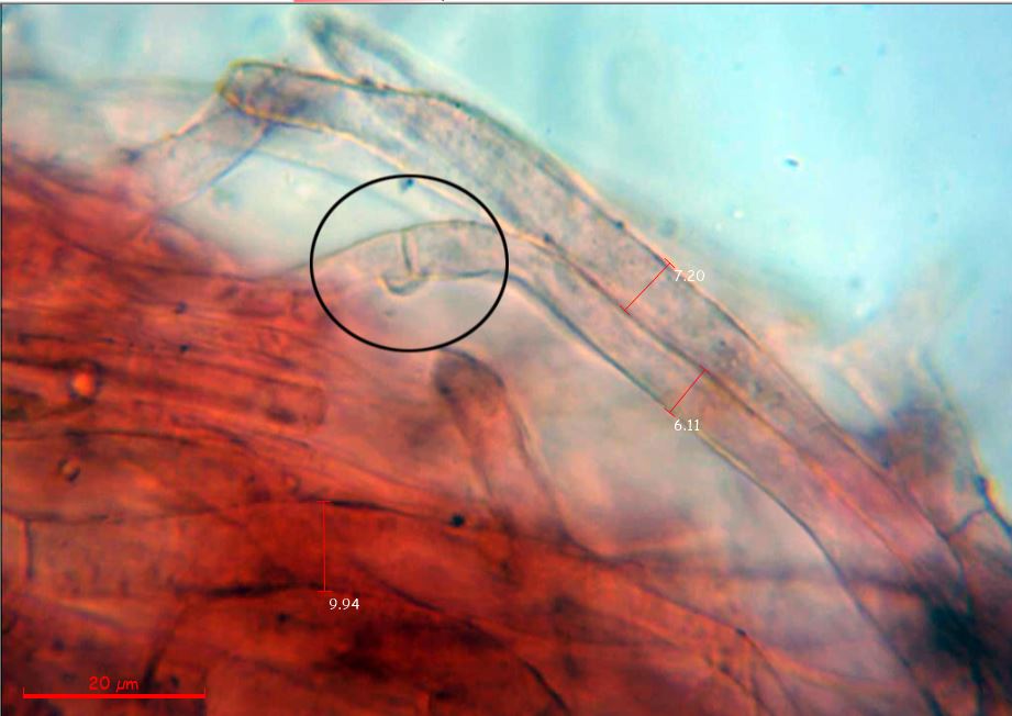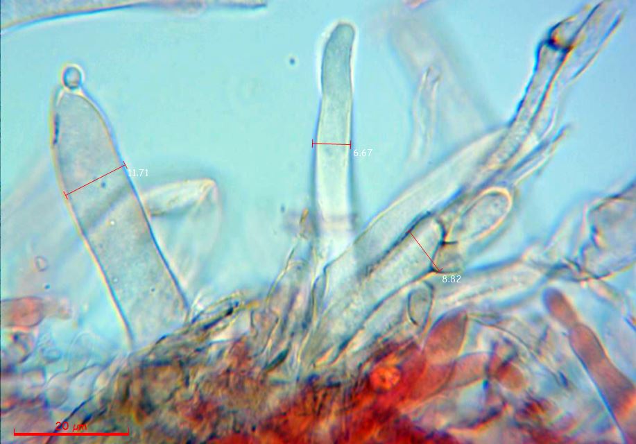 Las hifas de la pileipellis con sus medidas en anchura.