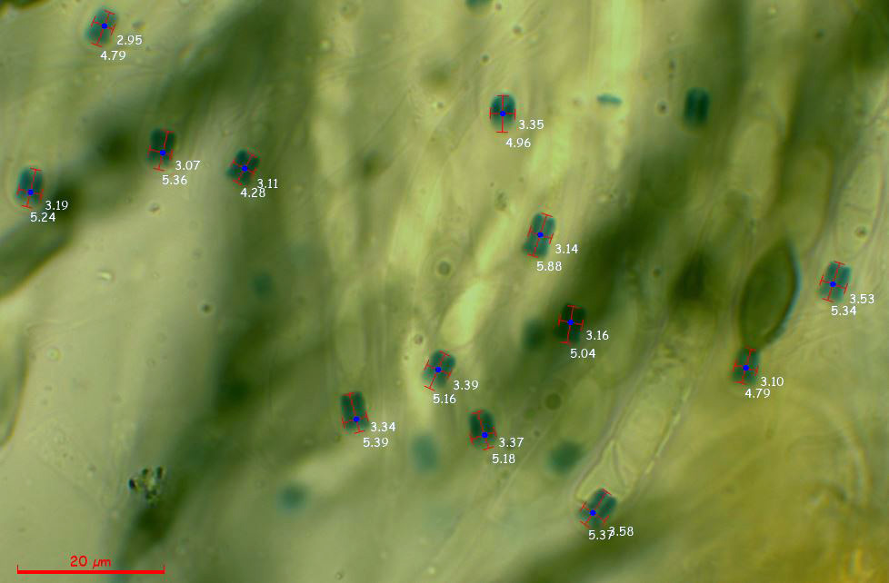Las ascosporas obtenidas por esporulación natural y en agua con unas medidas de: