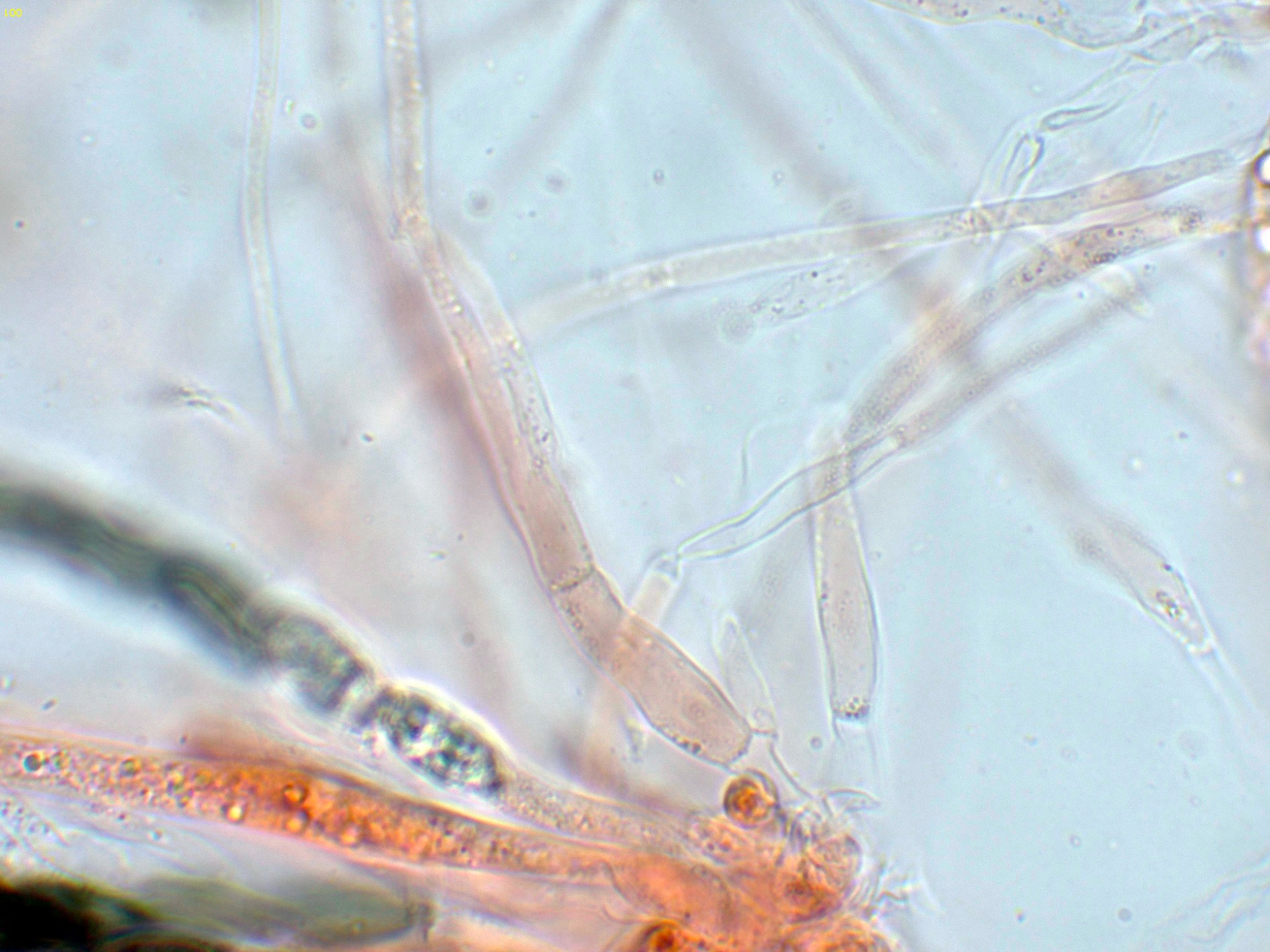 Materia interascal a modo de paráfisis, filiforme, hialina, sin uncínulos que sobresale notablemente por encima del nivel de los ascos.