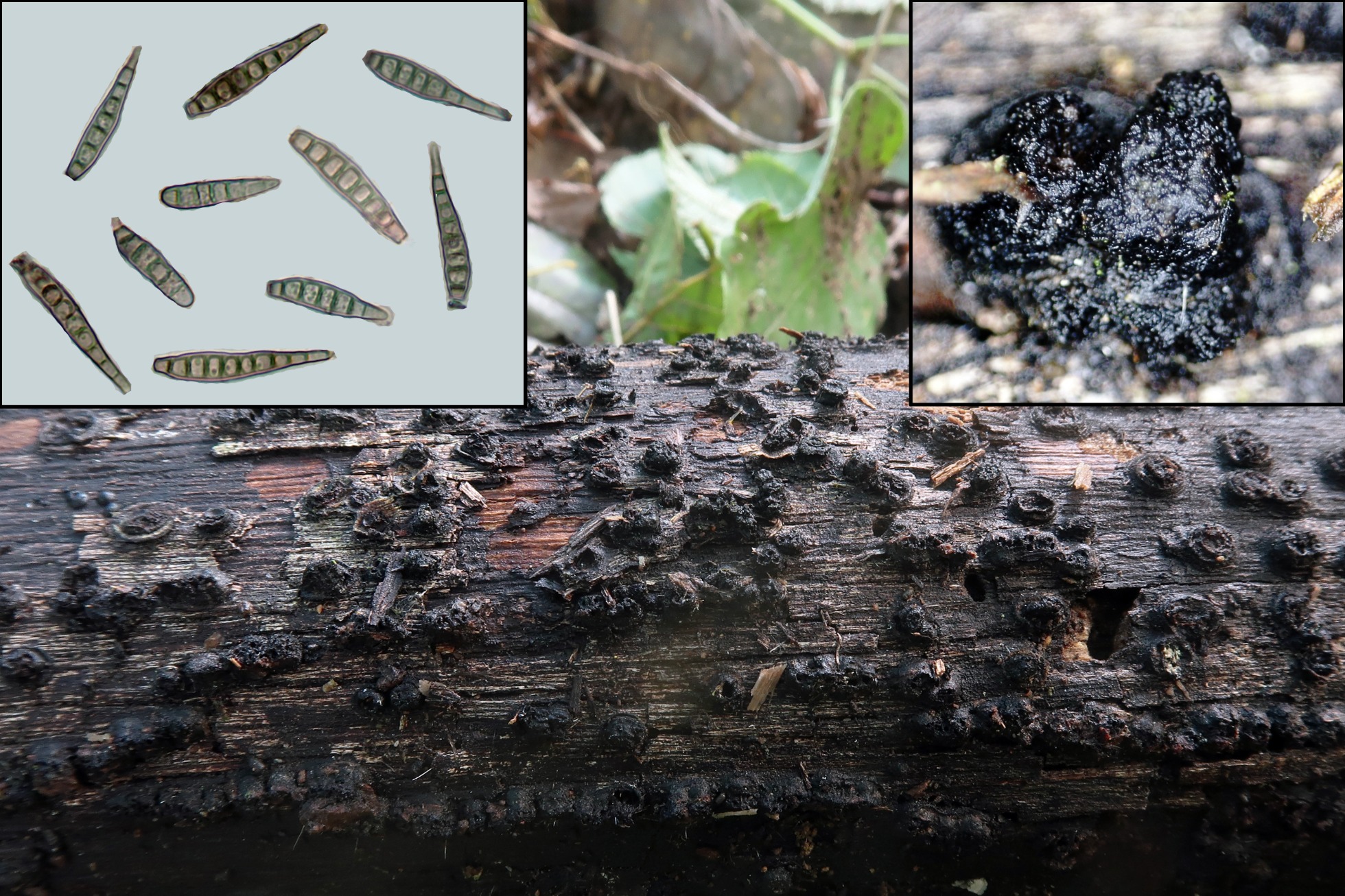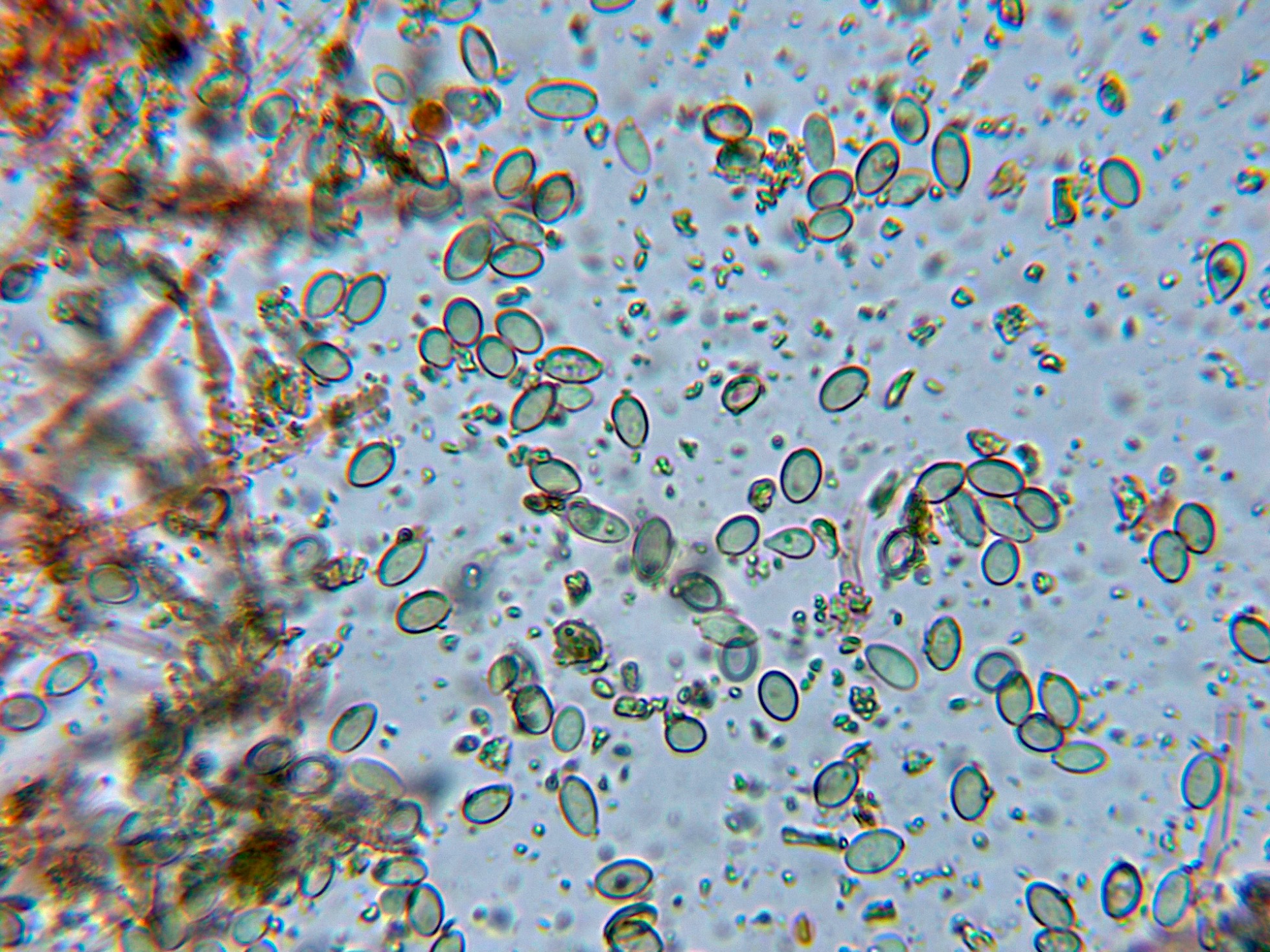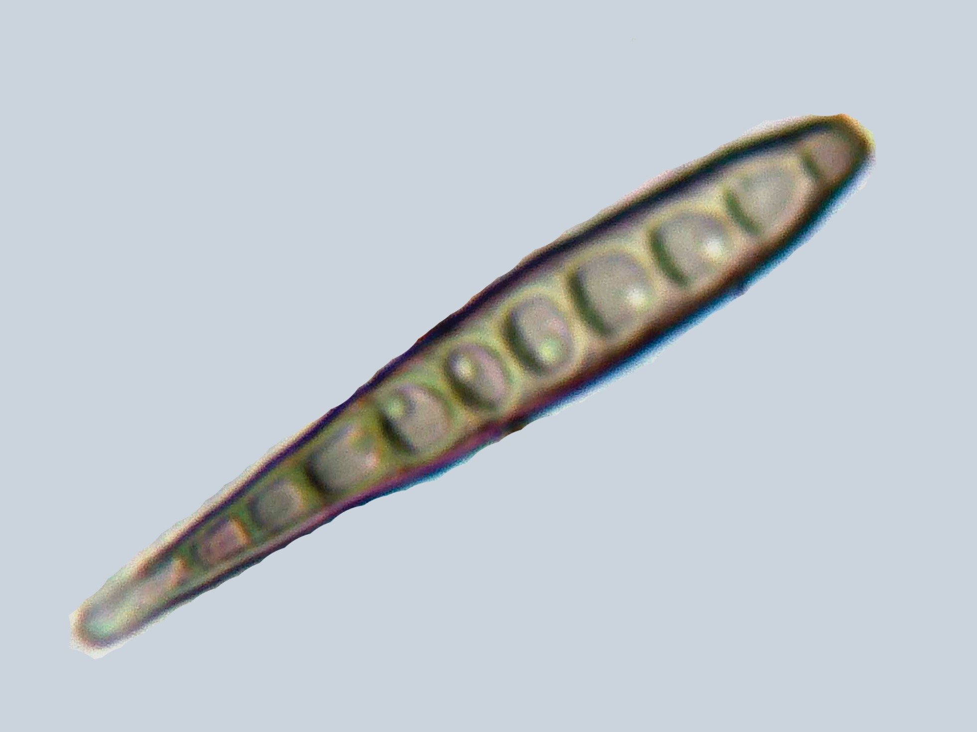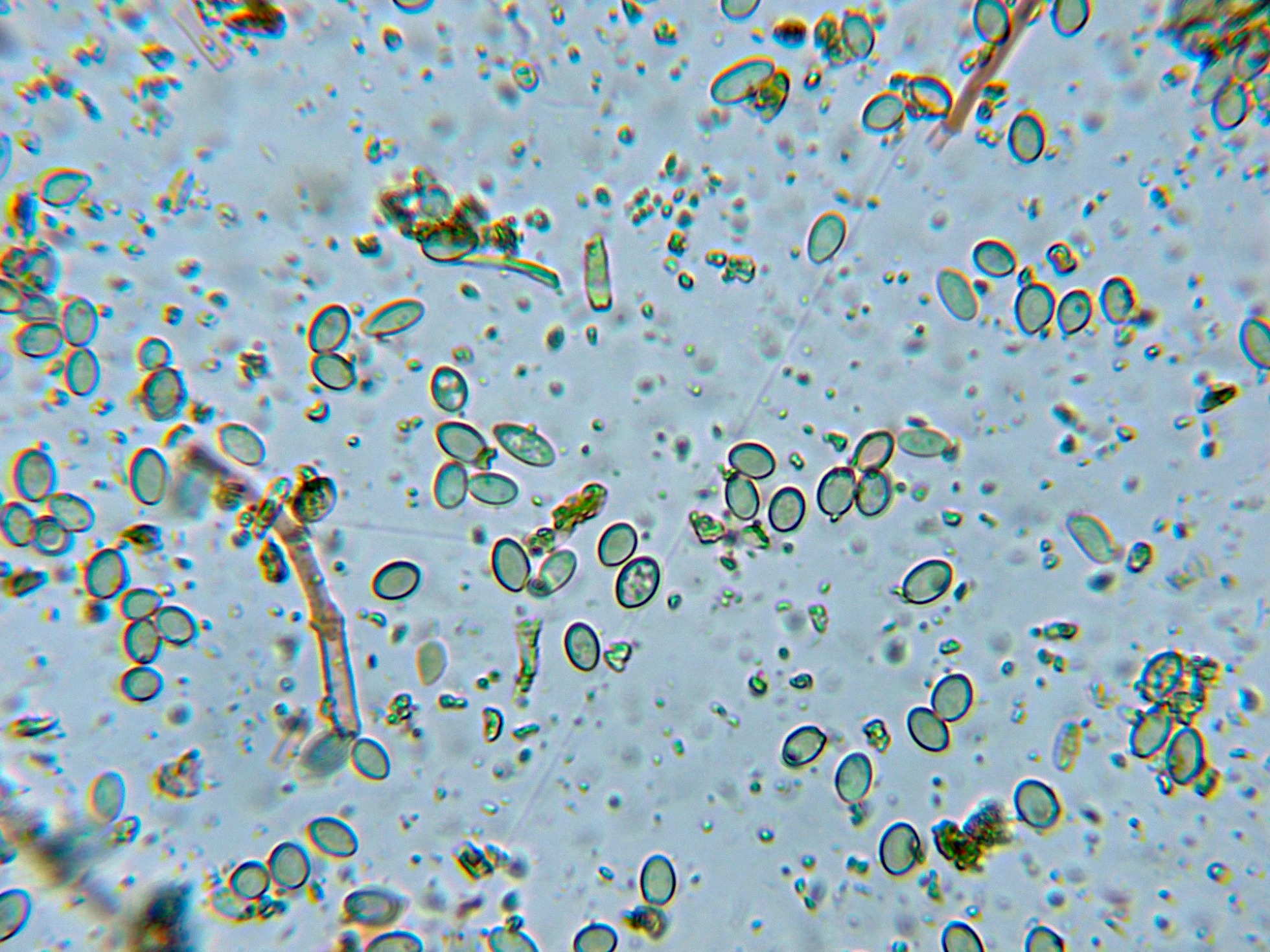 La microscopía con estos conidios truncados y el ápice hialino parece apuntar a alguna especie del clado Helminthosporium / Sporidesmium