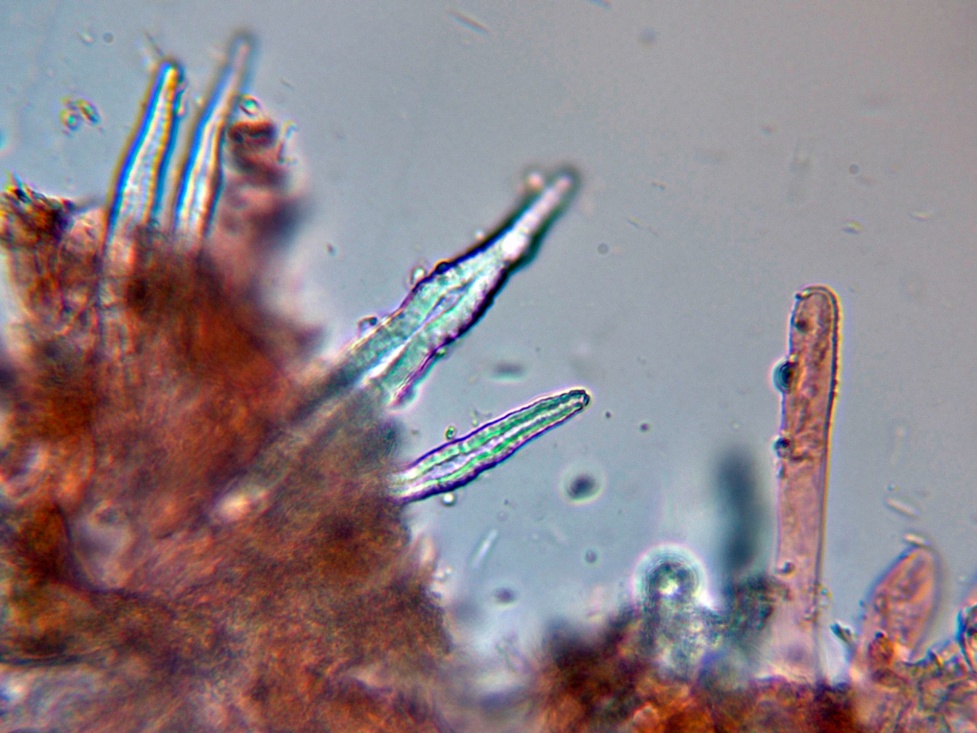 Un par de imágenes de los cistidios de la discordia (nunca los había visto en los estudios realizado a la especie).