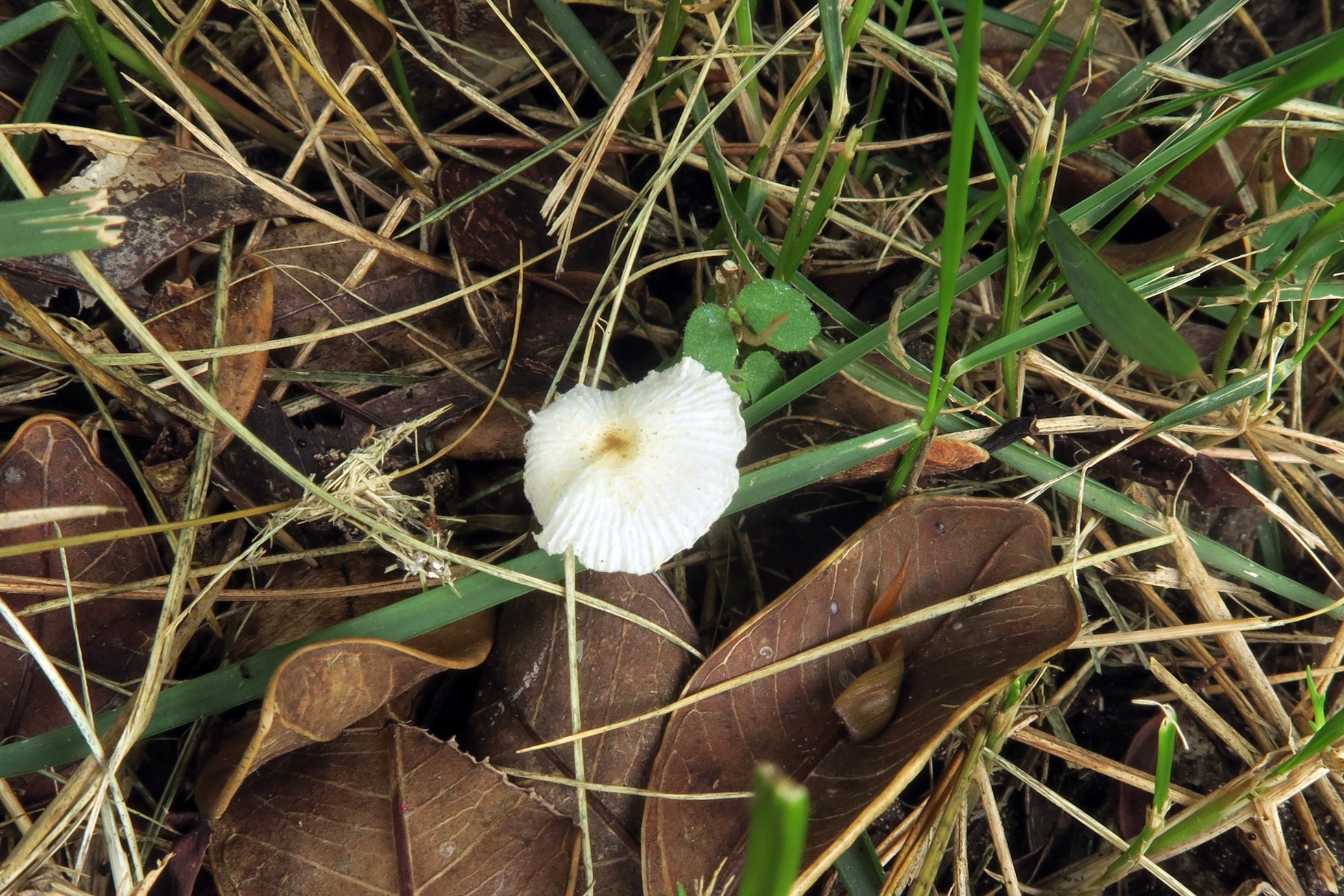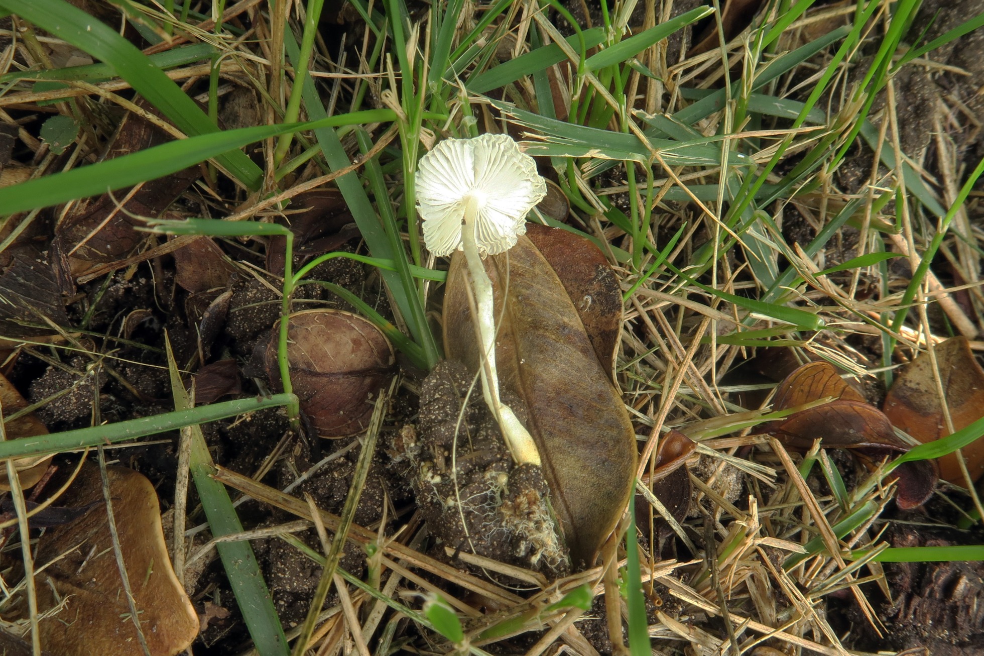 No lejos del anterior y compartiendo el mismo hábitat, me encontré con un Leucocoprinus, el Leucocoprinus cretaceus.