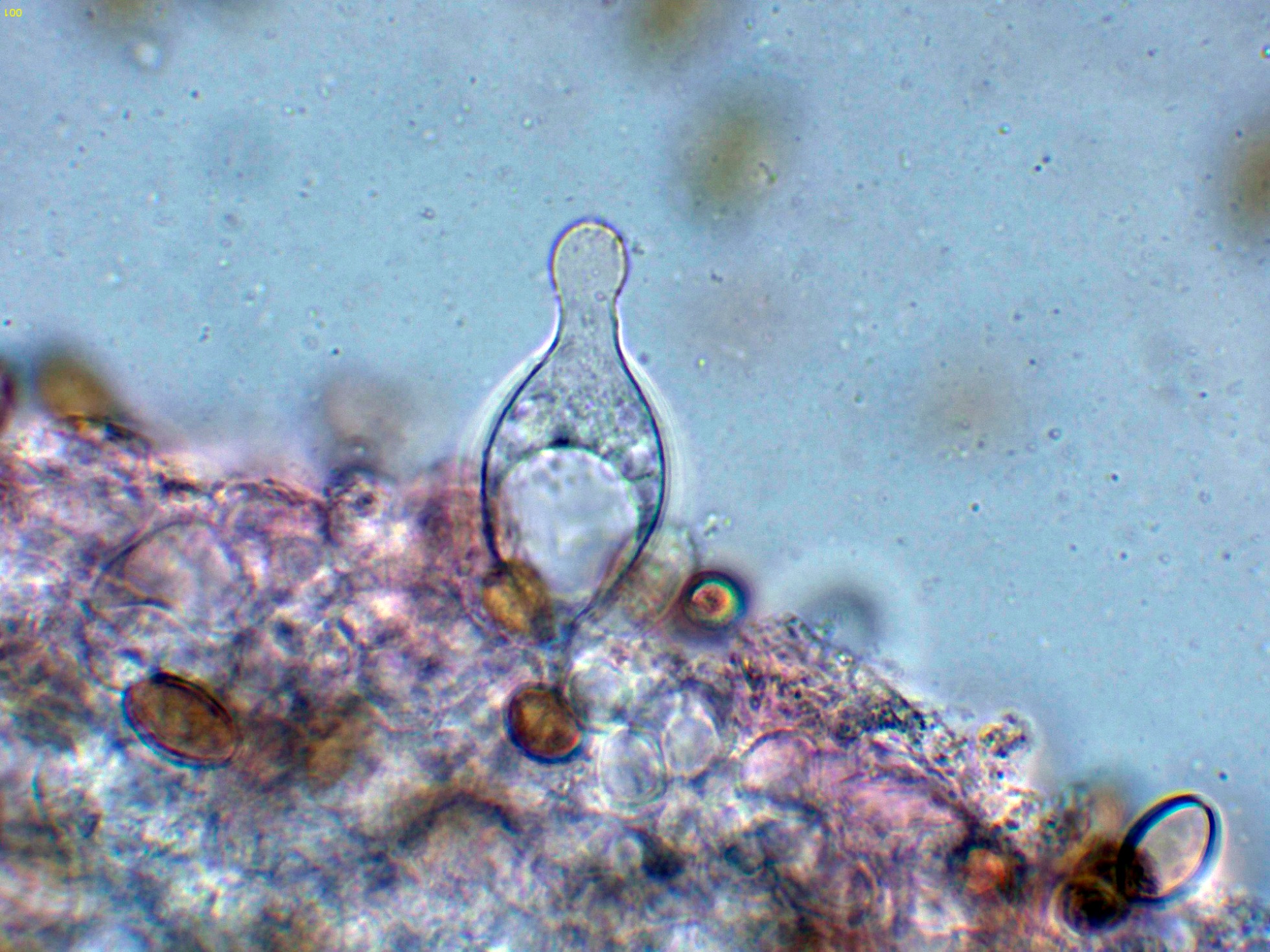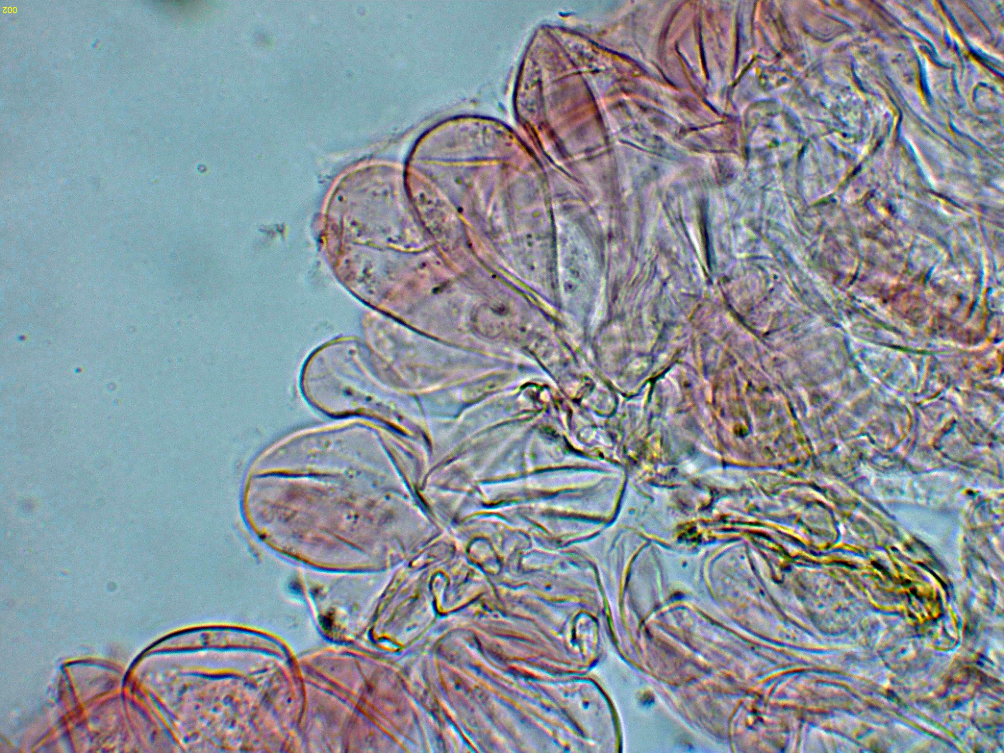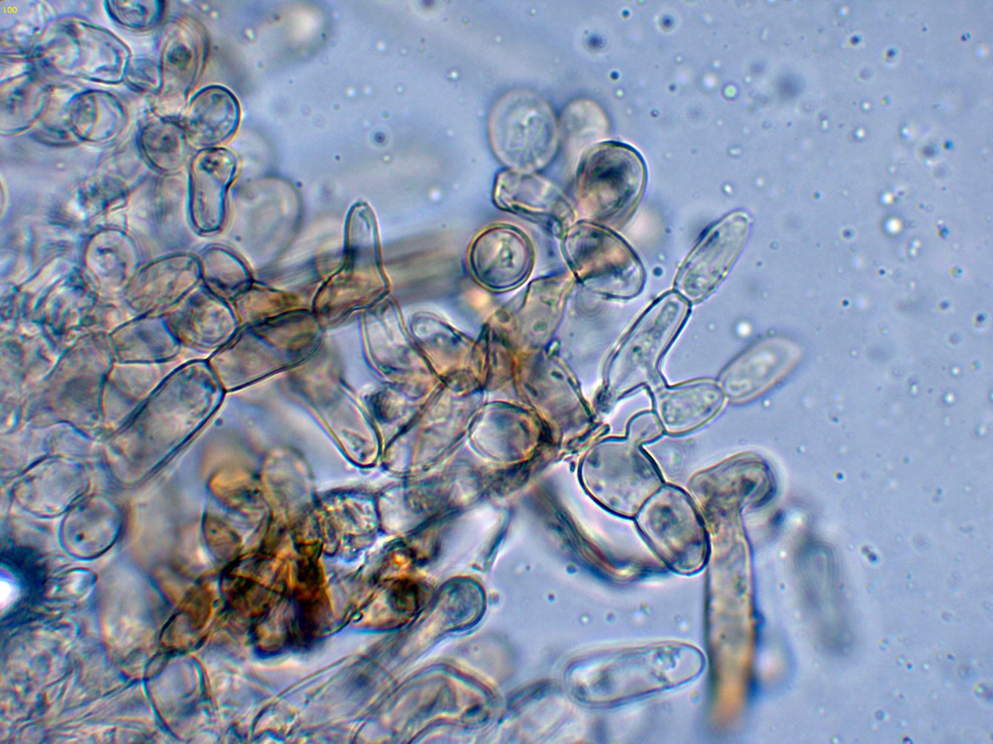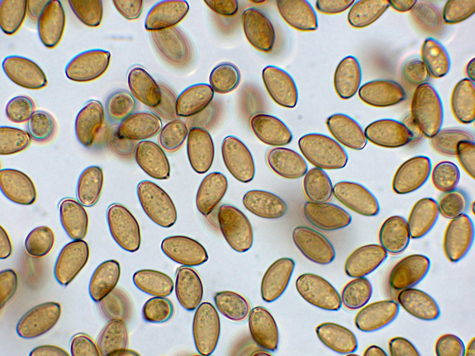 Y sus esporas, en la miniatura en Reactivo de Melzer con reacción fuertemente dextrinoide.
