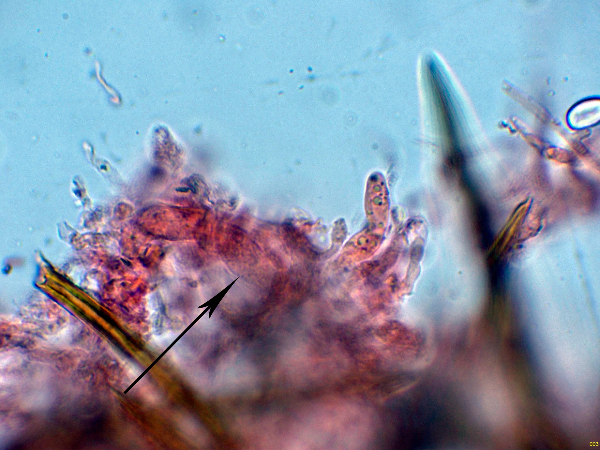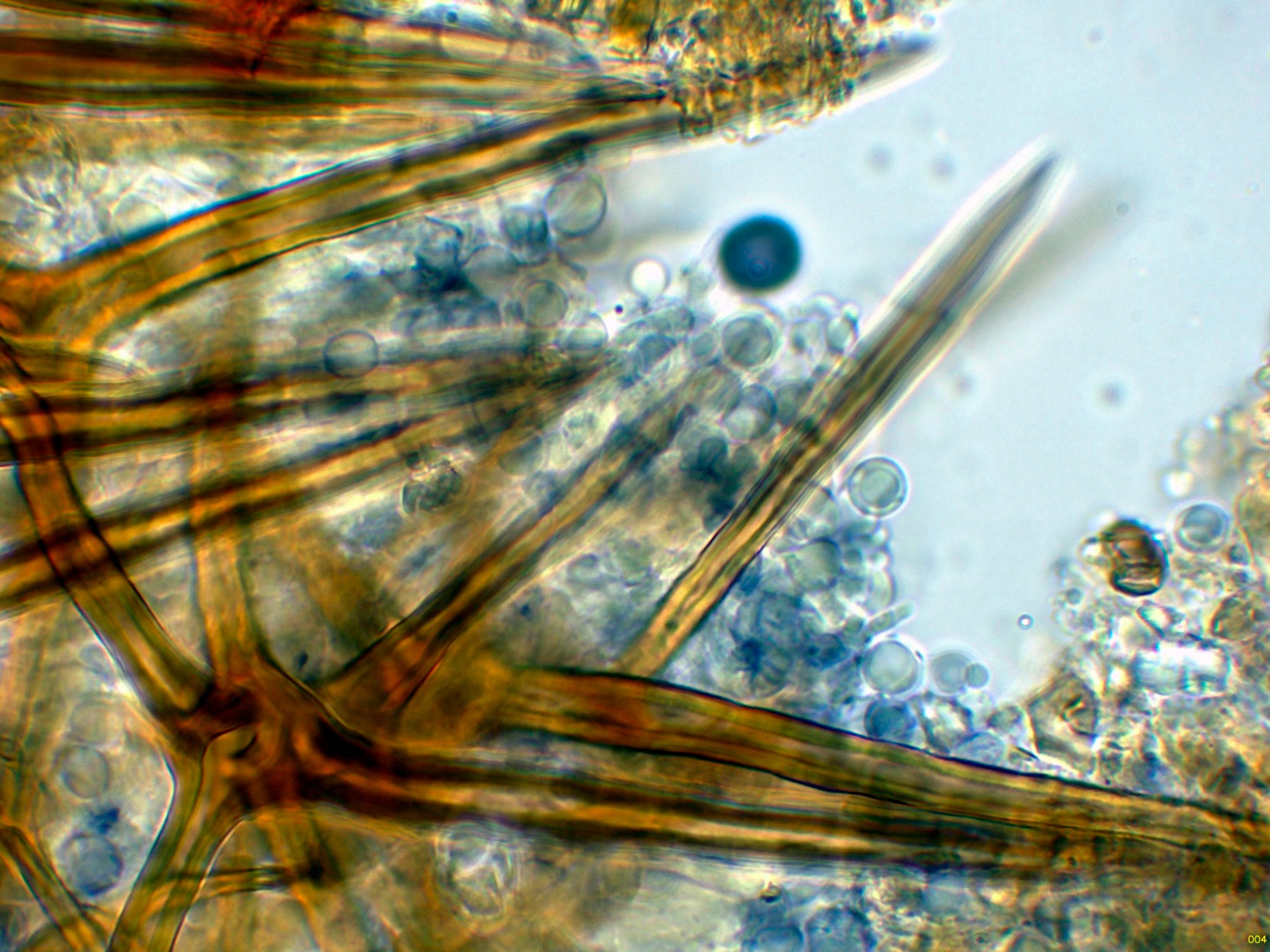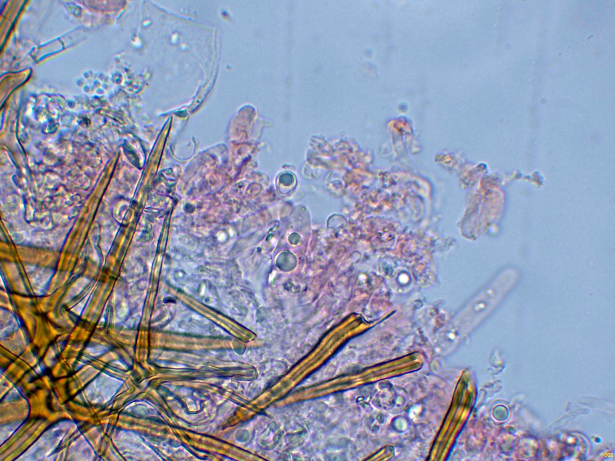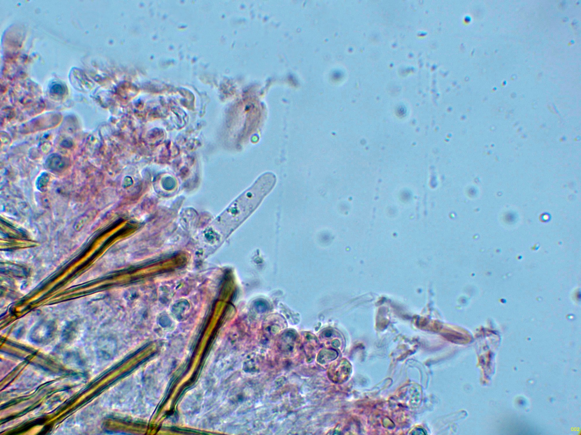 Gloeocistidios de difícil observación, algunos de ellos de gran tamaño.