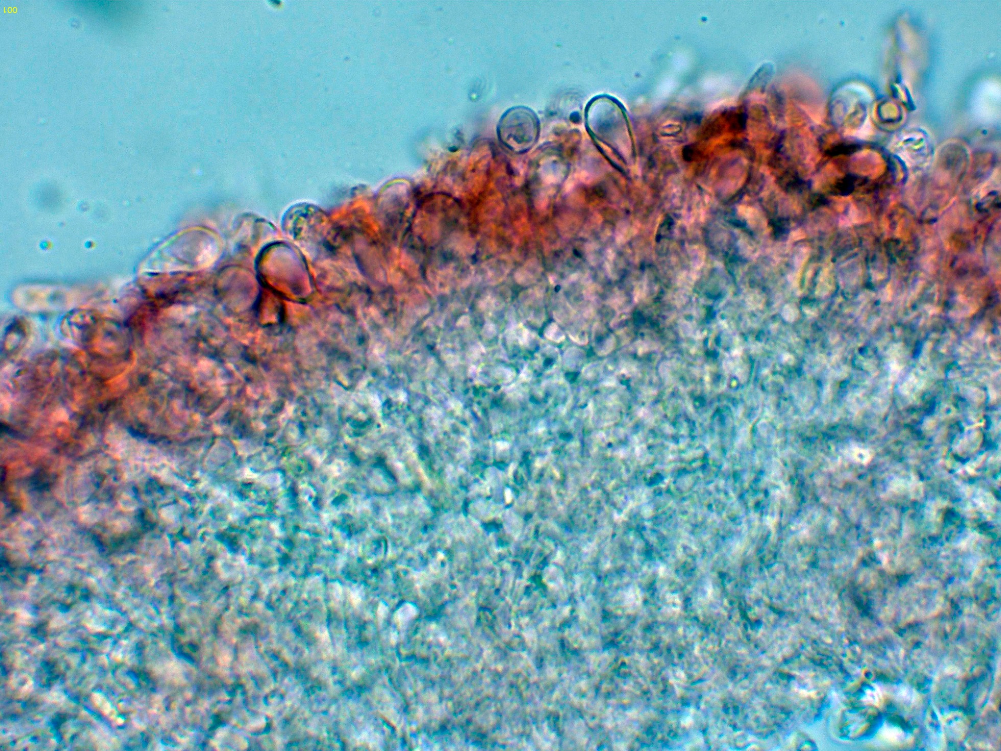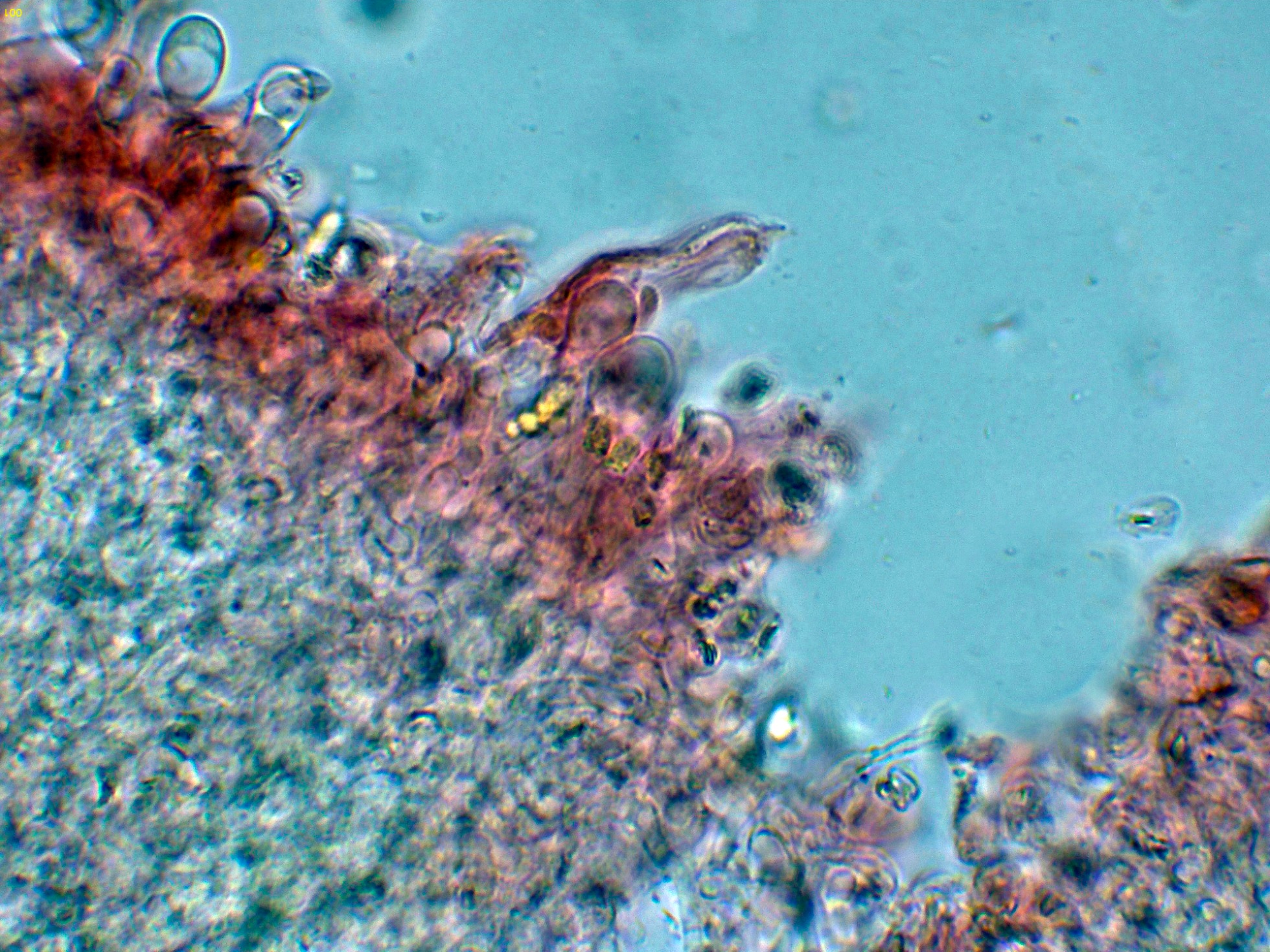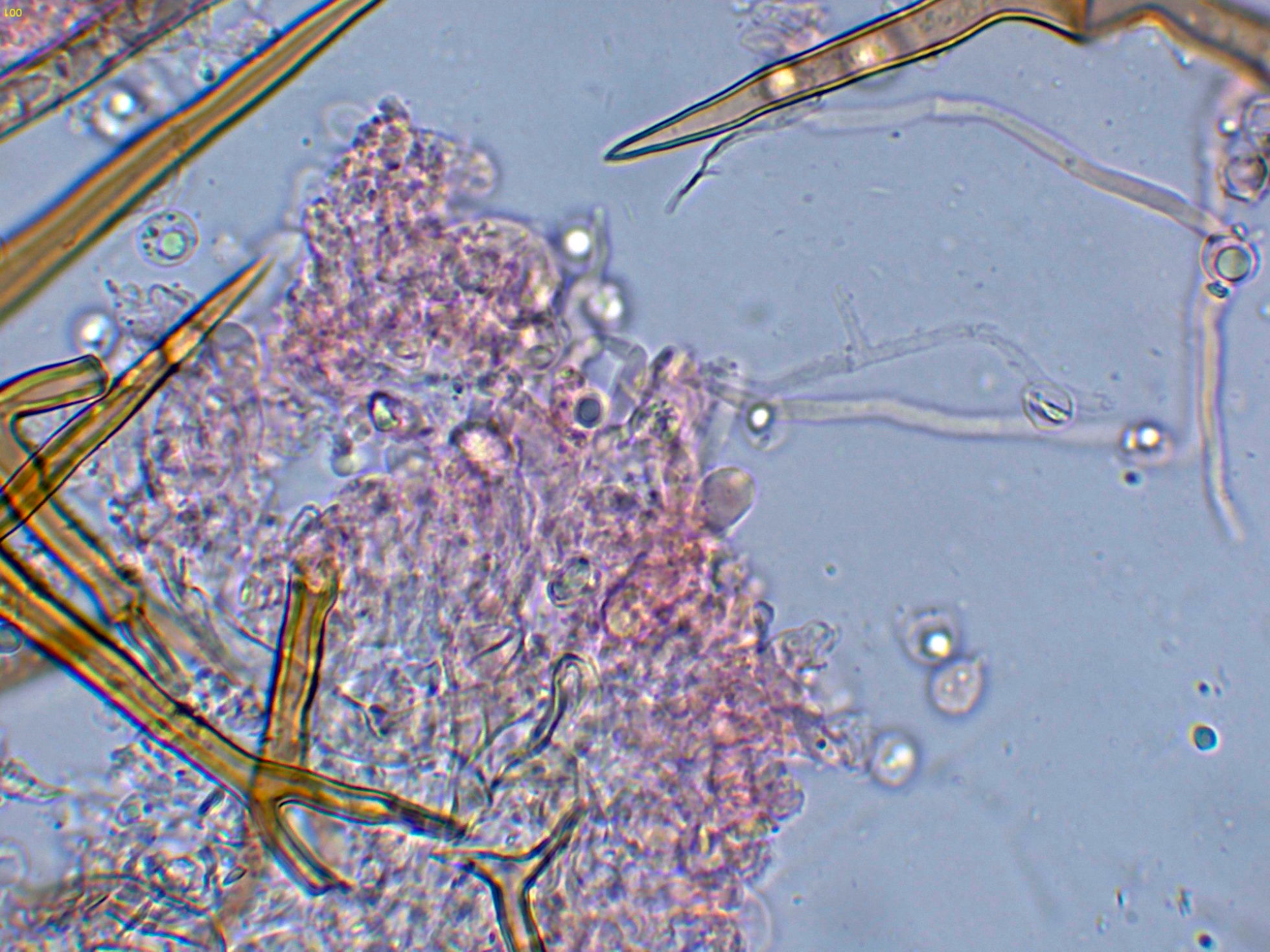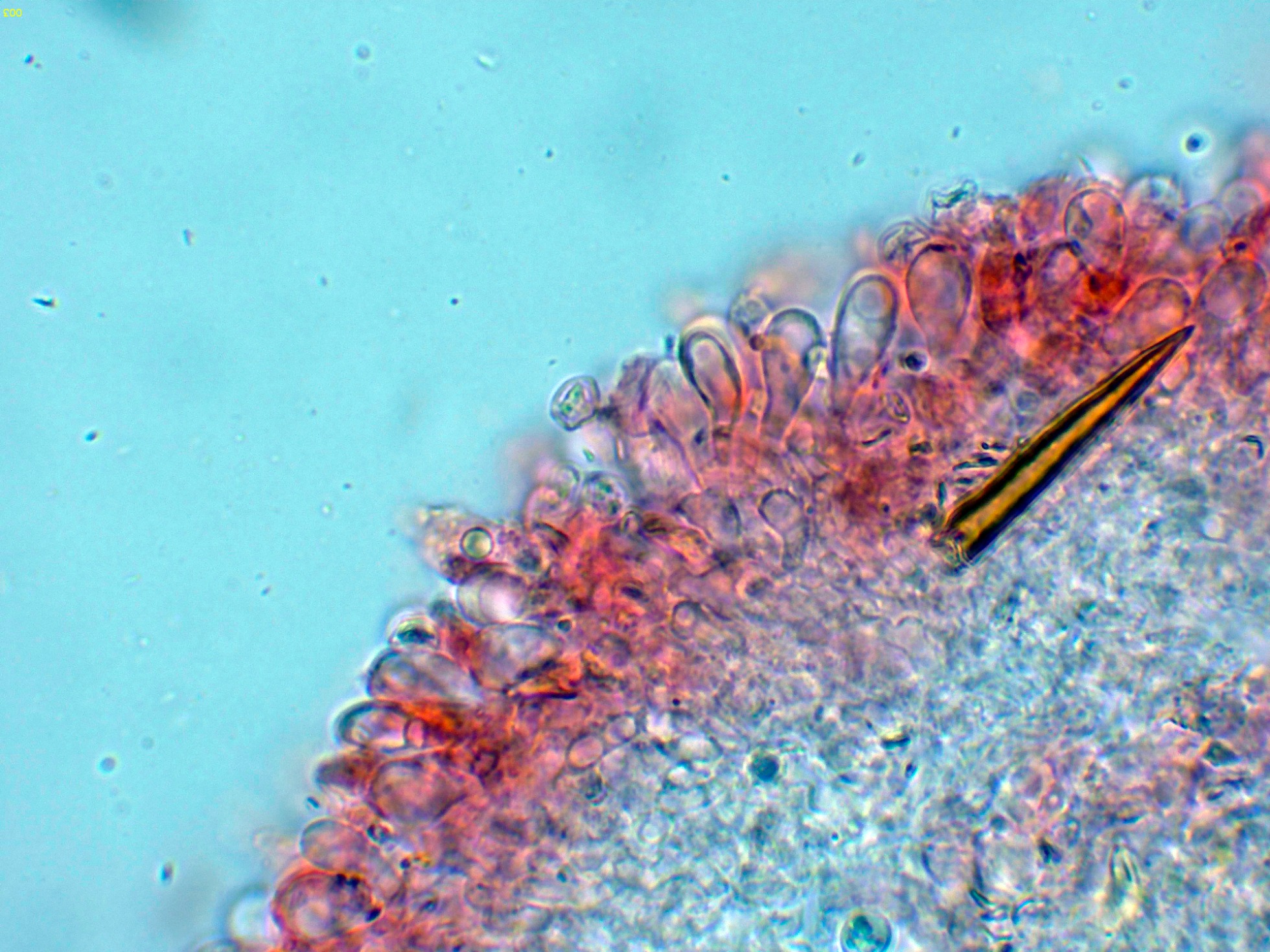 Gloeocistidios de difícil observación, algunos de ellos de gran tamaño.