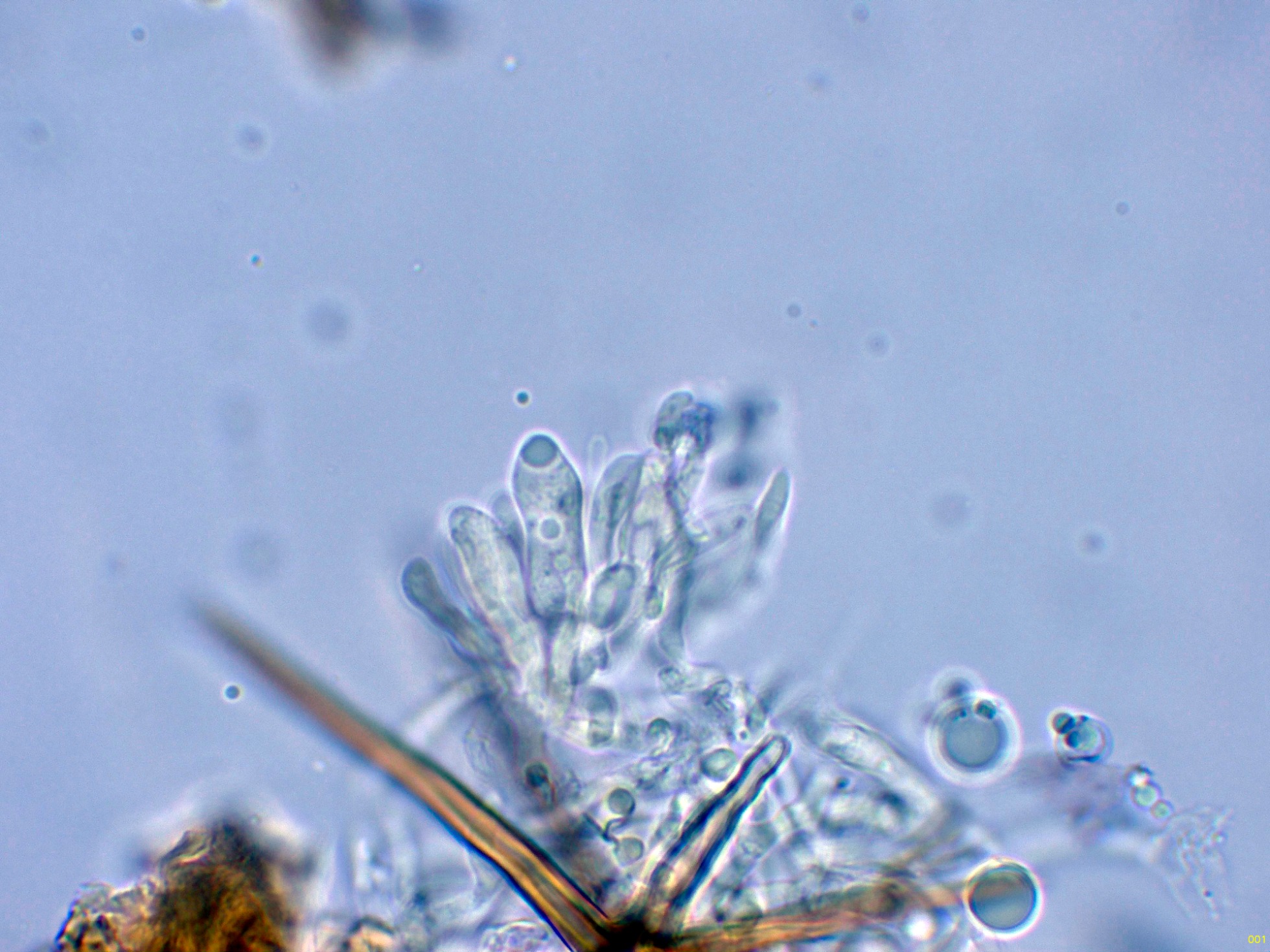 Añado unas imágenes de un nuevo estudio realizado ayer mismo a la especie, en esta ocasión pude observar bastante mejor sus basidios.