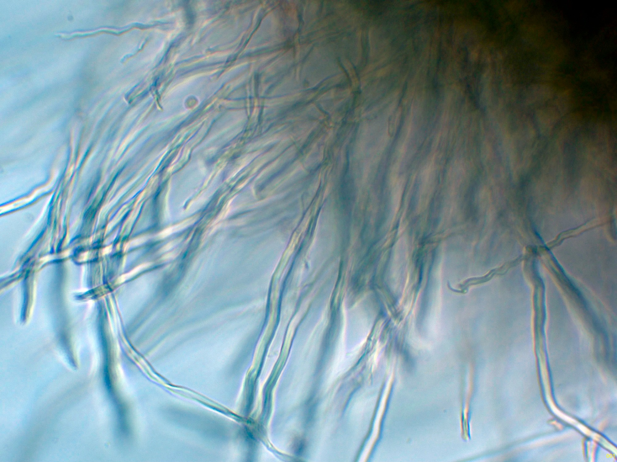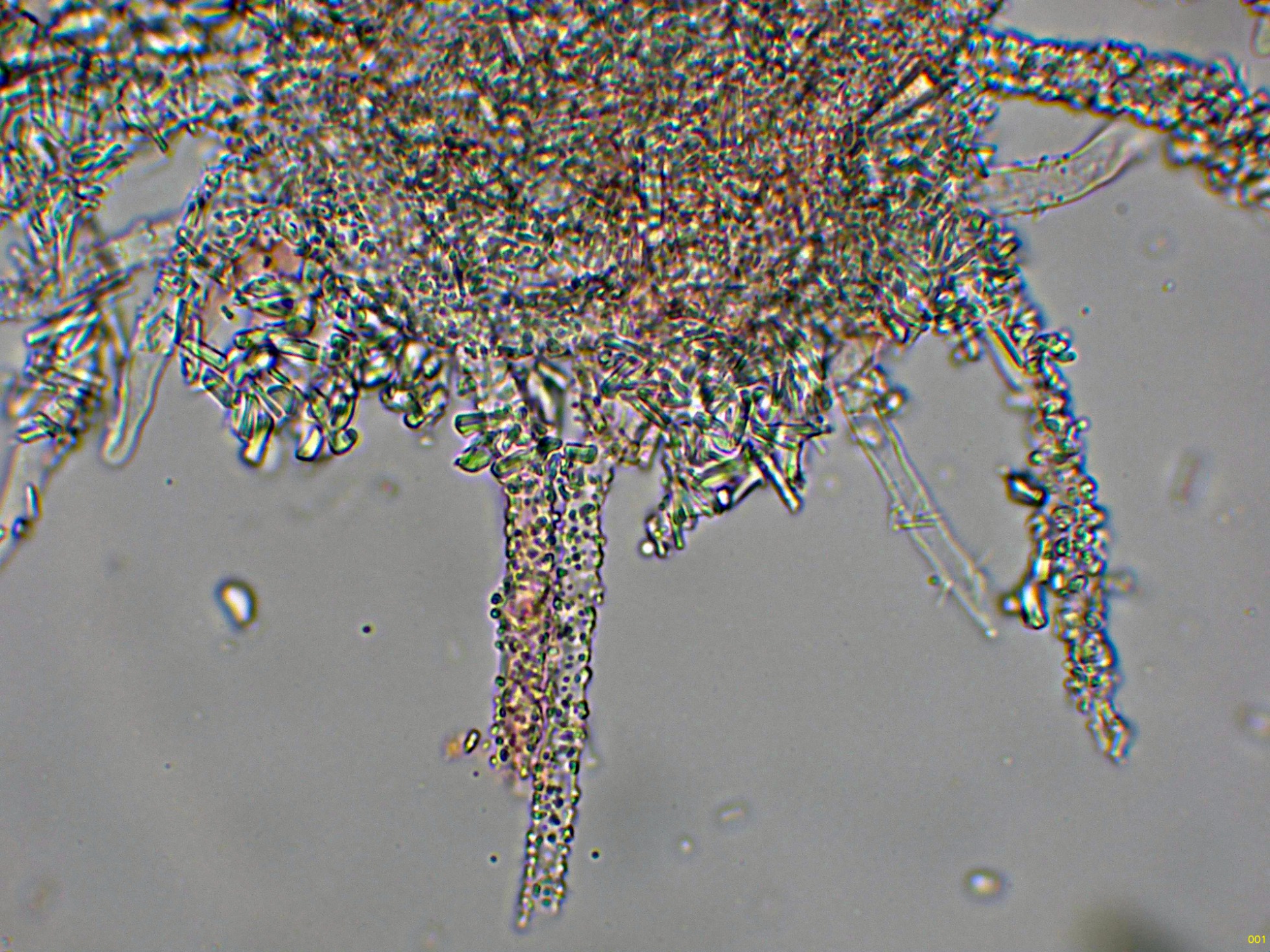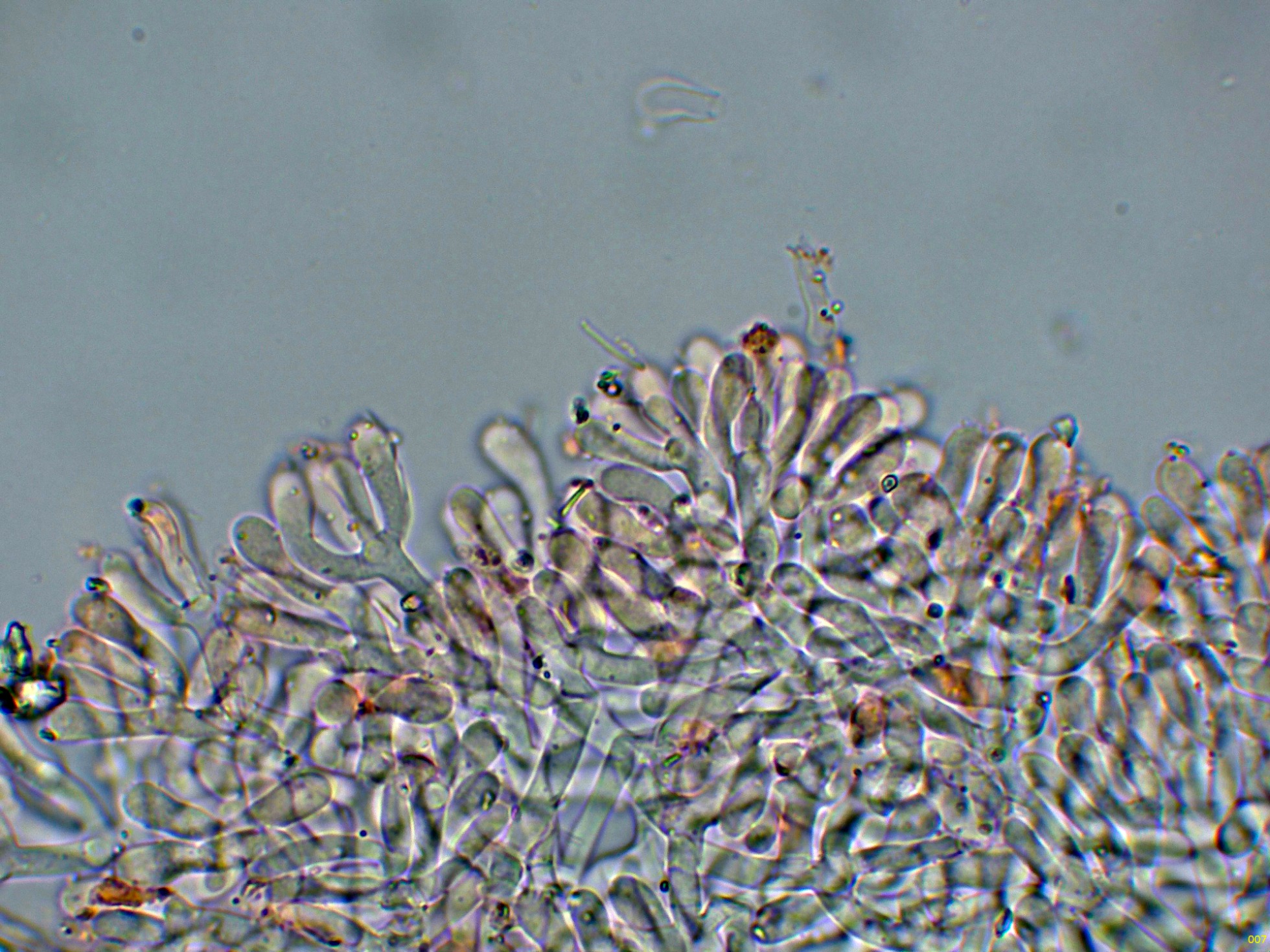Superficie del himenio con una gran cantidad de hifas dendroides, muy ramificadas.