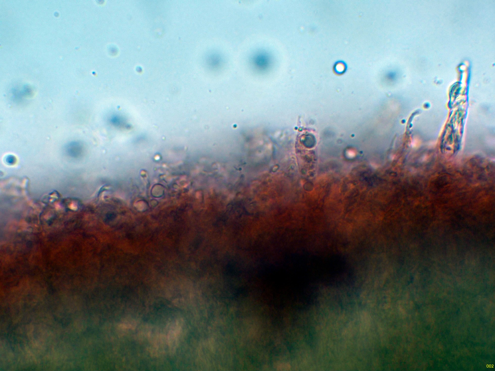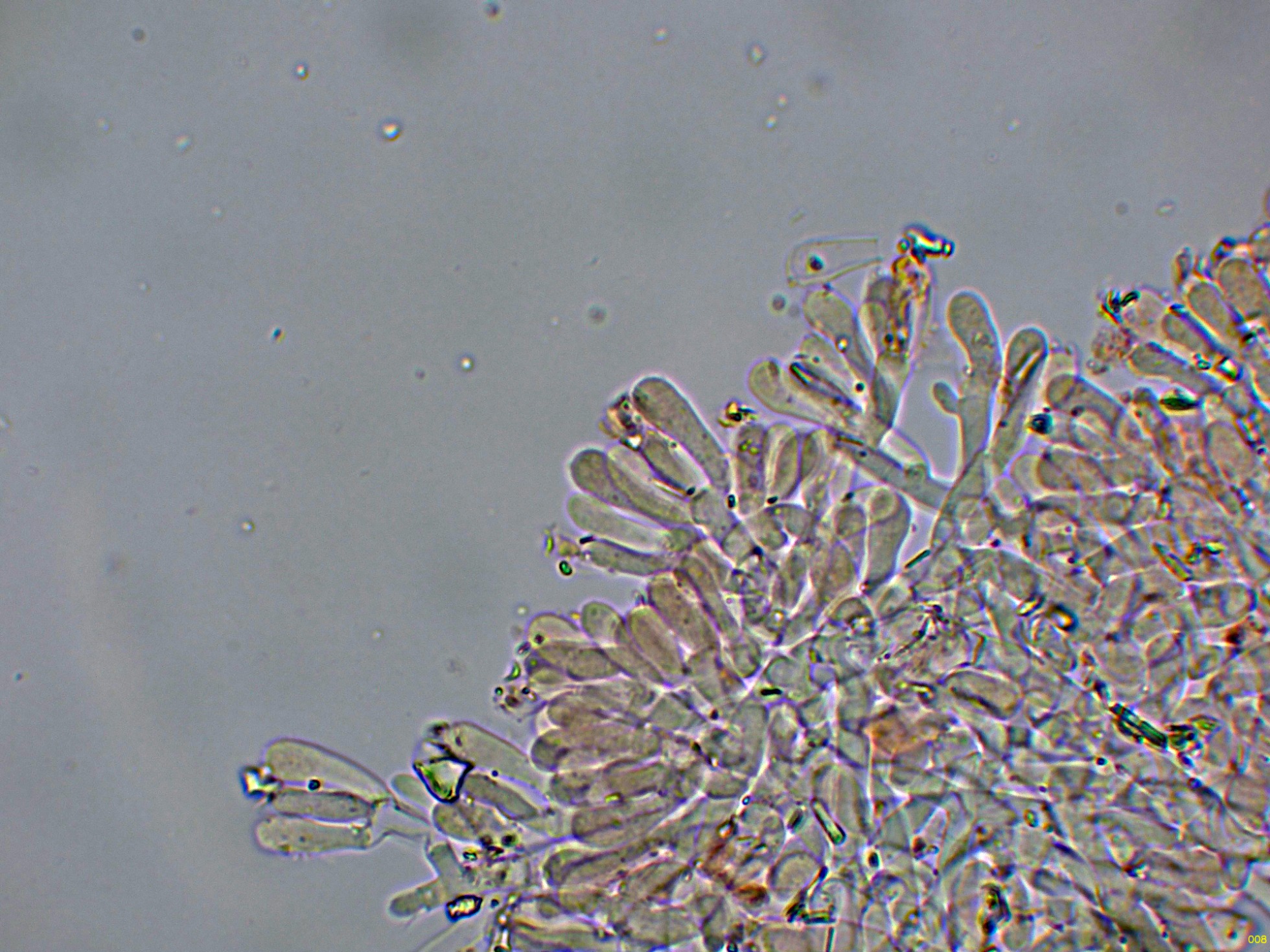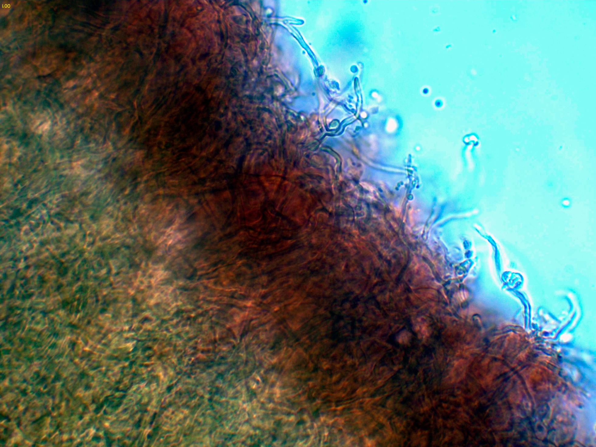 Superficie del himenio con una gran cantidad de hifas dendroides, muy ramificadas.