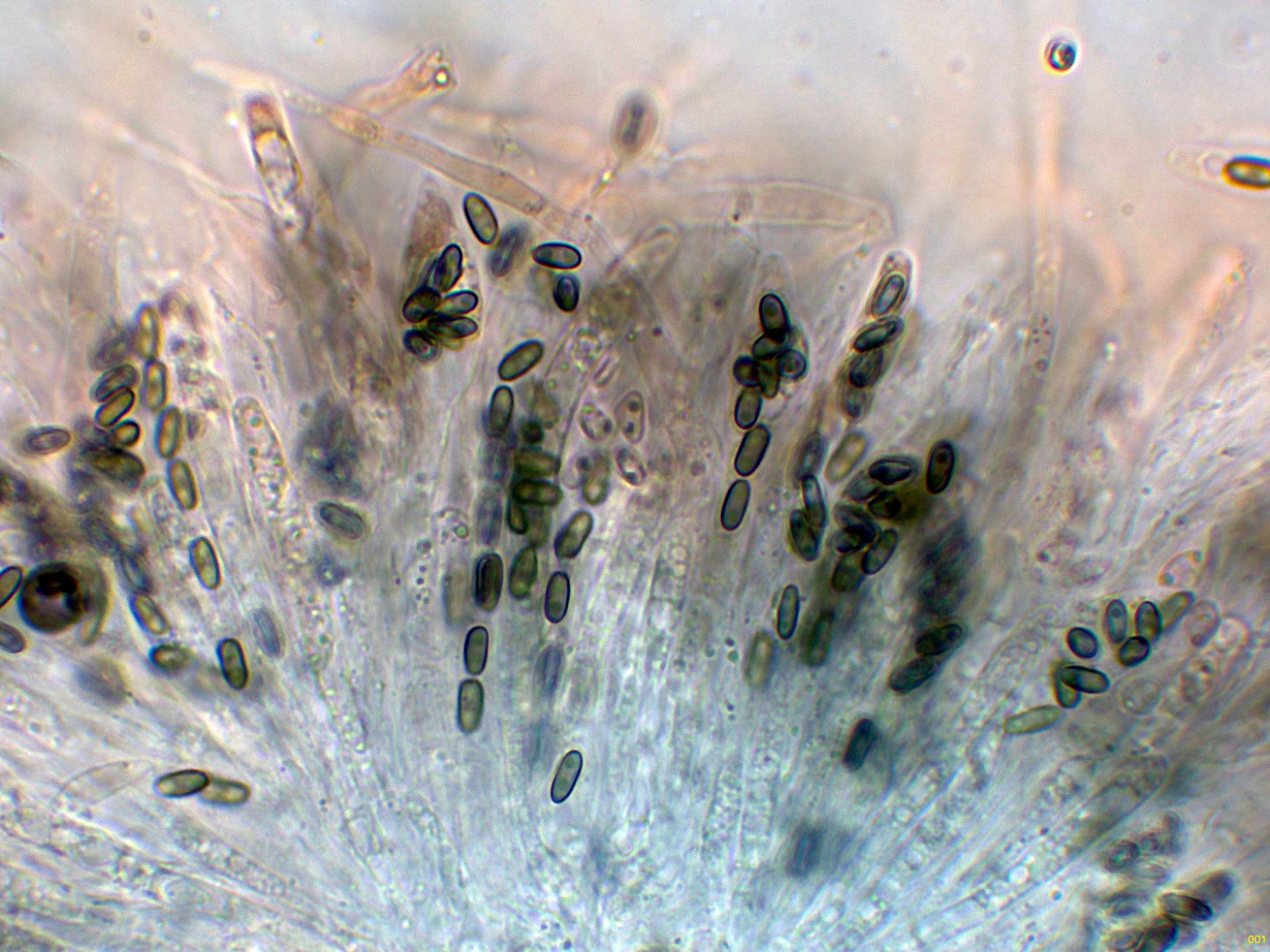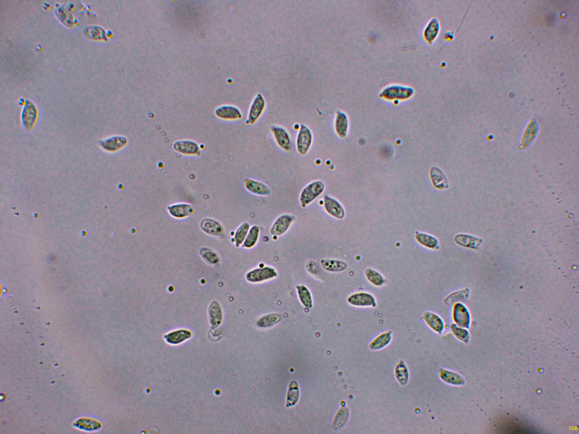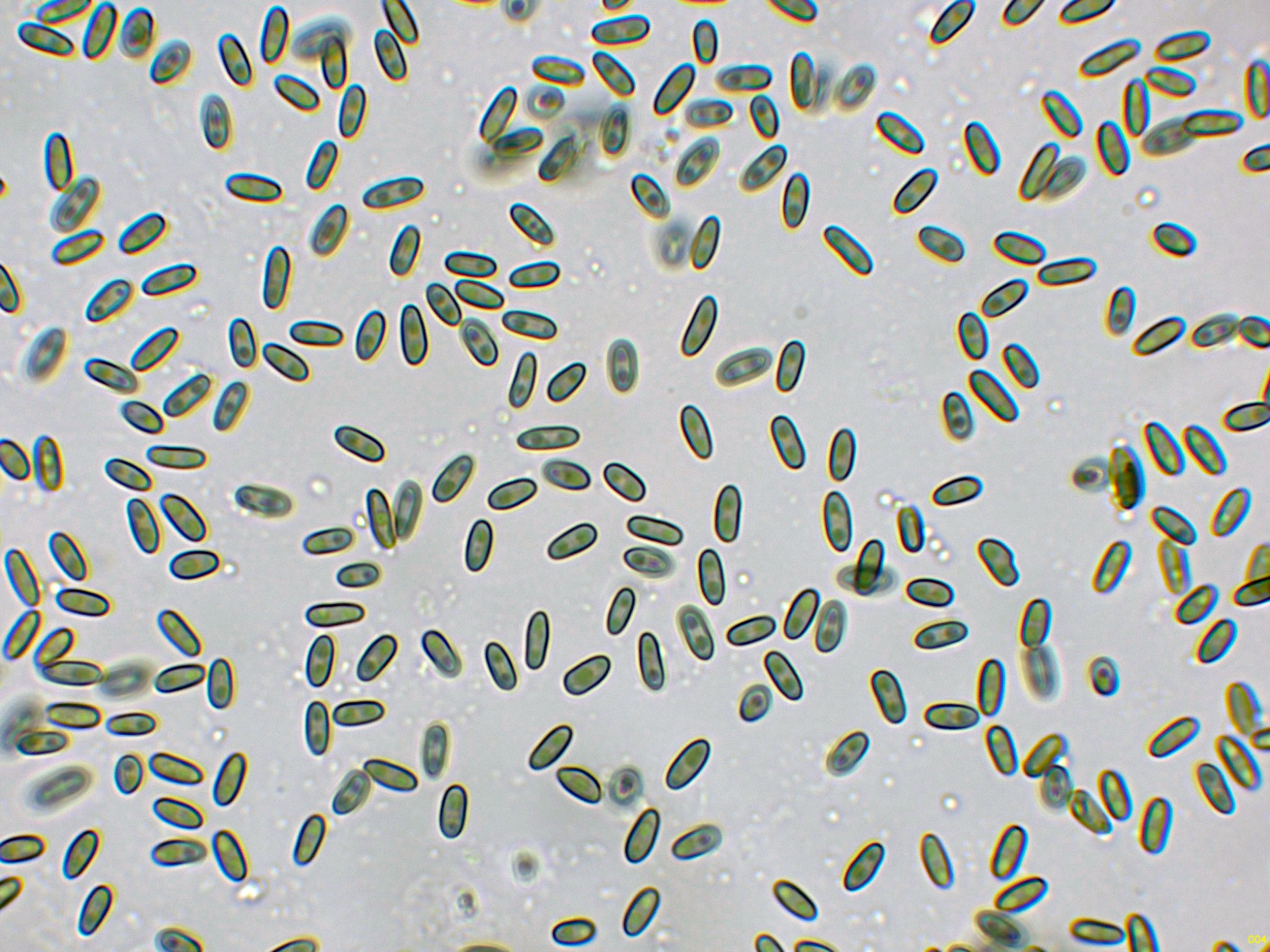 Medidas muy acordes con las que se atribuyen a la especie de (5) 6-8 x 2,5-3,5 µm.