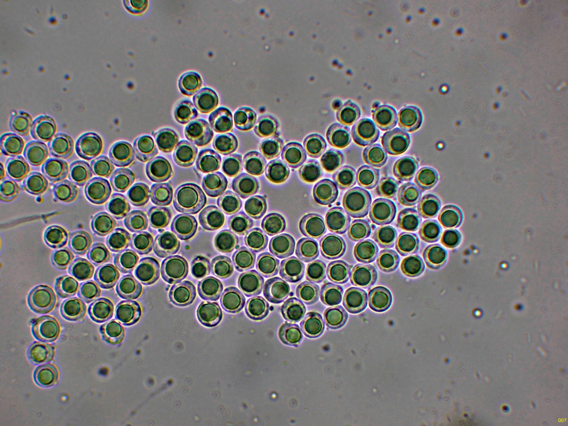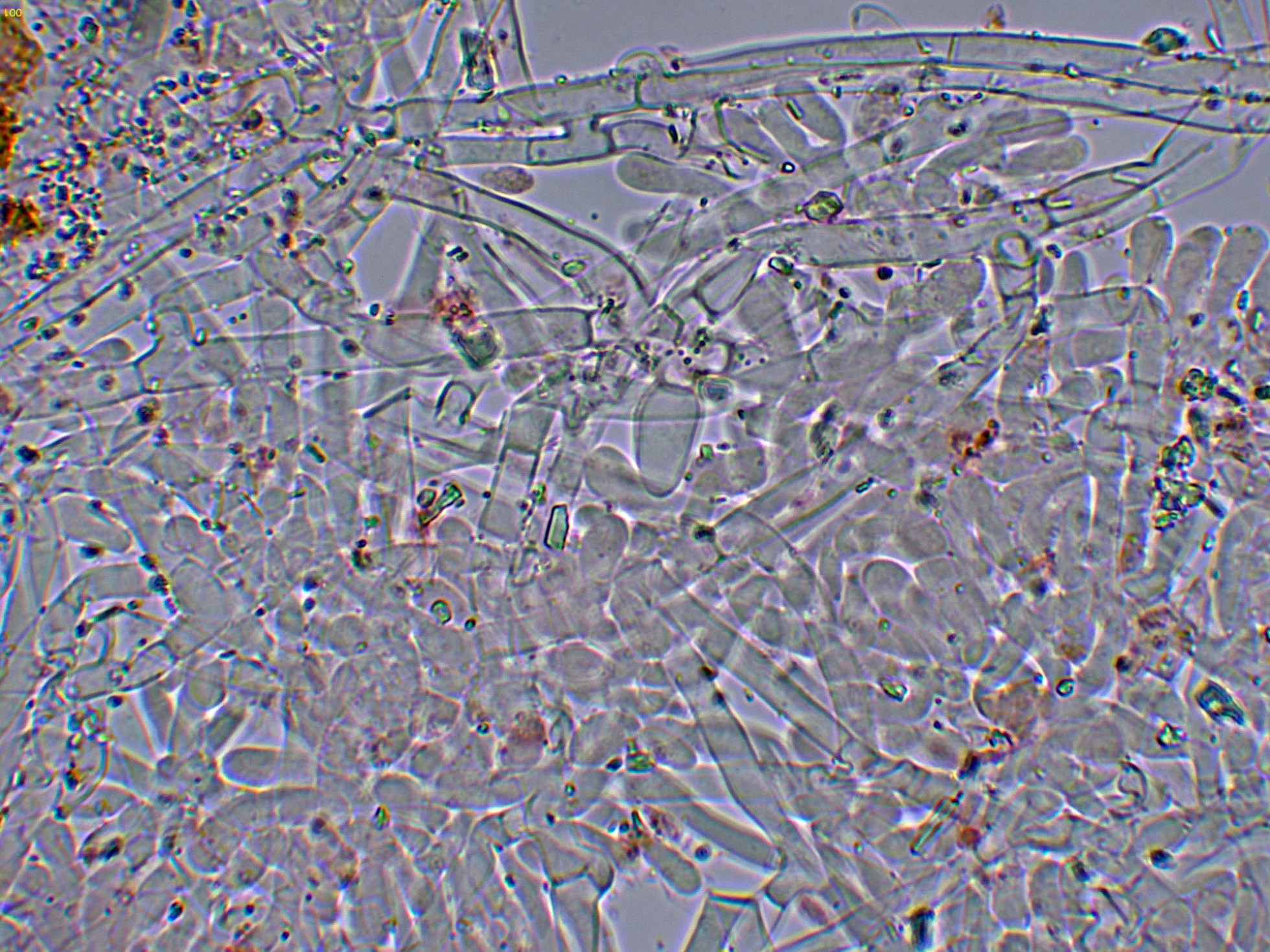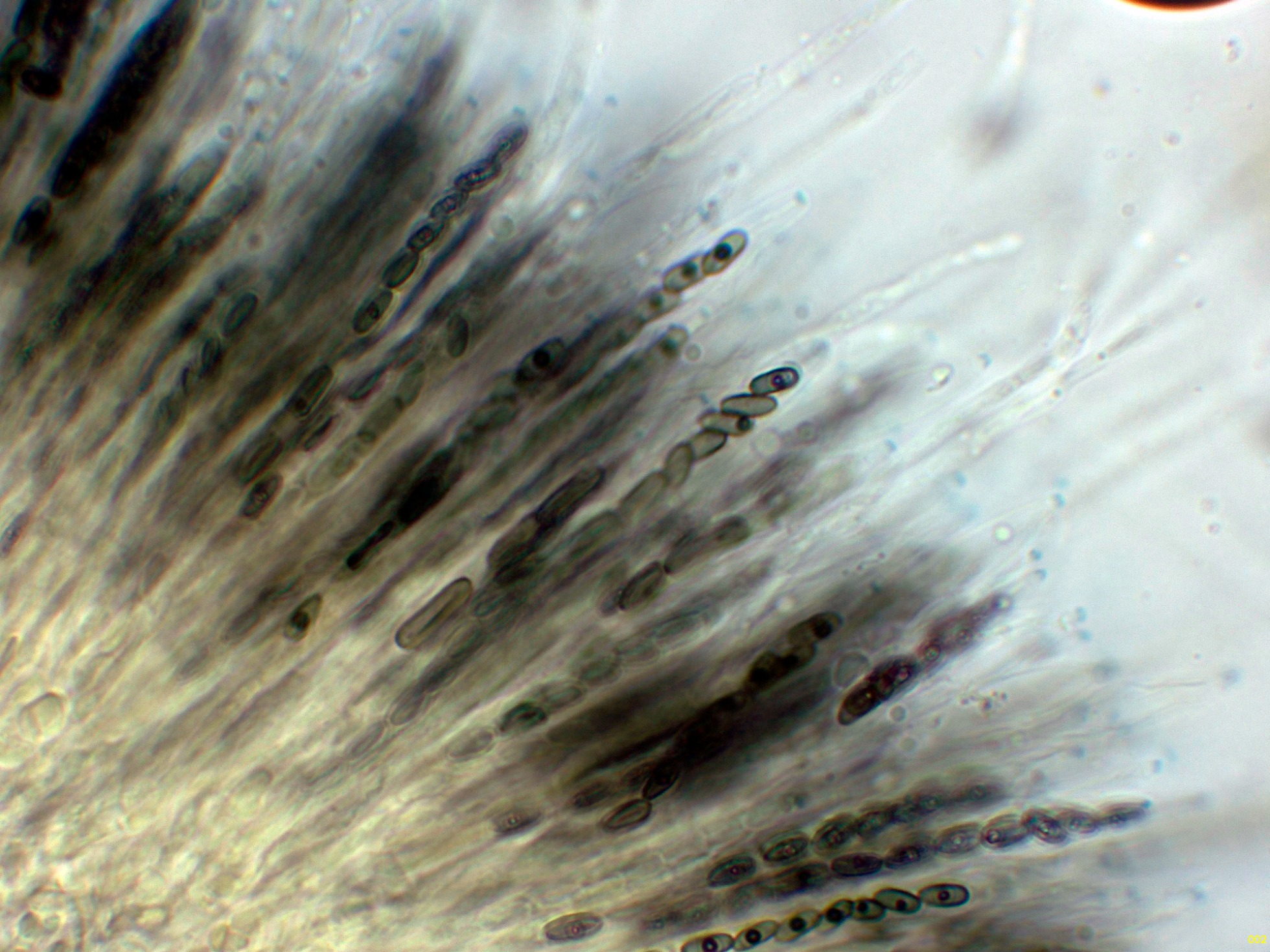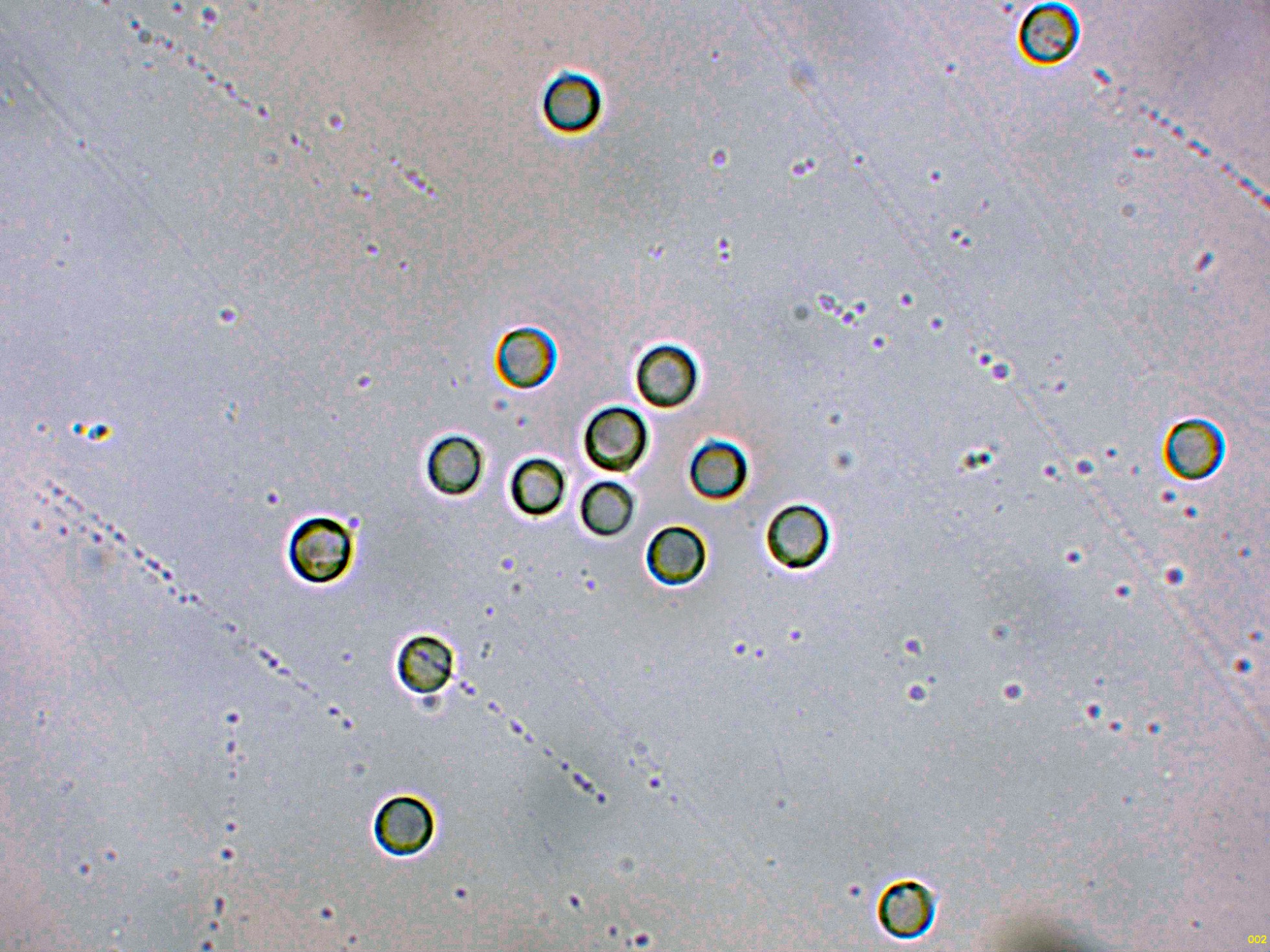 Medidas muy acordes con las que se atribuyen a la especie de (5) 6-8 x 2,5-3,5 µm.