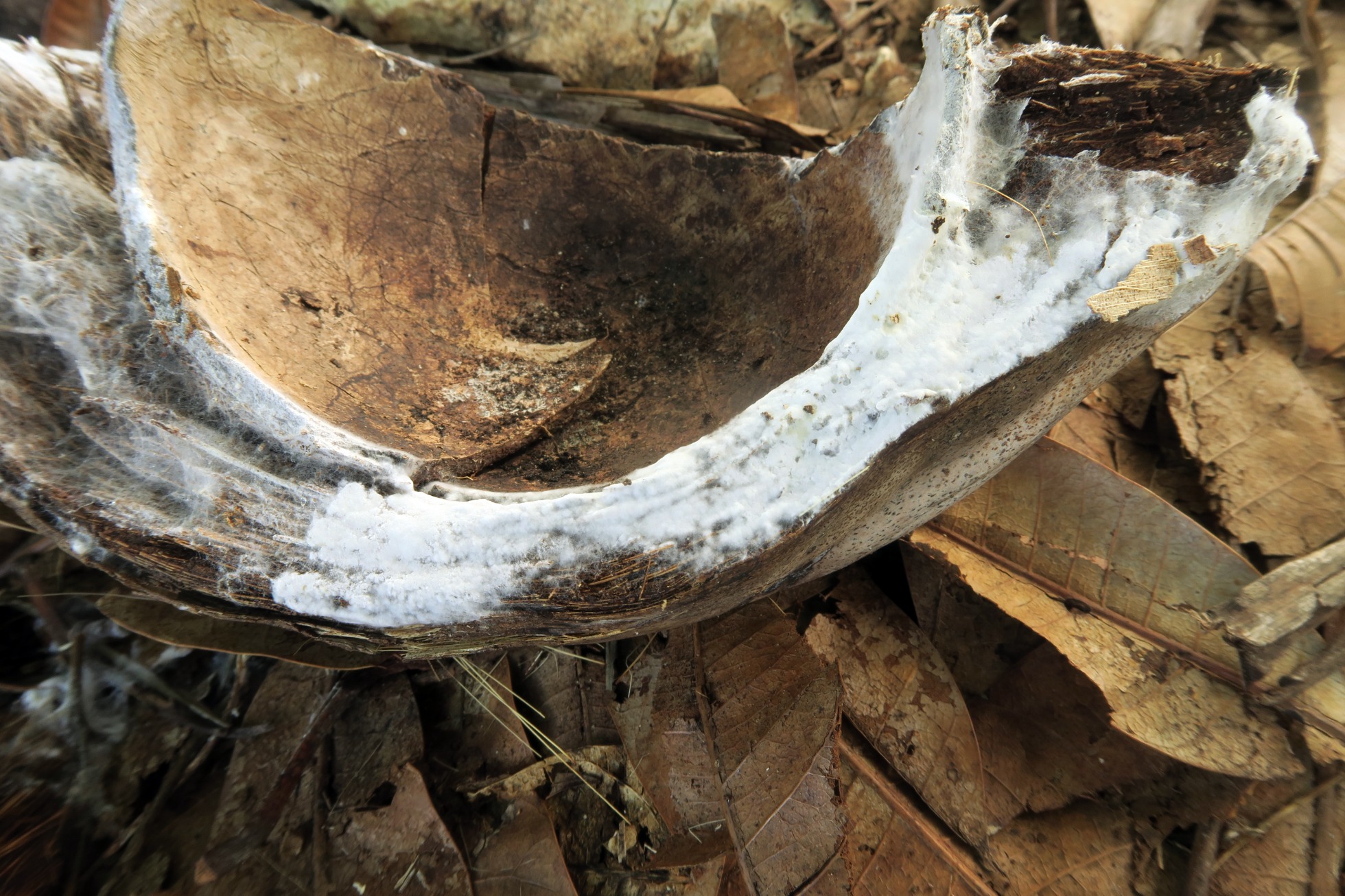 El primero un Corticial de color blanco puro, quizás más propio de climas templados pero que también he podido constatar de su presencia aquí en el trópico, la Athelia epiphylla.