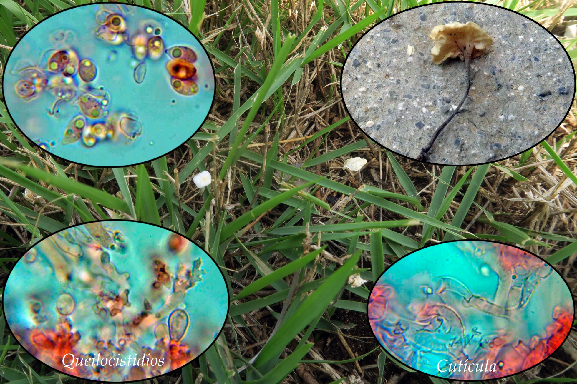 Tan diminuta como abundante por el césped de la zona, el Marasmiellus graminis.