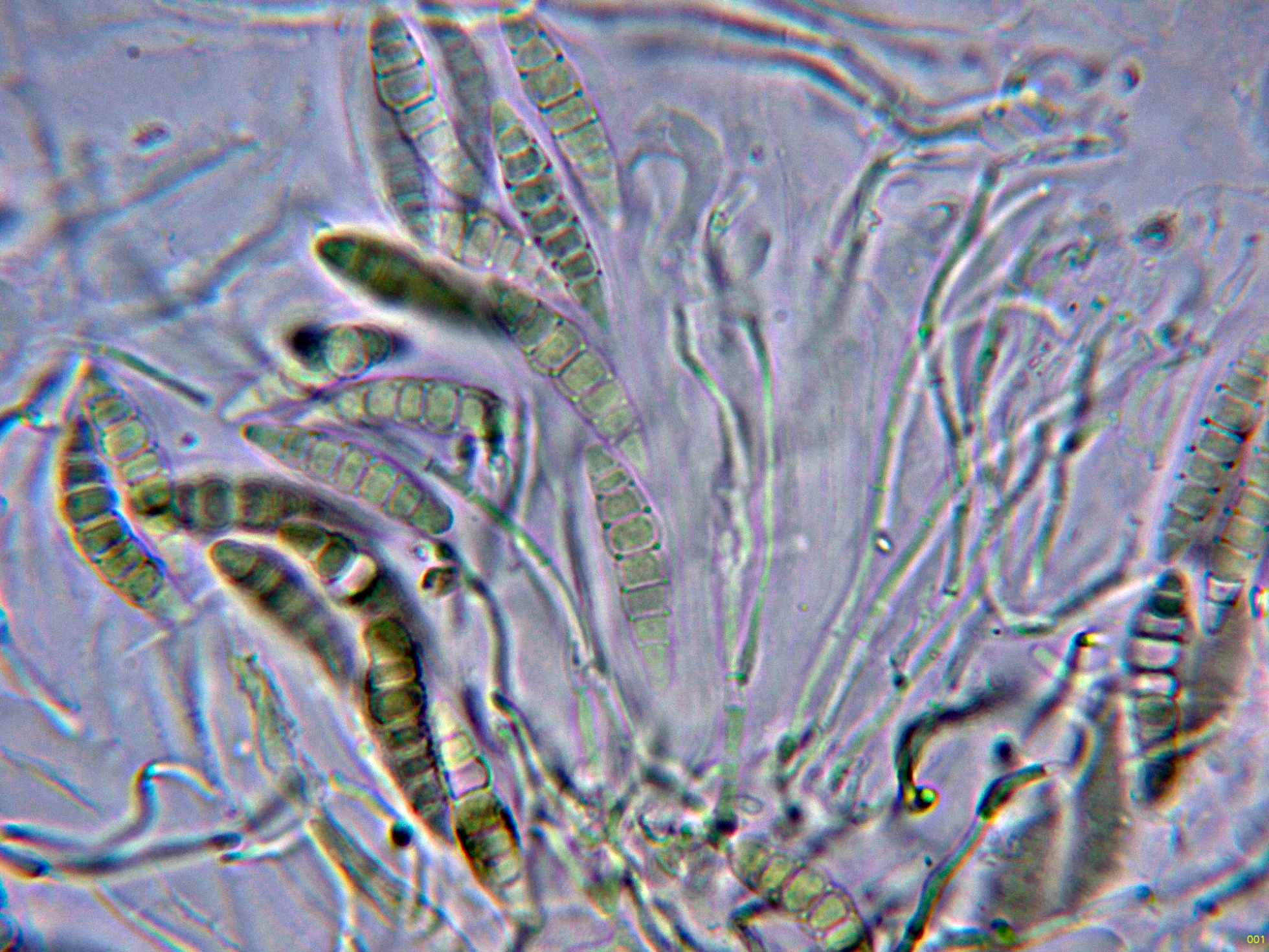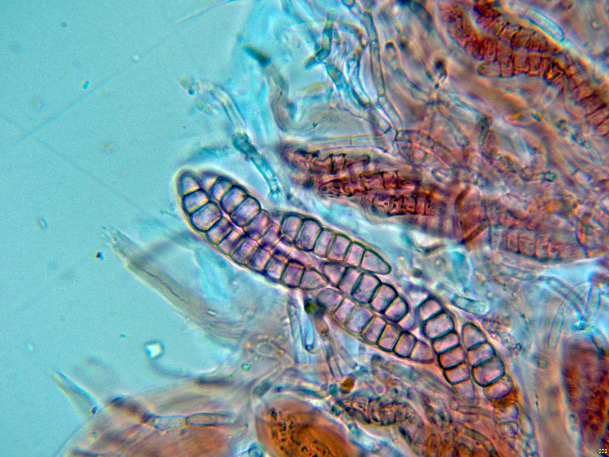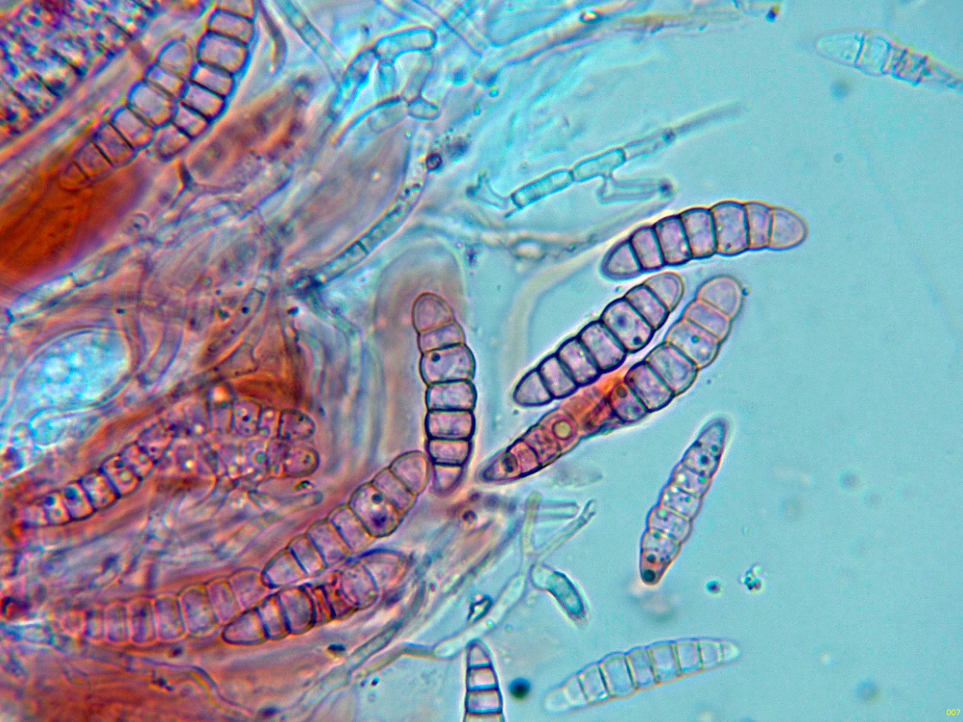 Observaciones: Determinación hecha siguiendo las Claves del documento "A world revision of Massarina (Ascomycota)" de Andre Aptroot, que con esporas con 5 a 7 septos y una longitud de hasta 35 µm. conducen a una tal Massarina sp., de la cuál actualmente no disponemos de ninguna descripción.
