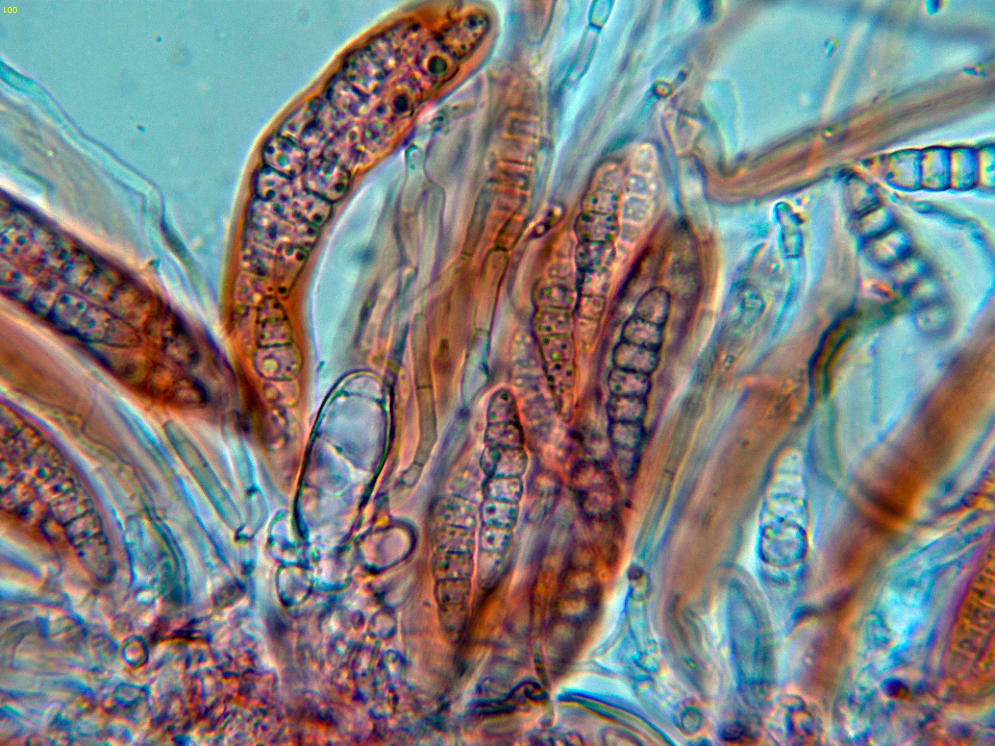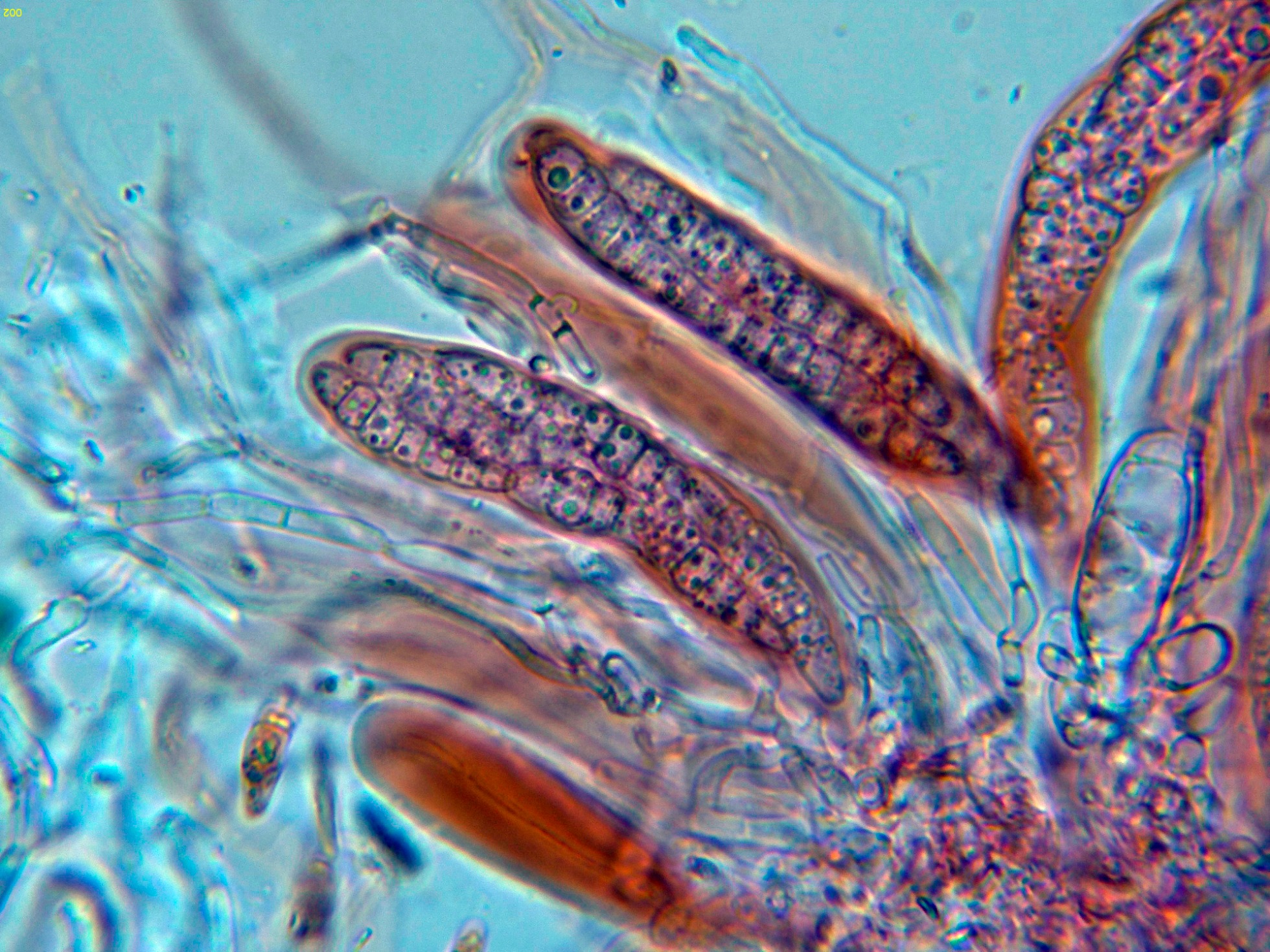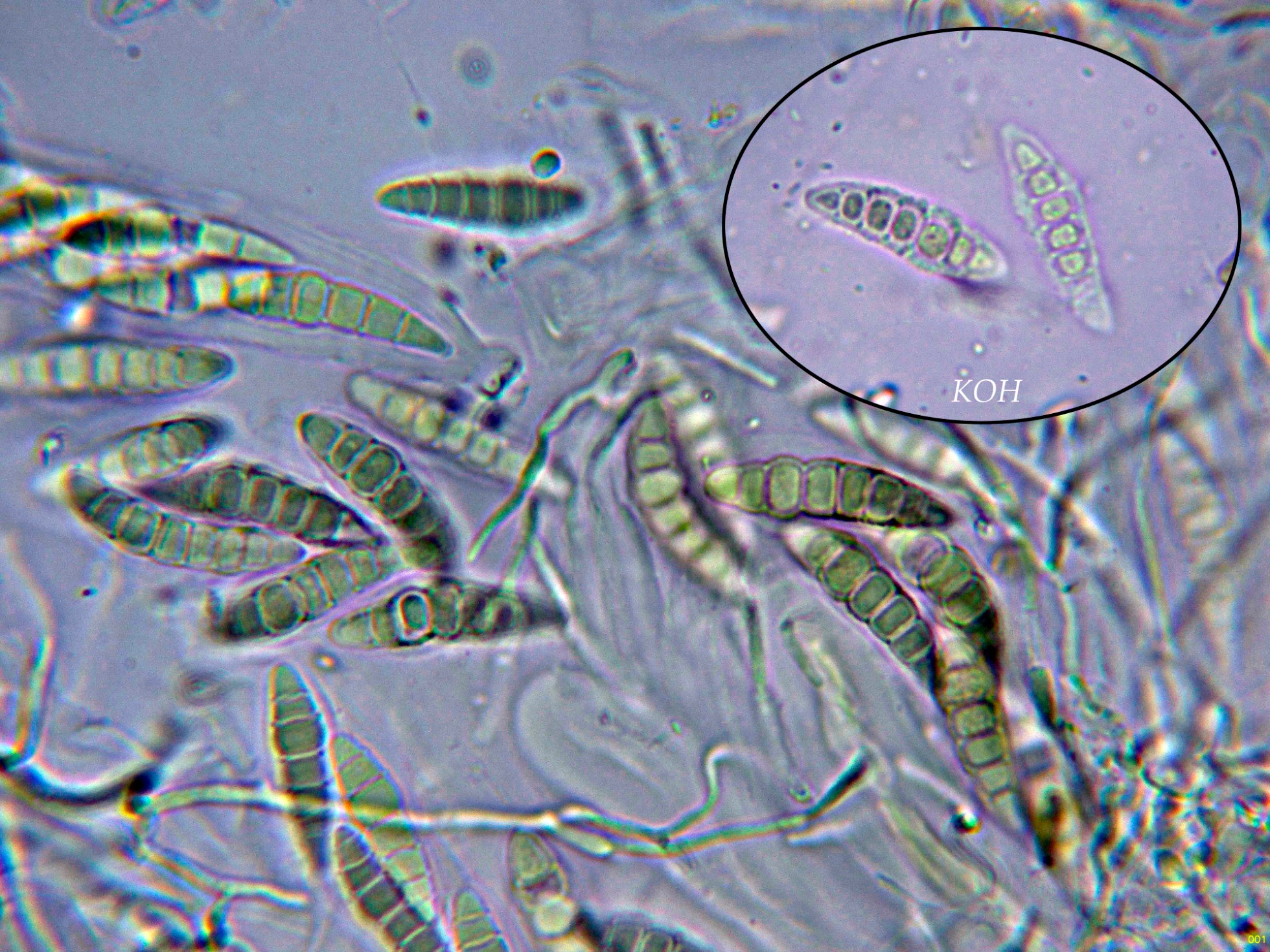 Observaciones: Determinación hecha siguiendo las Claves del documento "A world revision of Massarina (Ascomycota)" de Andre Aptroot, que con esporas con 5 a 7 septos y una longitud de hasta 35 µm. conducen a una tal Massarina sp., de la cuál actualmente no disponemos de ninguna descripción.