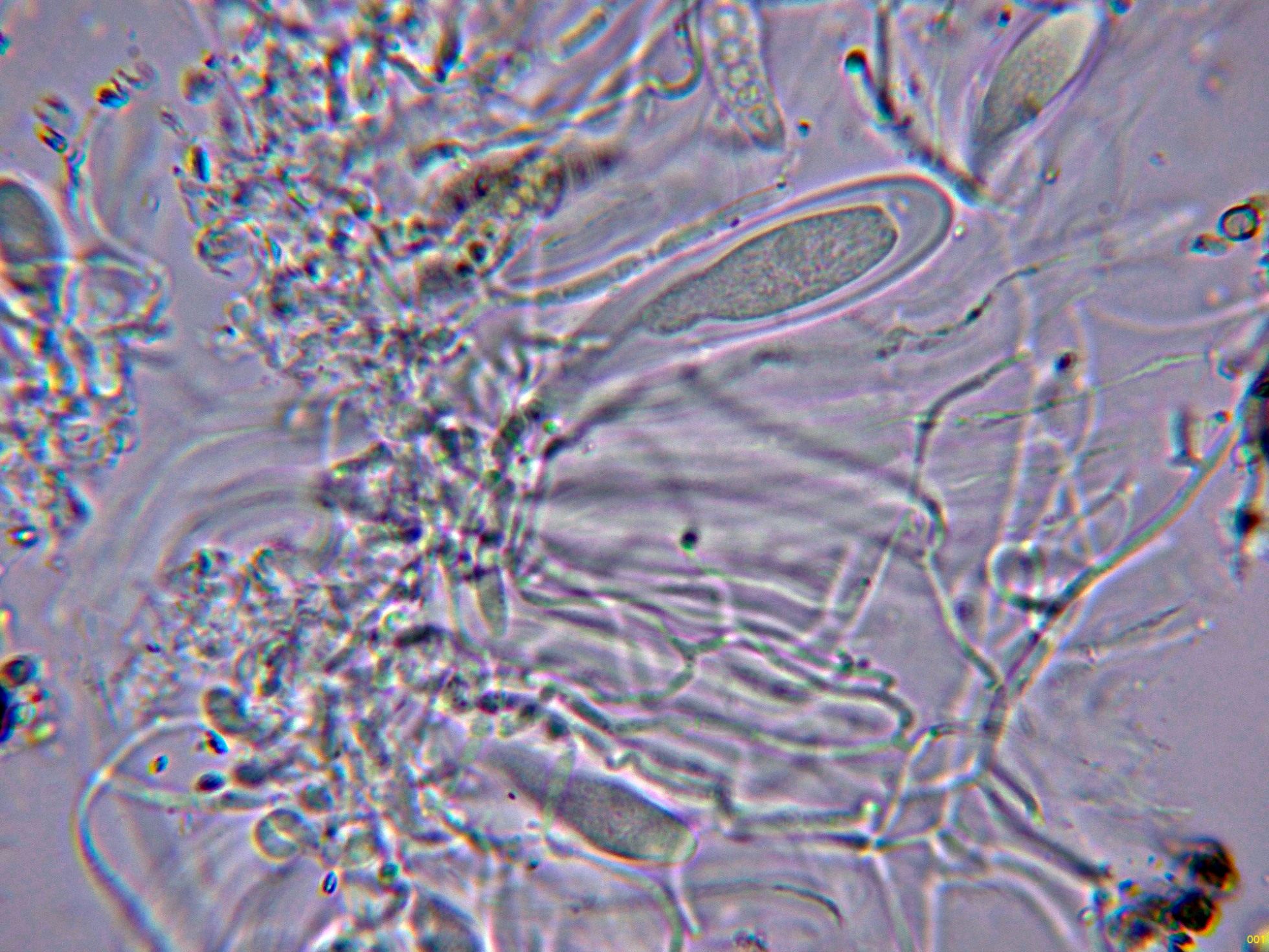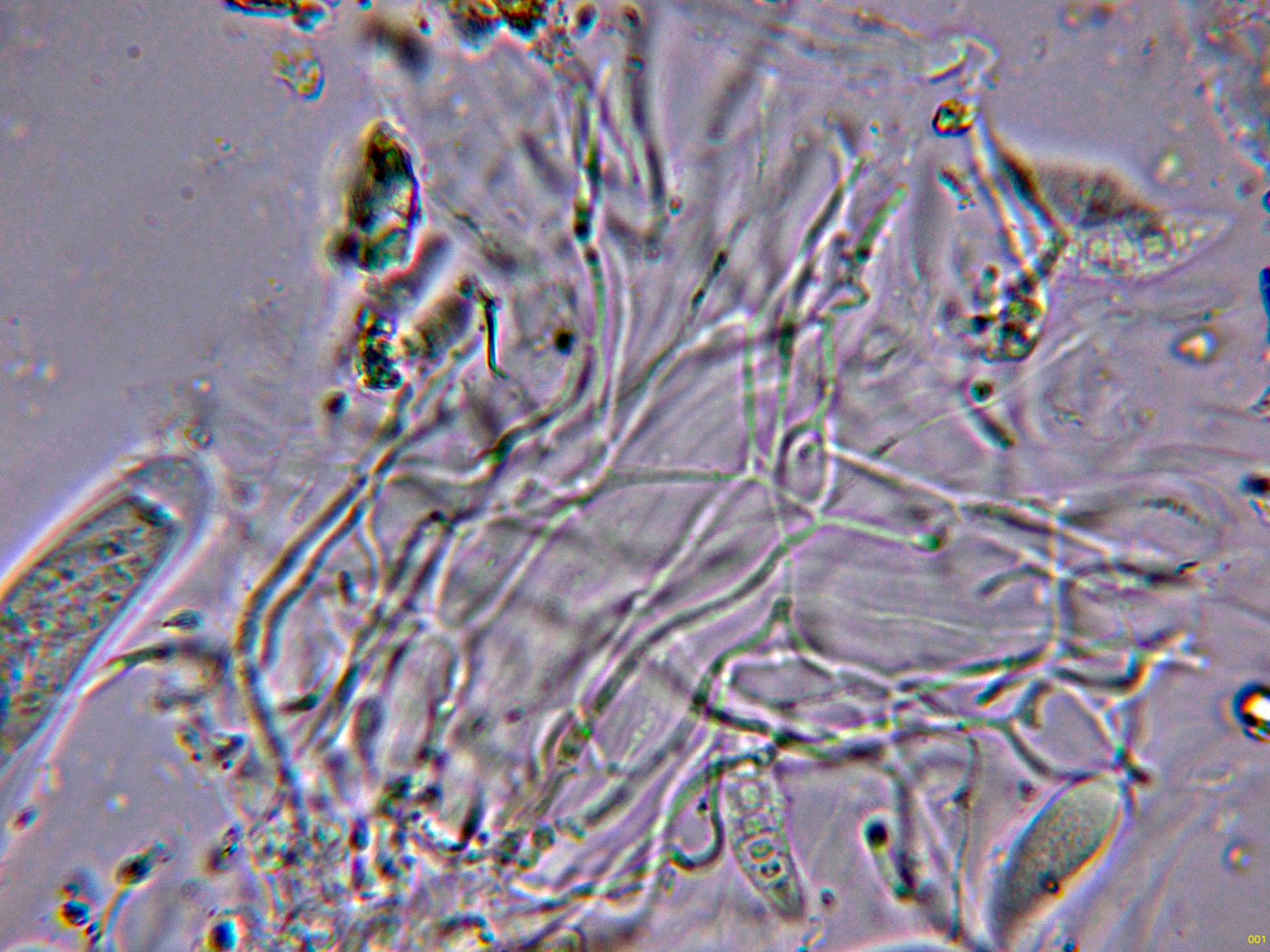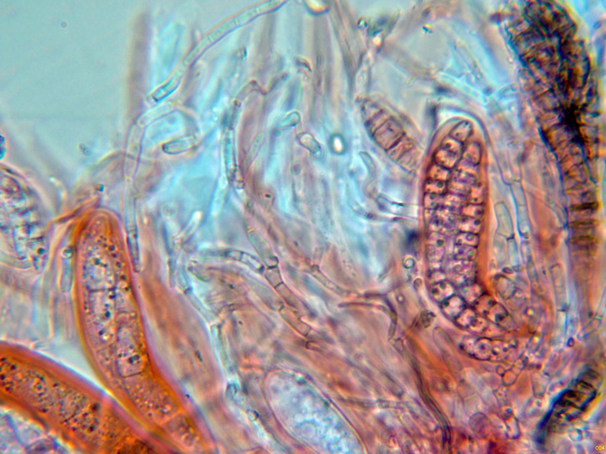 Materia interascal a modo de pseudoparáfisis, hialinas, filamentosas, muy finas, con múltiples septos y muy ramificadas.