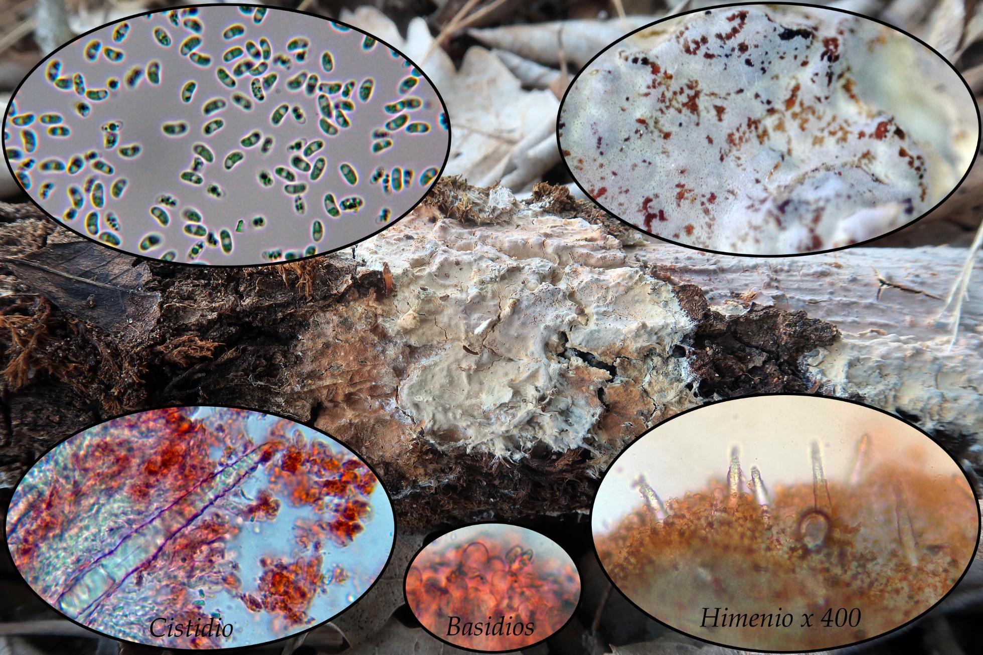 Un Phanerochaete, a tenor de la microscopía obtenida sin duda la Phanerochaete sordida, con unos cistidios con unas medidas de 47.6 - 90.8 × 5.9 - 10.2 µm., es la séptima vez que estudio a la especie, y aunque en la mayoría de las ocasiones su superficie prácticamente no reaccionaba frente al KOH, en esta ocasión su color viró a marrón rojizo vinoso, esta característica acerca de la variabilidad en cuanto a su comportamiento frente al KOH, está bien documentada en la descripción de la especie de "Les Champignons de Suisse".