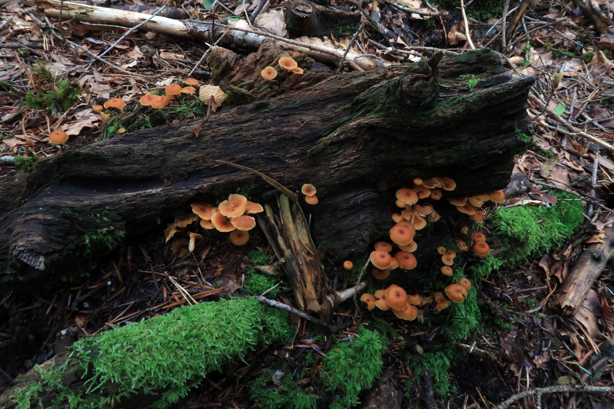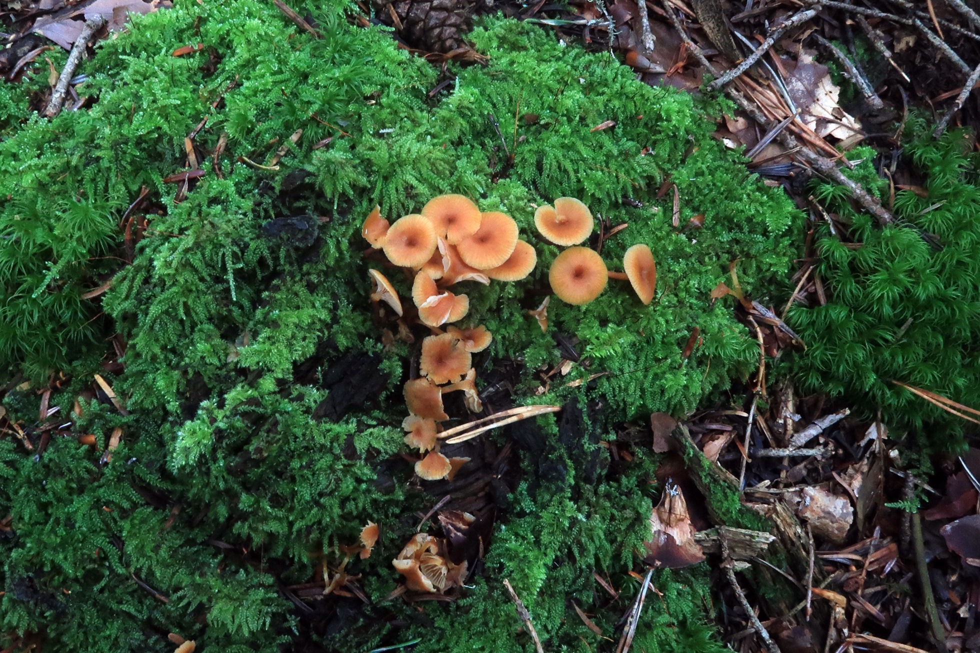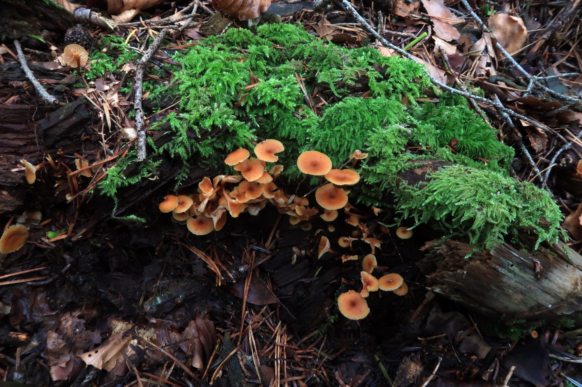 Una Xeromphalina lignícola de sabor no amargo fotografiada el 17 de septiembre en la Selva de Oza. Hasta la fecha todas las Xerompahalinas que había probado me parecían amargas.