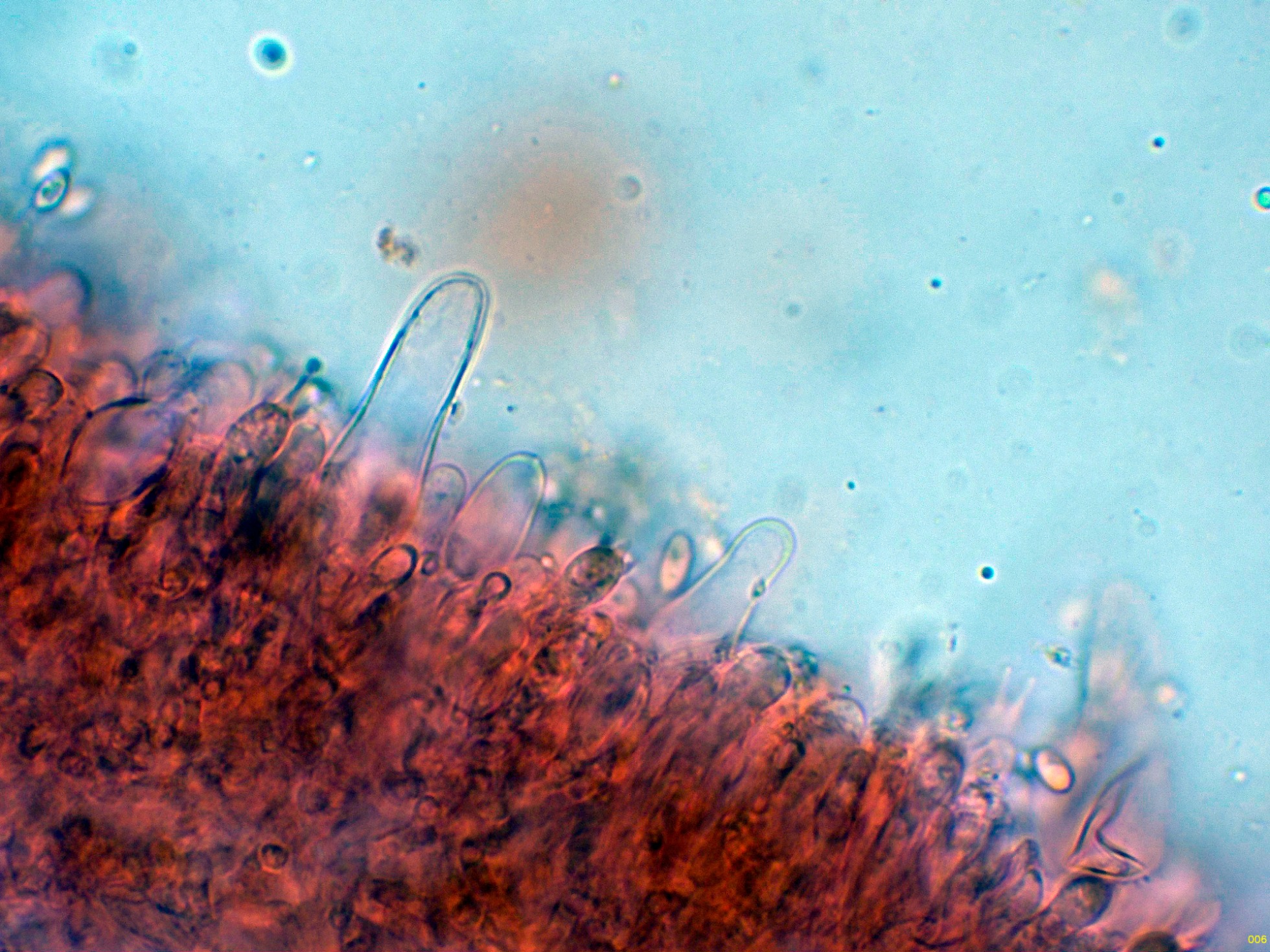 Queilocistidios abundantes en la arista laminar.
