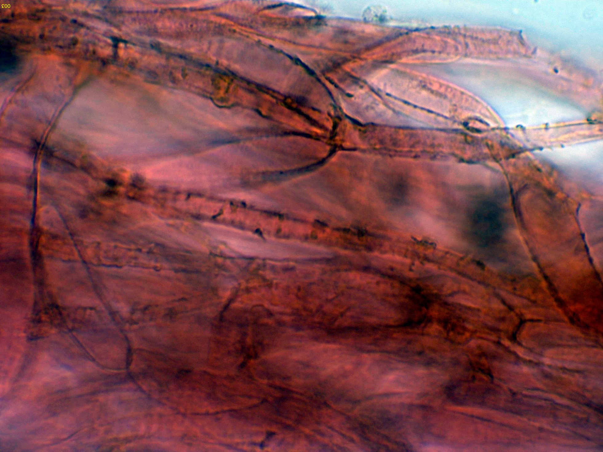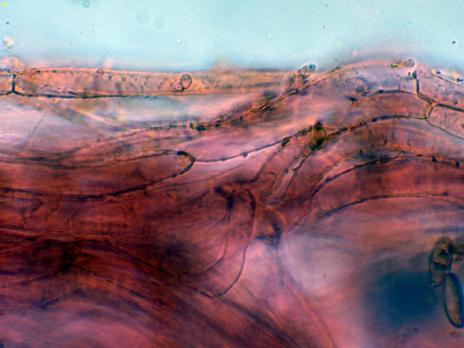 Suprapellis con hifas con incrustaciones y provistas de fíbulas.