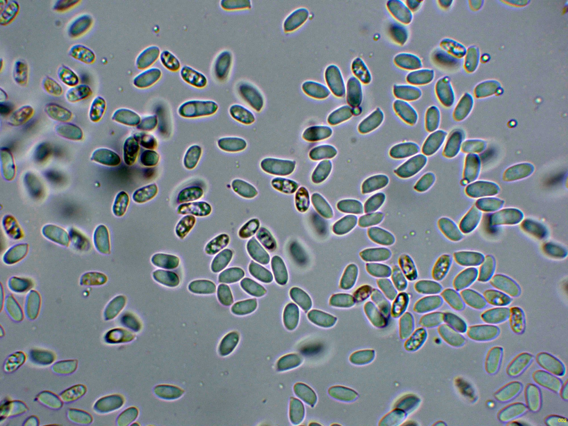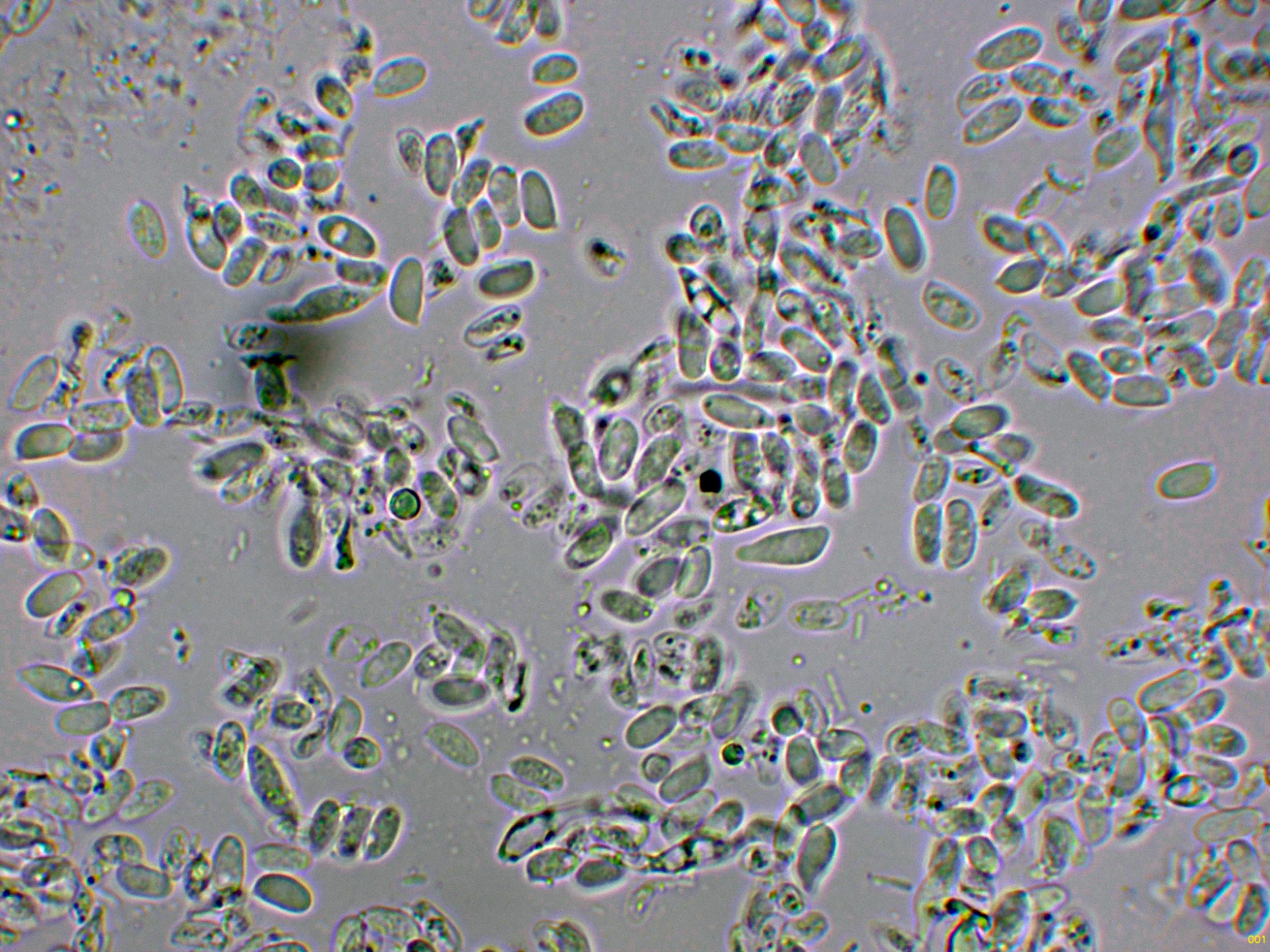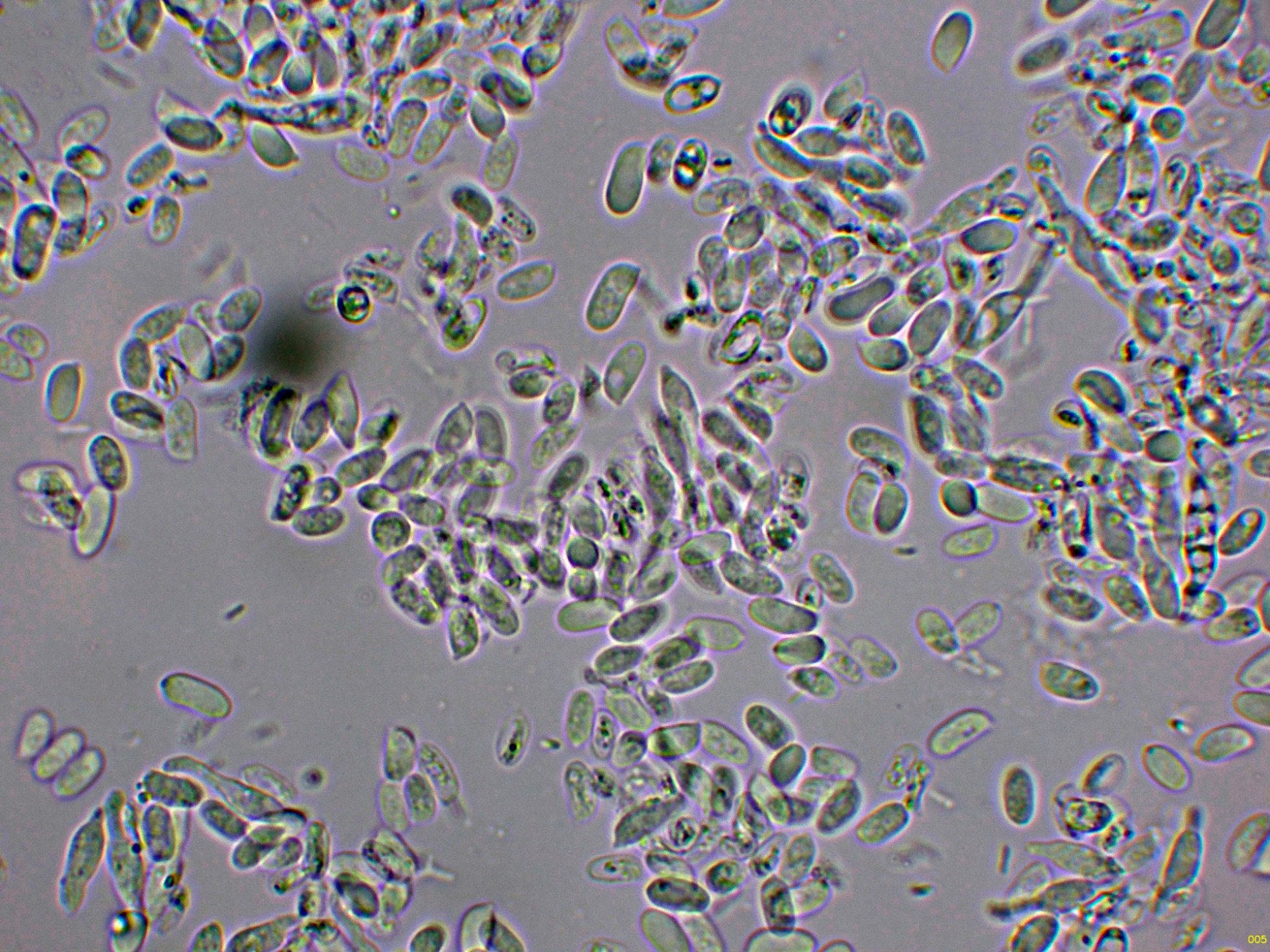 Las esporas obtenidas por esporulación natural y en agua, con una gran tendencia a agruparse.