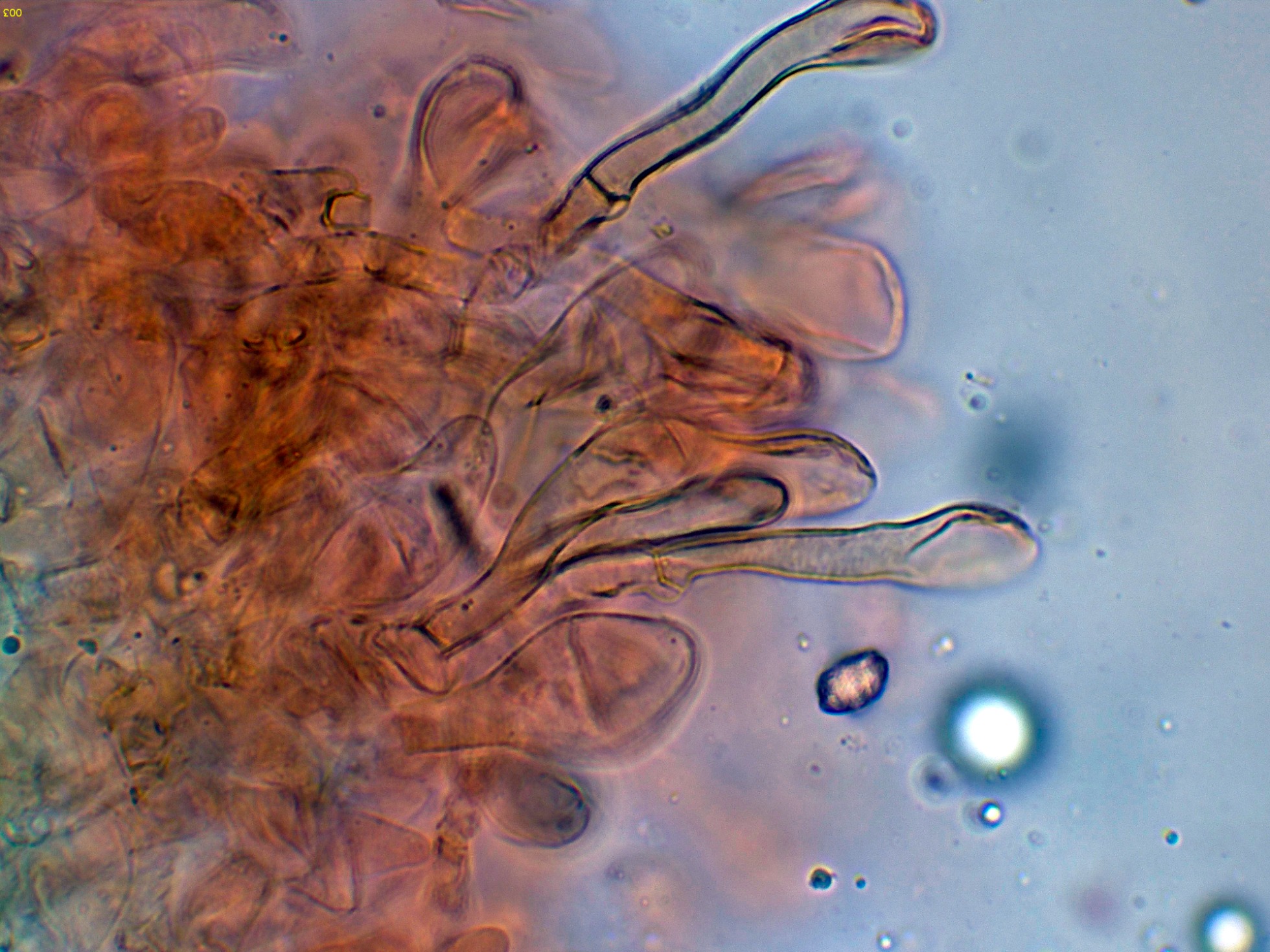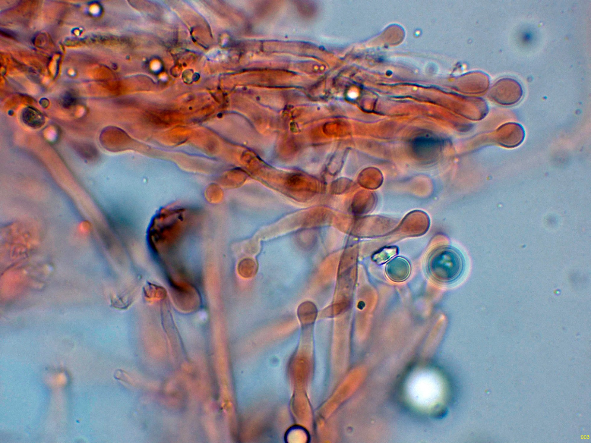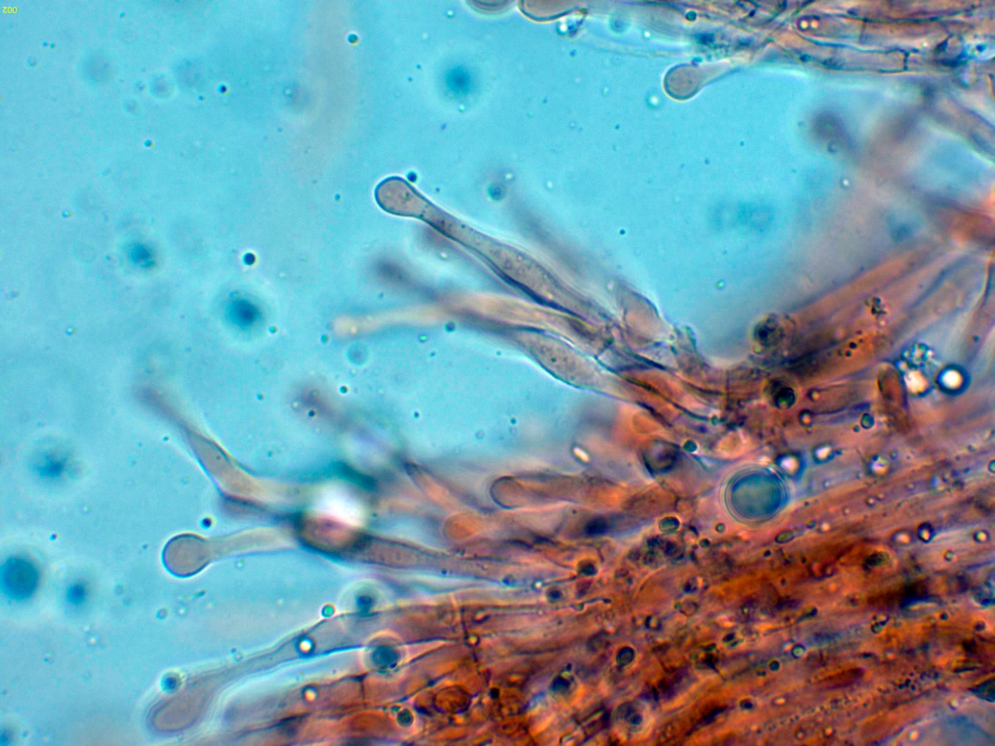 Caulocistidios abundantes, agrupados en mechones y capitados.