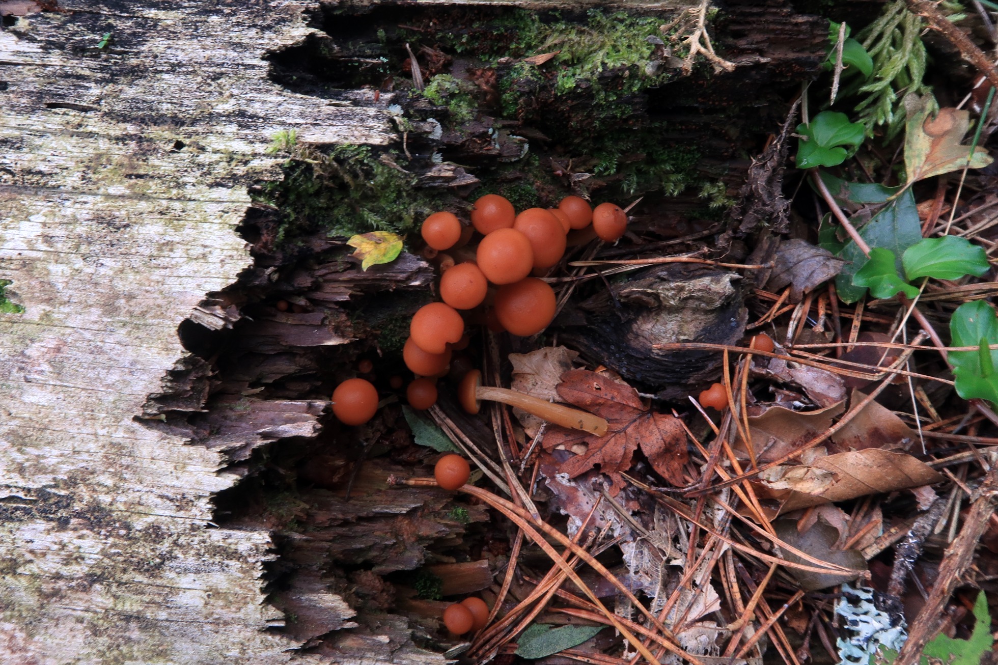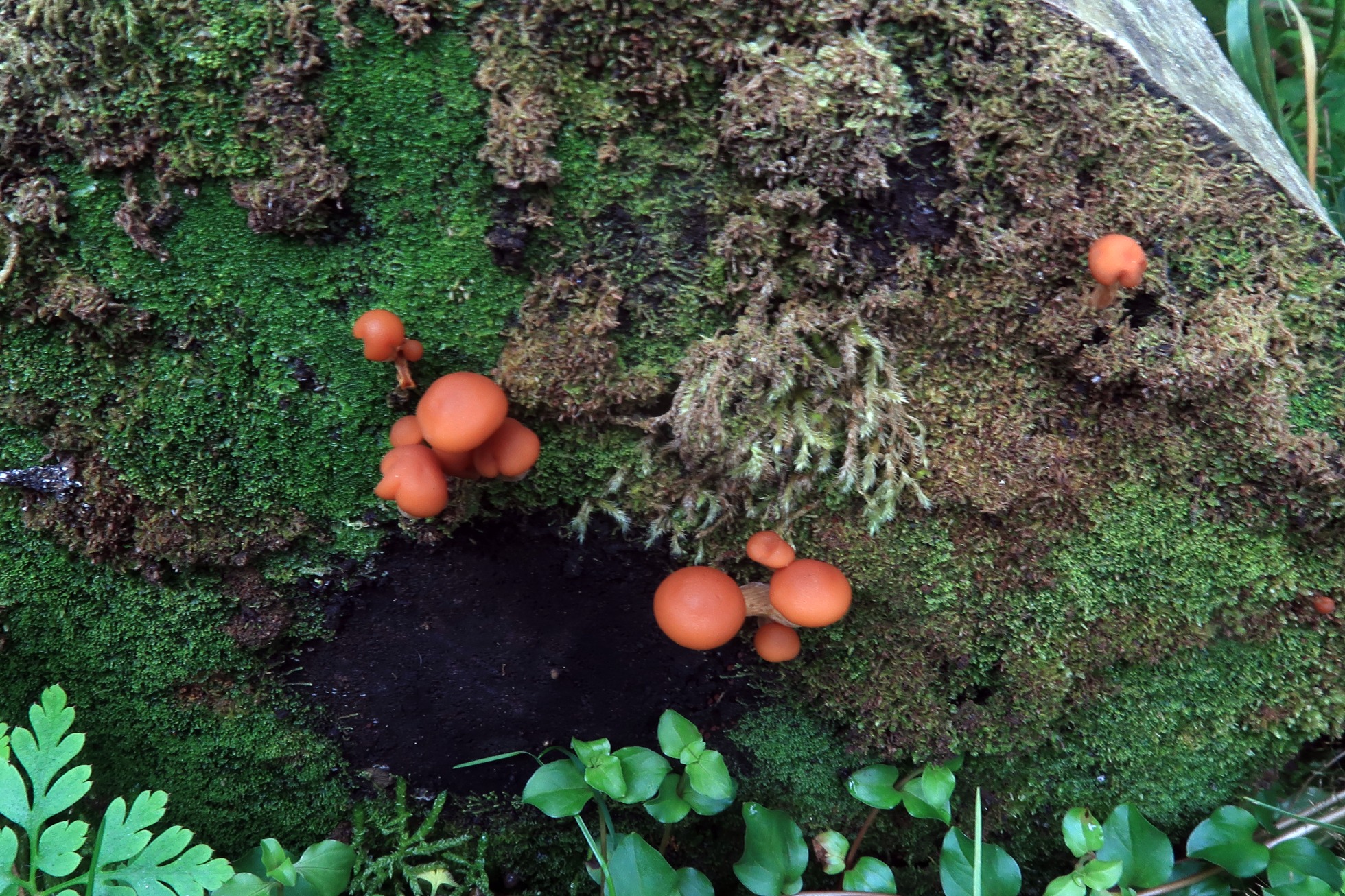 Un Gymnopilus fotografiado el 17 de septiembre brotando sobre un tronco de muy probablemente conífera, en la Selva de Oza.