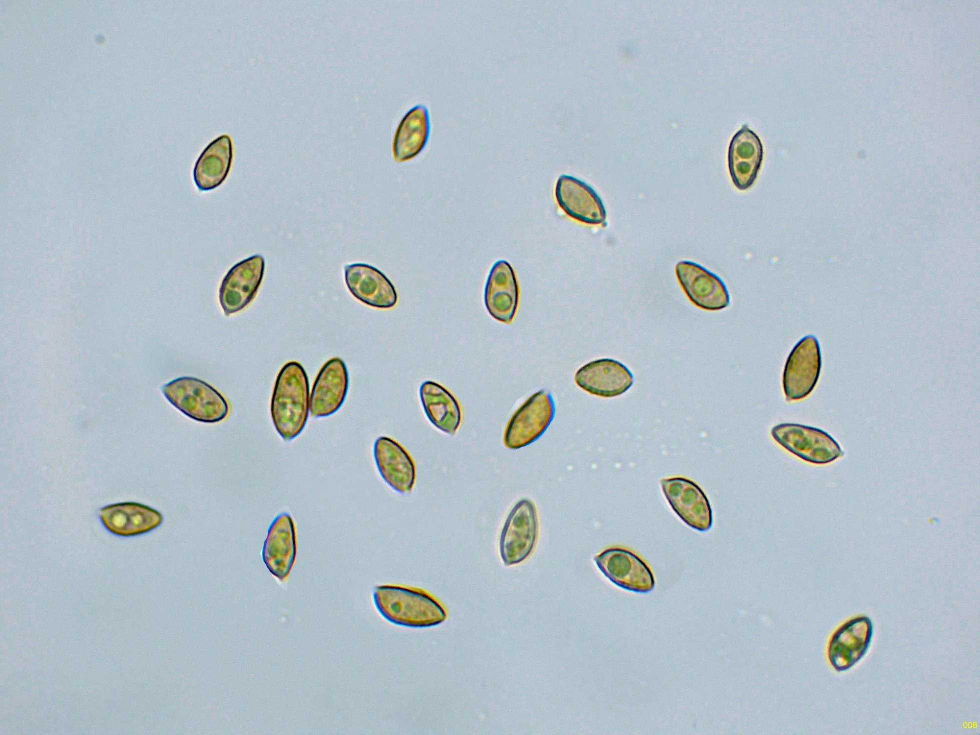 Esporas en reactivo de Melzer, con reacción ligeramente dextrinoide.