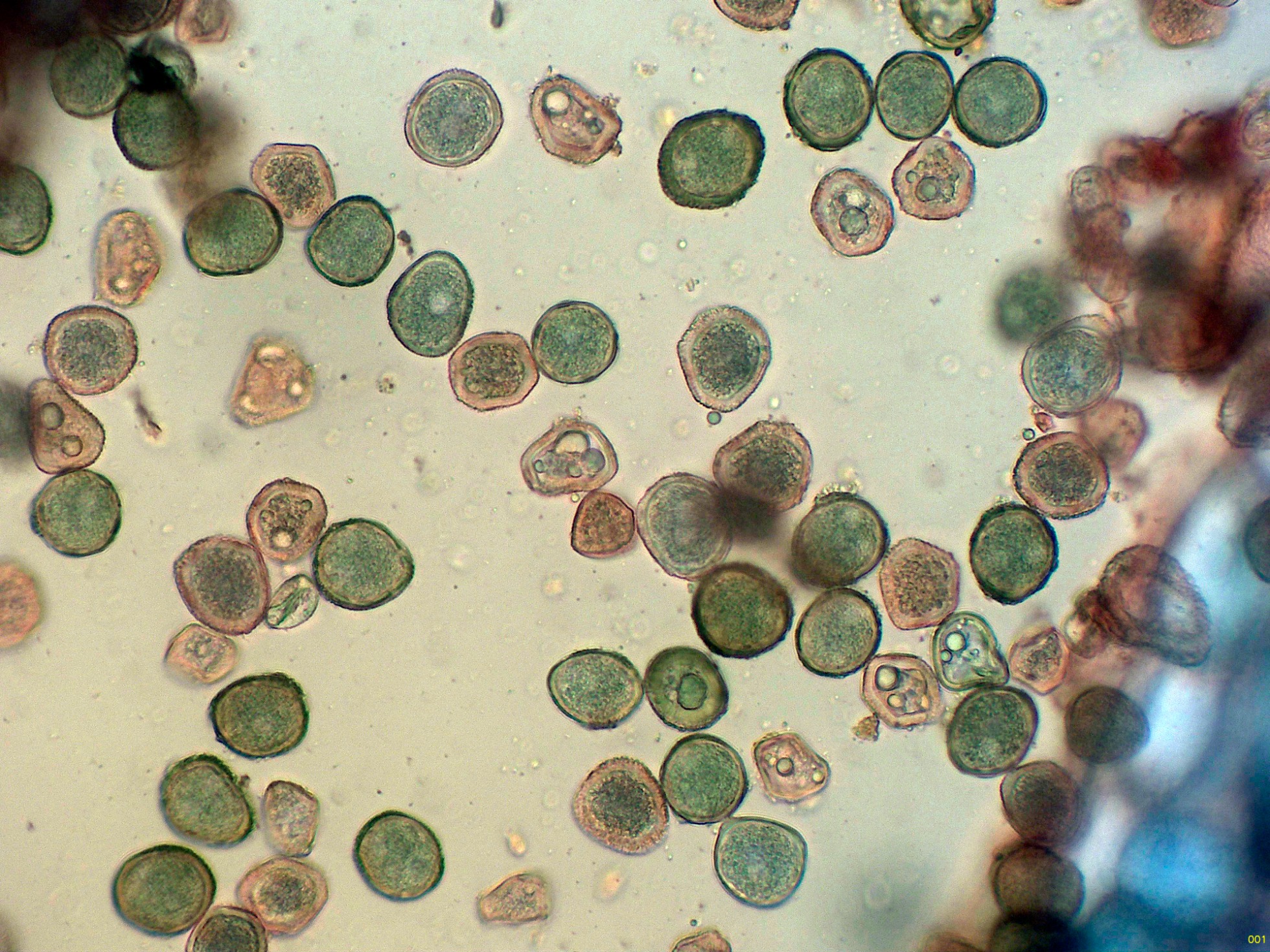 Estas eciosporas con unas medidas en Rojo Congo diluido de: