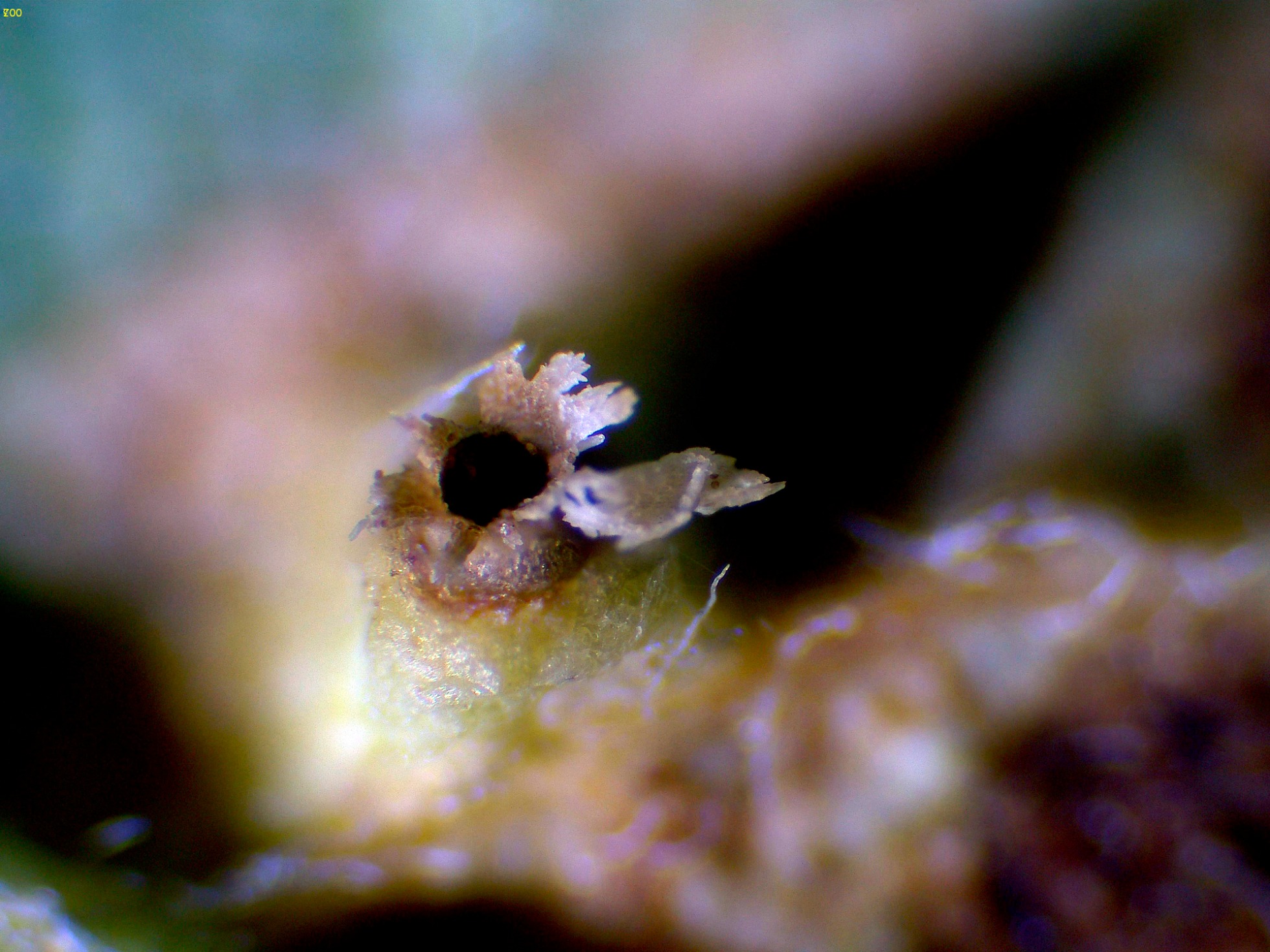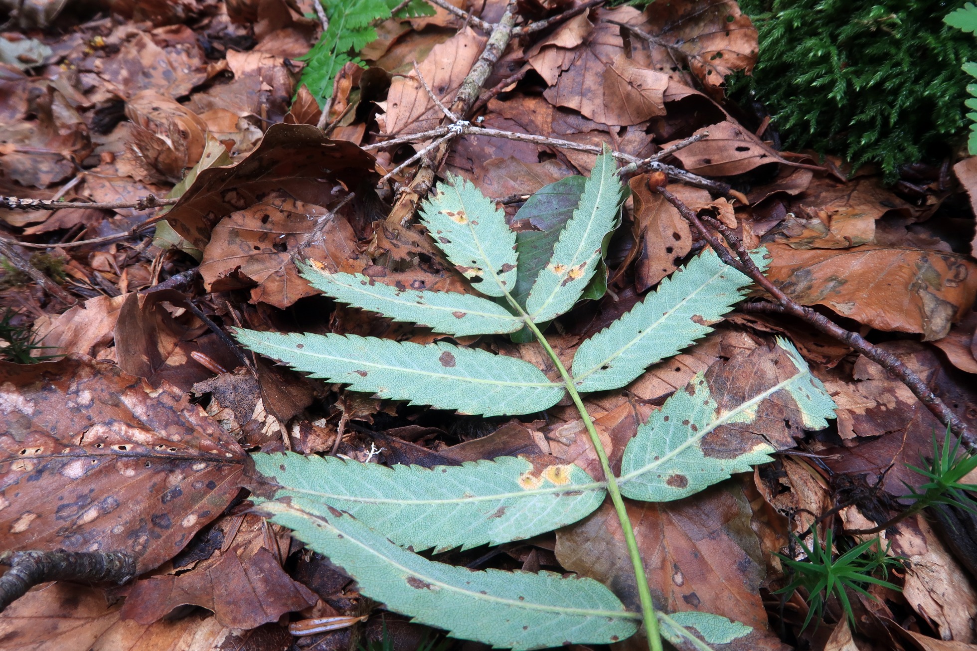 Un Gymnosporangium que tenía pendiente localizado el pasado 18 de septiembre en la zona de Somport, sobre unas hojas del suelo de Sorbus aucuparia, en un punto fronterizo entre España y Francia.