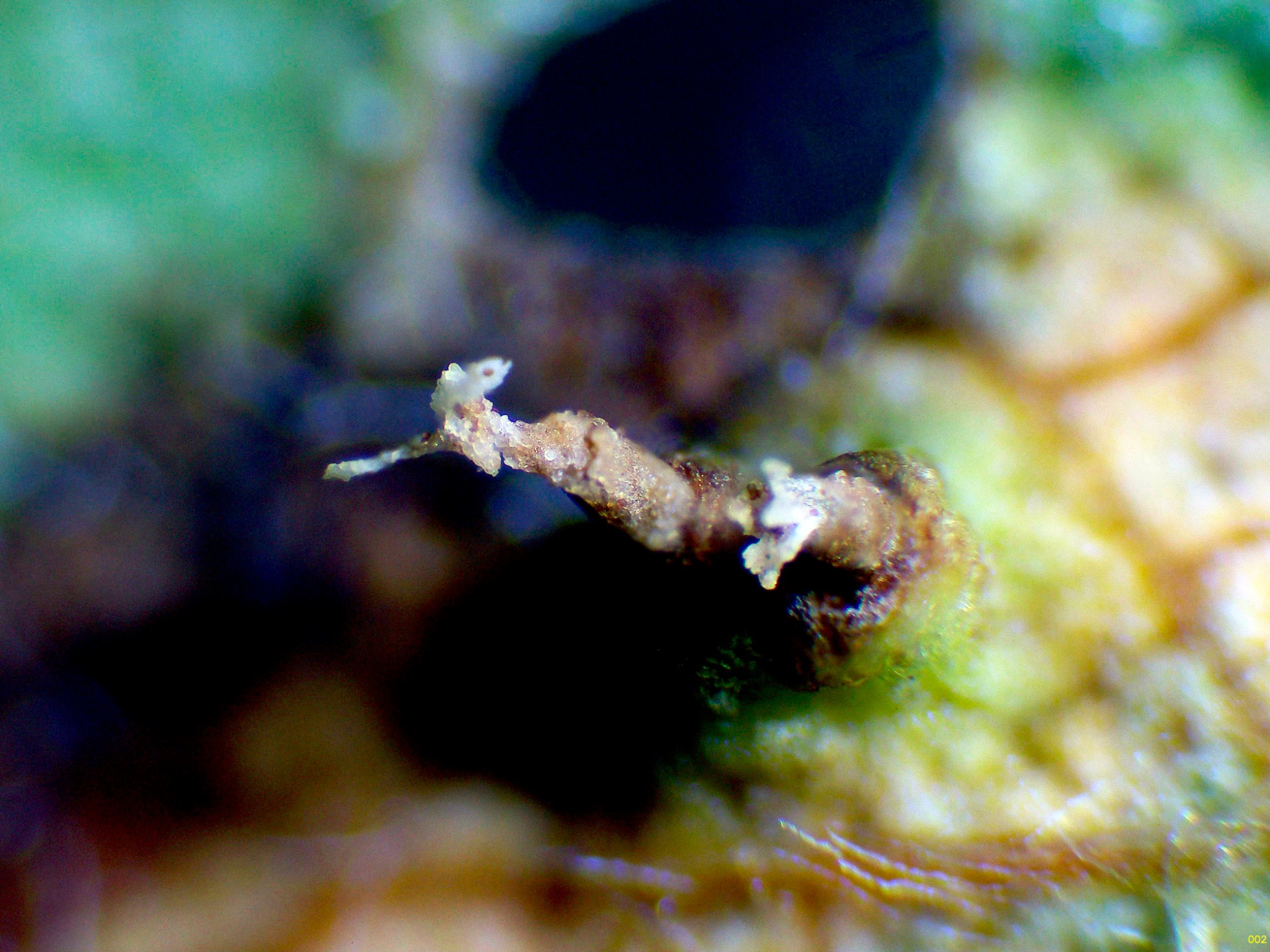 Fructificaciones a modo de cuernos que dan lugar a su apellido.
