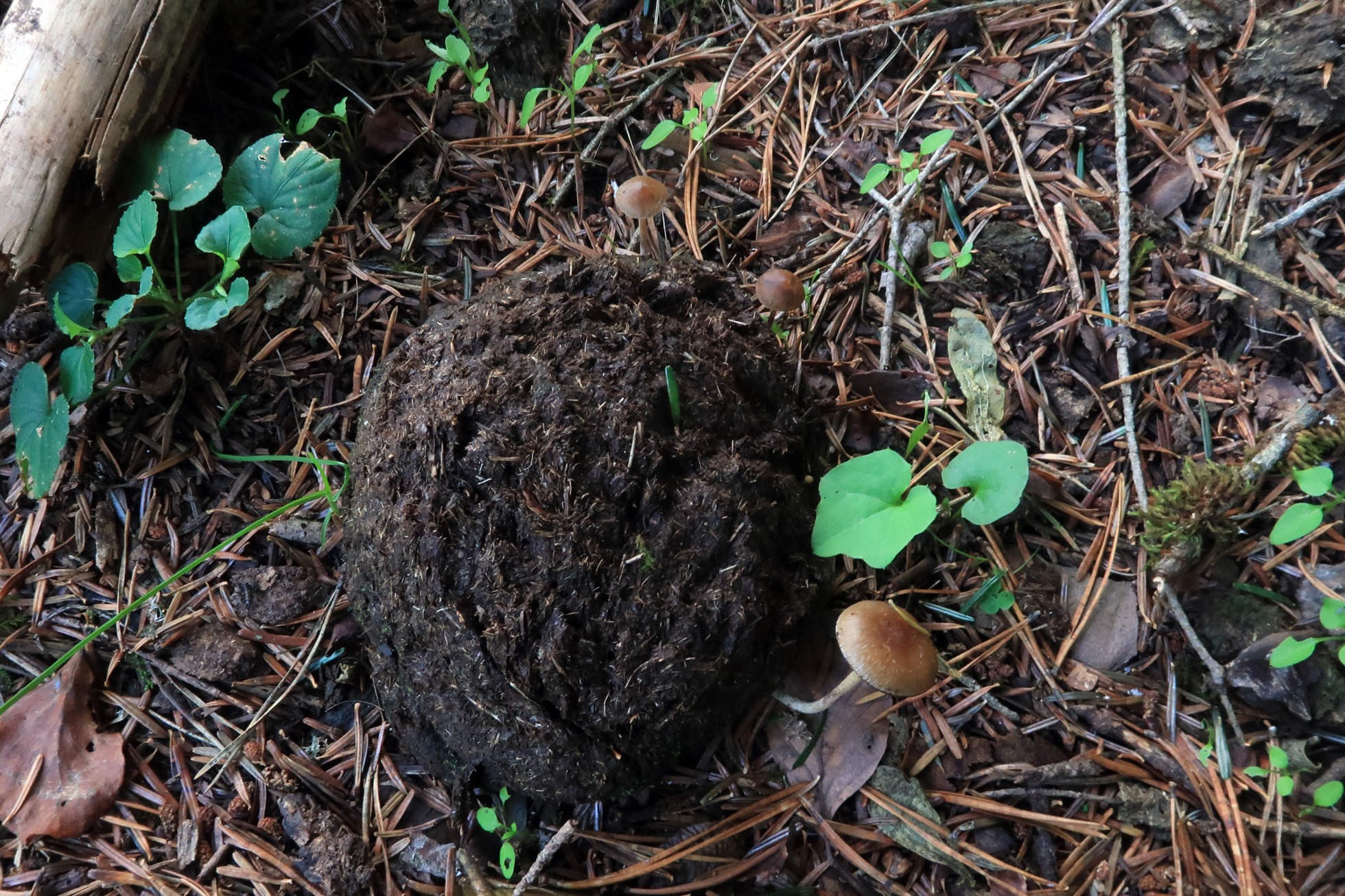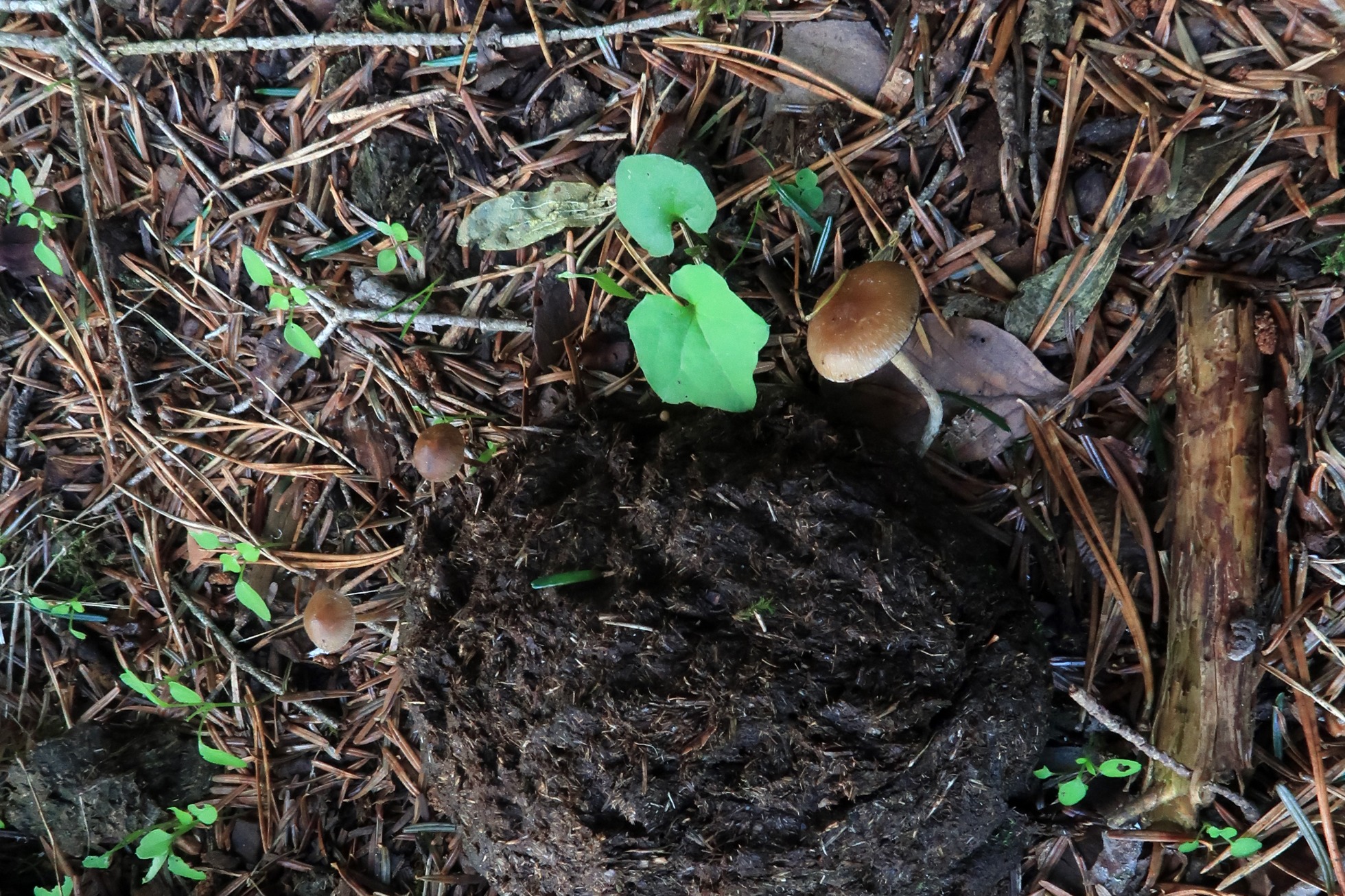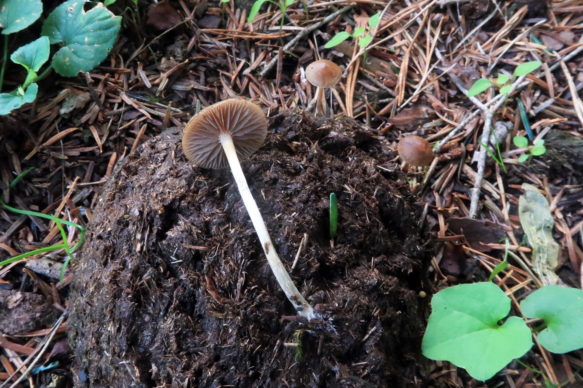 Un Psilocybe que tenía pendiente, fotografiado el pasado 17 de septiembre brotando directamente sobre excrementos, en la Selva de Oza.