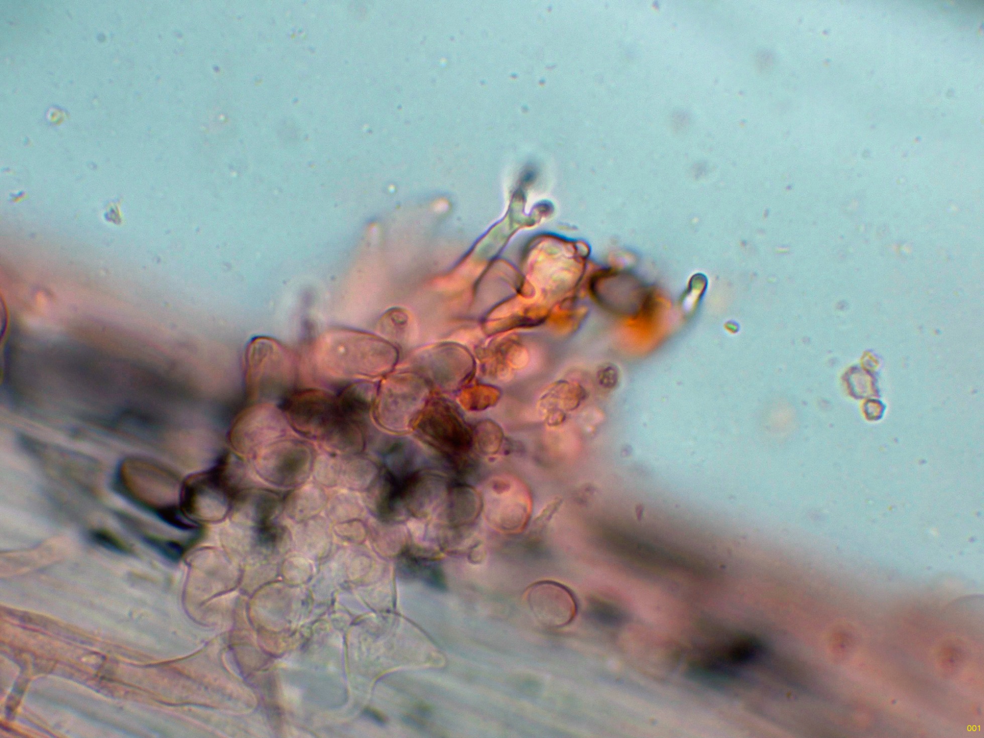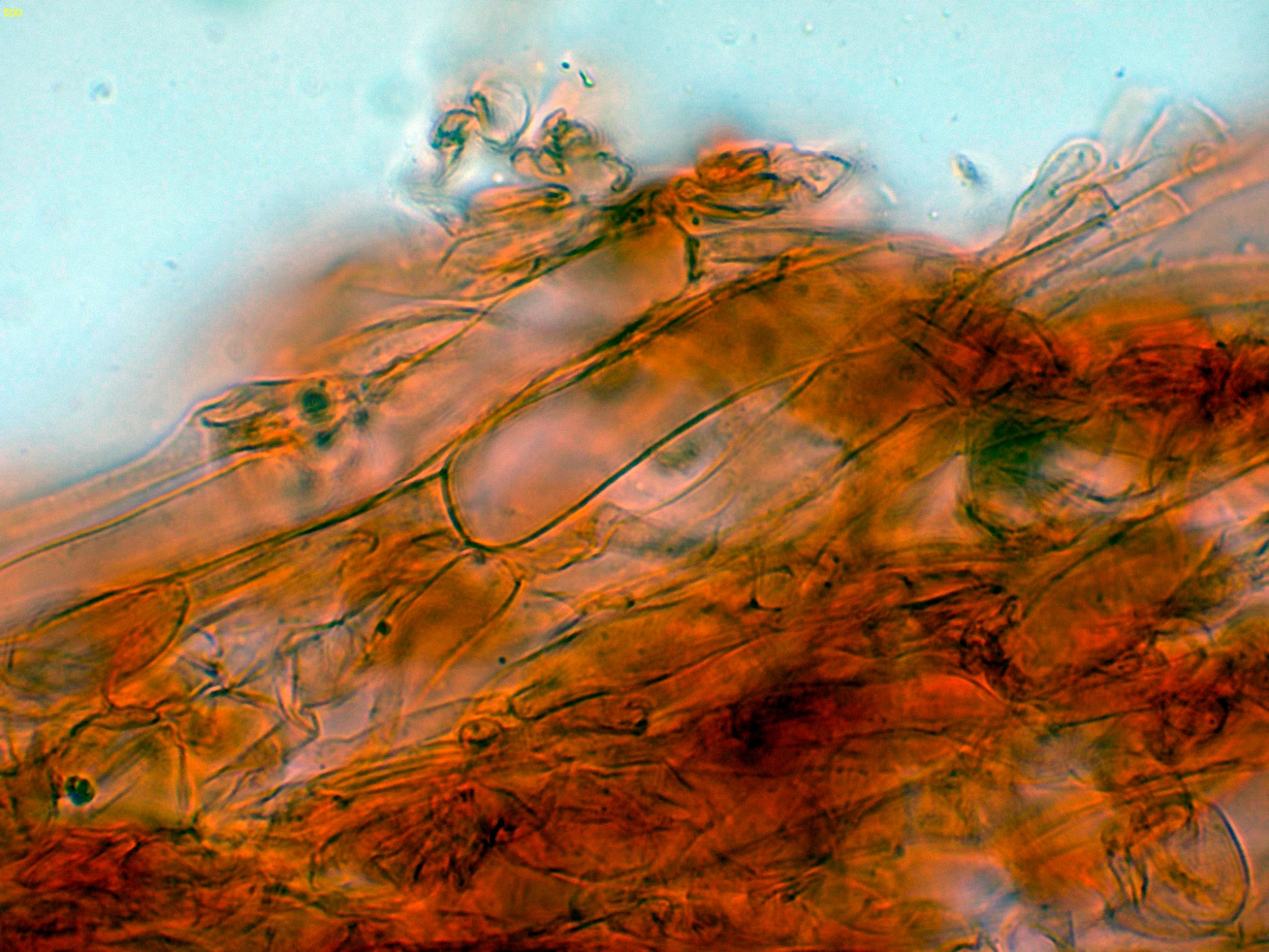 Suprapellis formada por hifas filamentosas, dispuestas paralelamente, con algunas fíbulas dispersas.