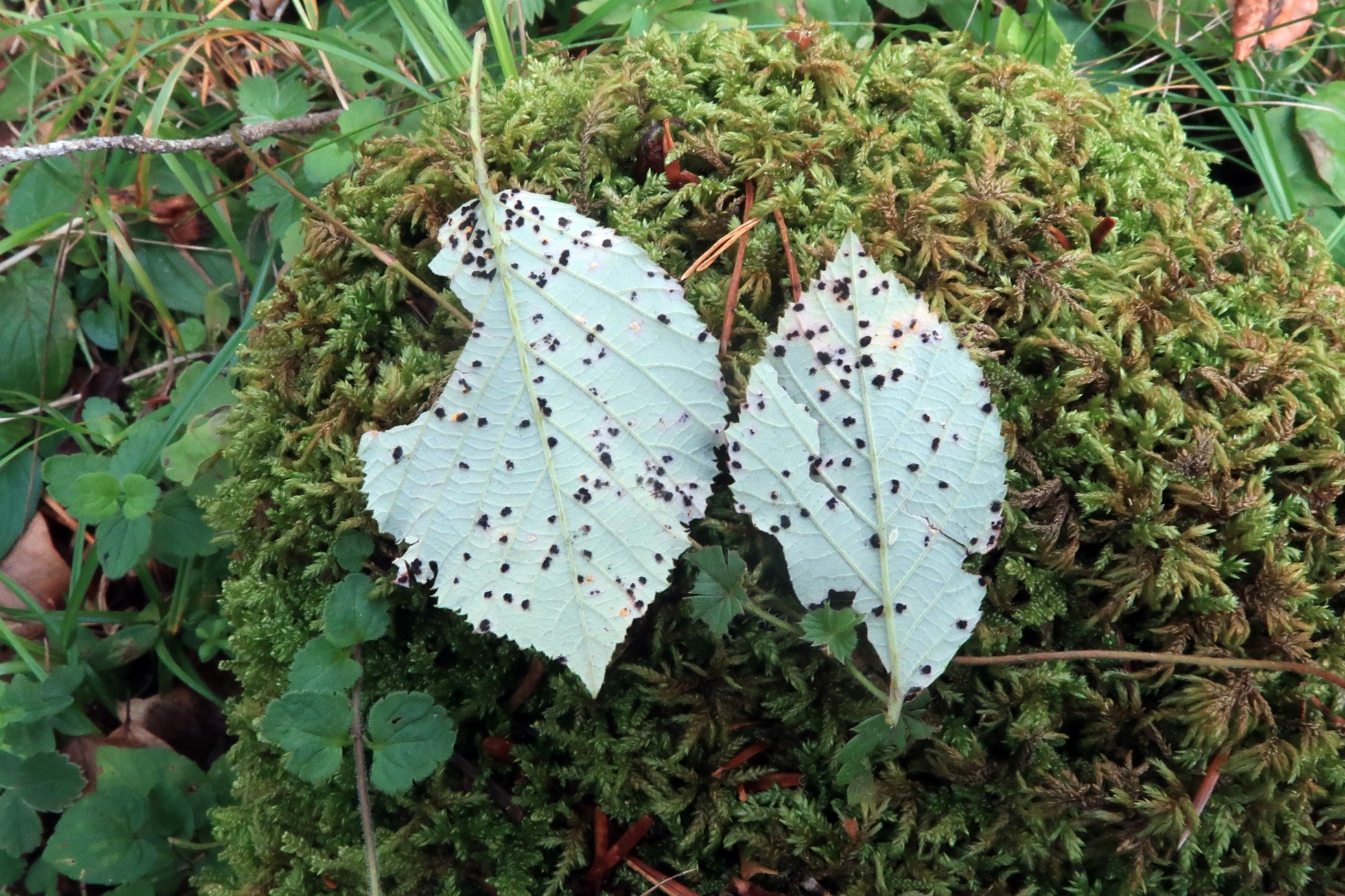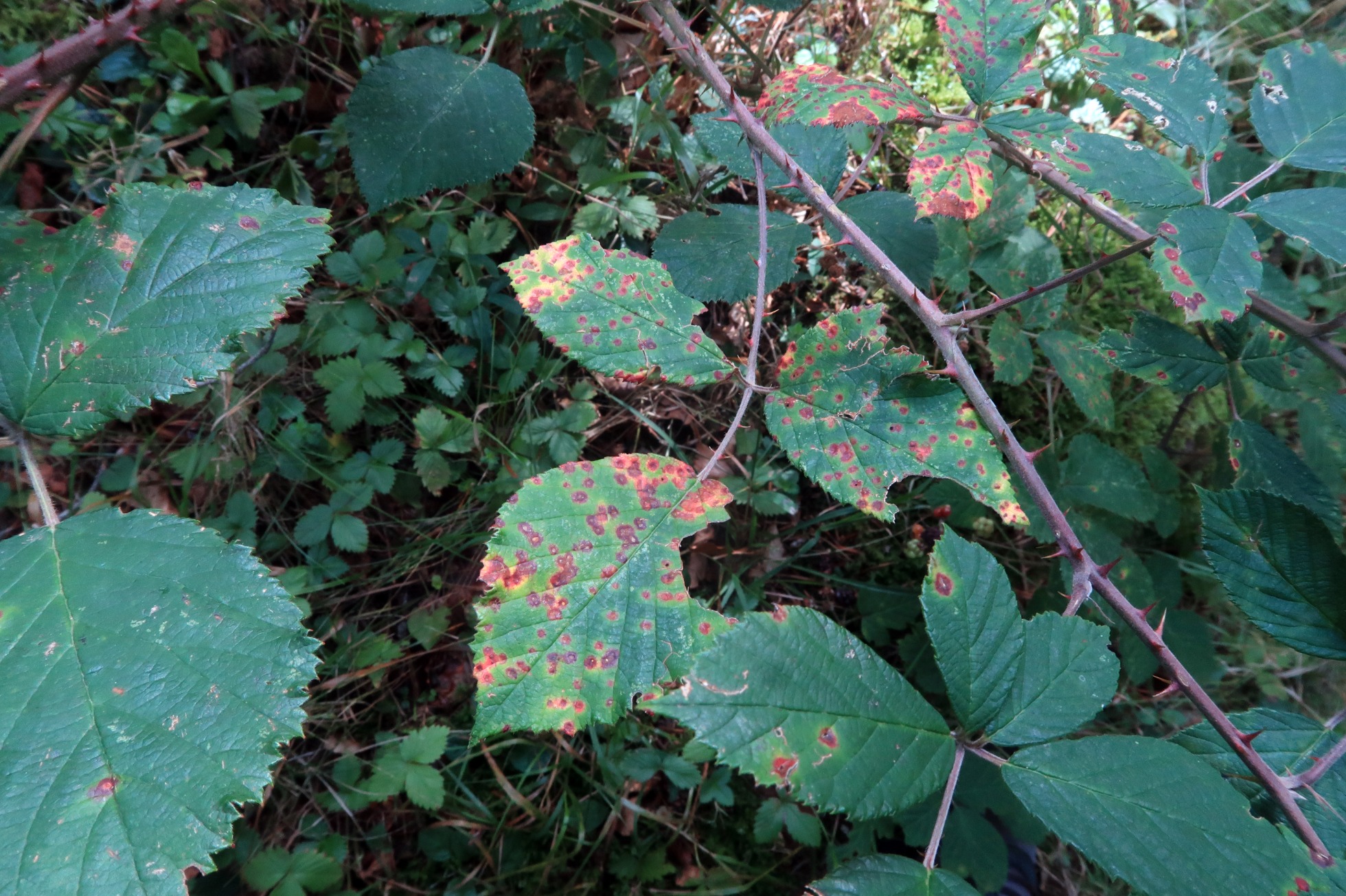 Hojas de zarza afectadas por el hongo.