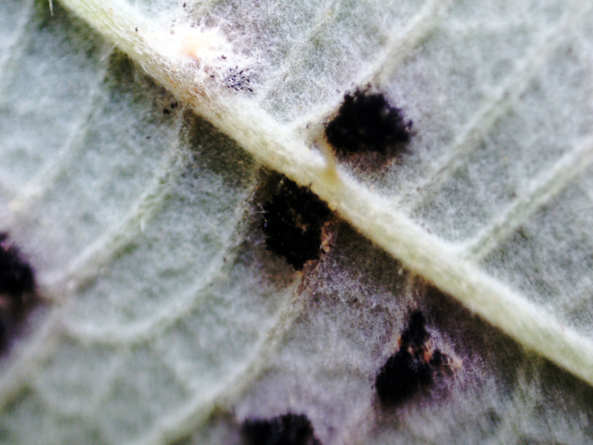 Un Puccinial fotografiado el 17 de septiembre brotando sobre unas hojas de Rubus ulmifolius, en la Selva de Oza.