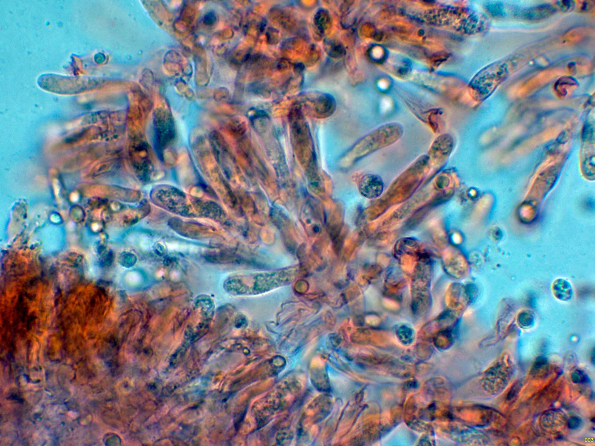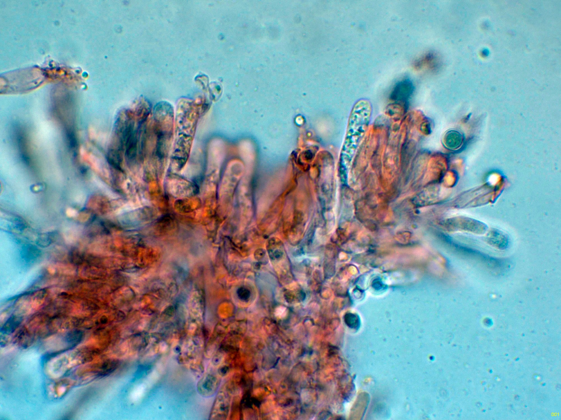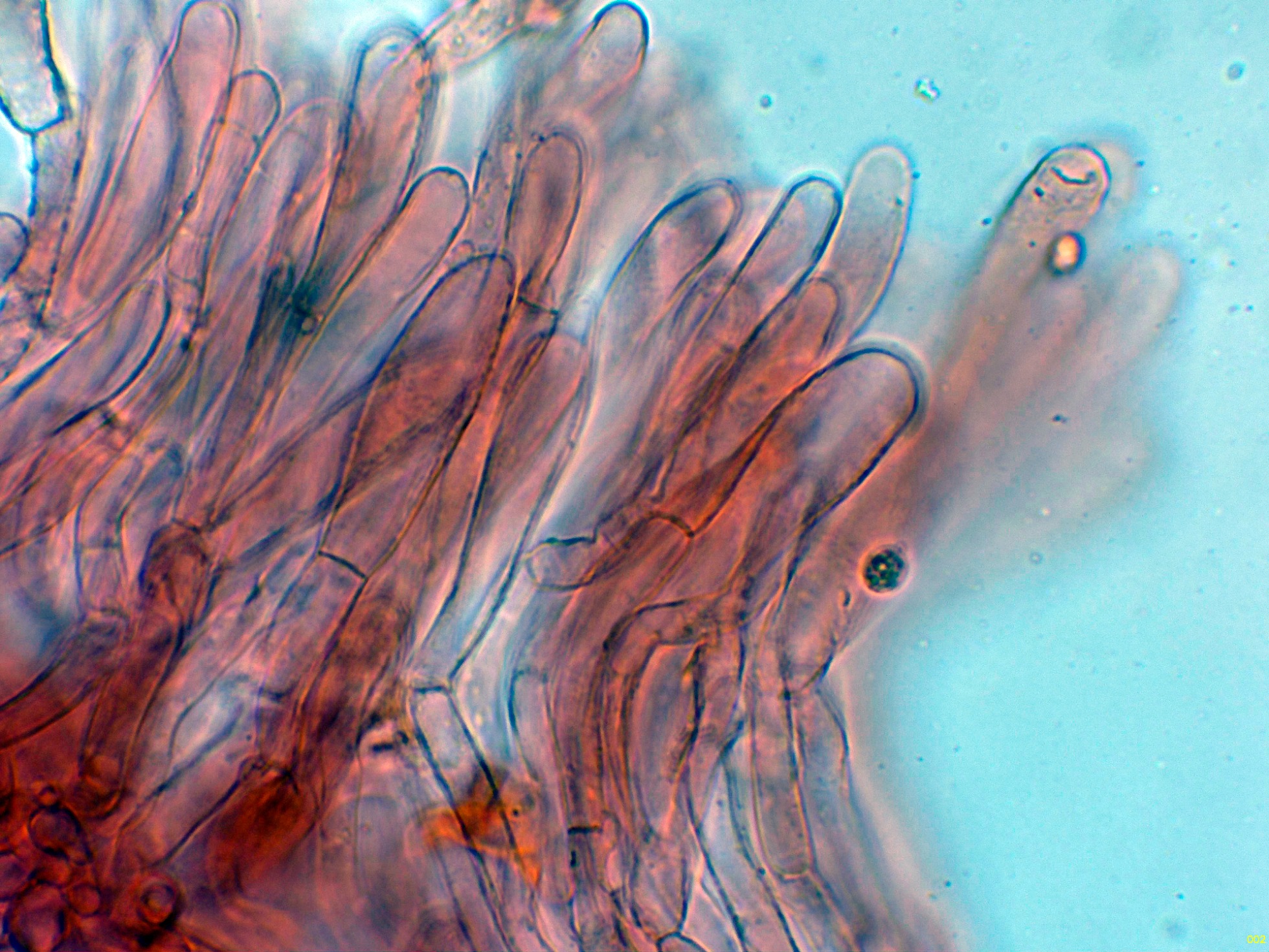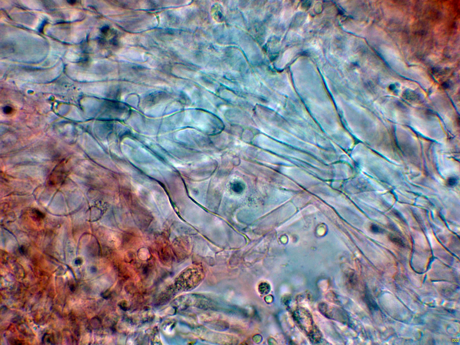 Por debajo de esta capa, en la subpellis unas hifas filamentosas terminales sin fíbulas observadas.