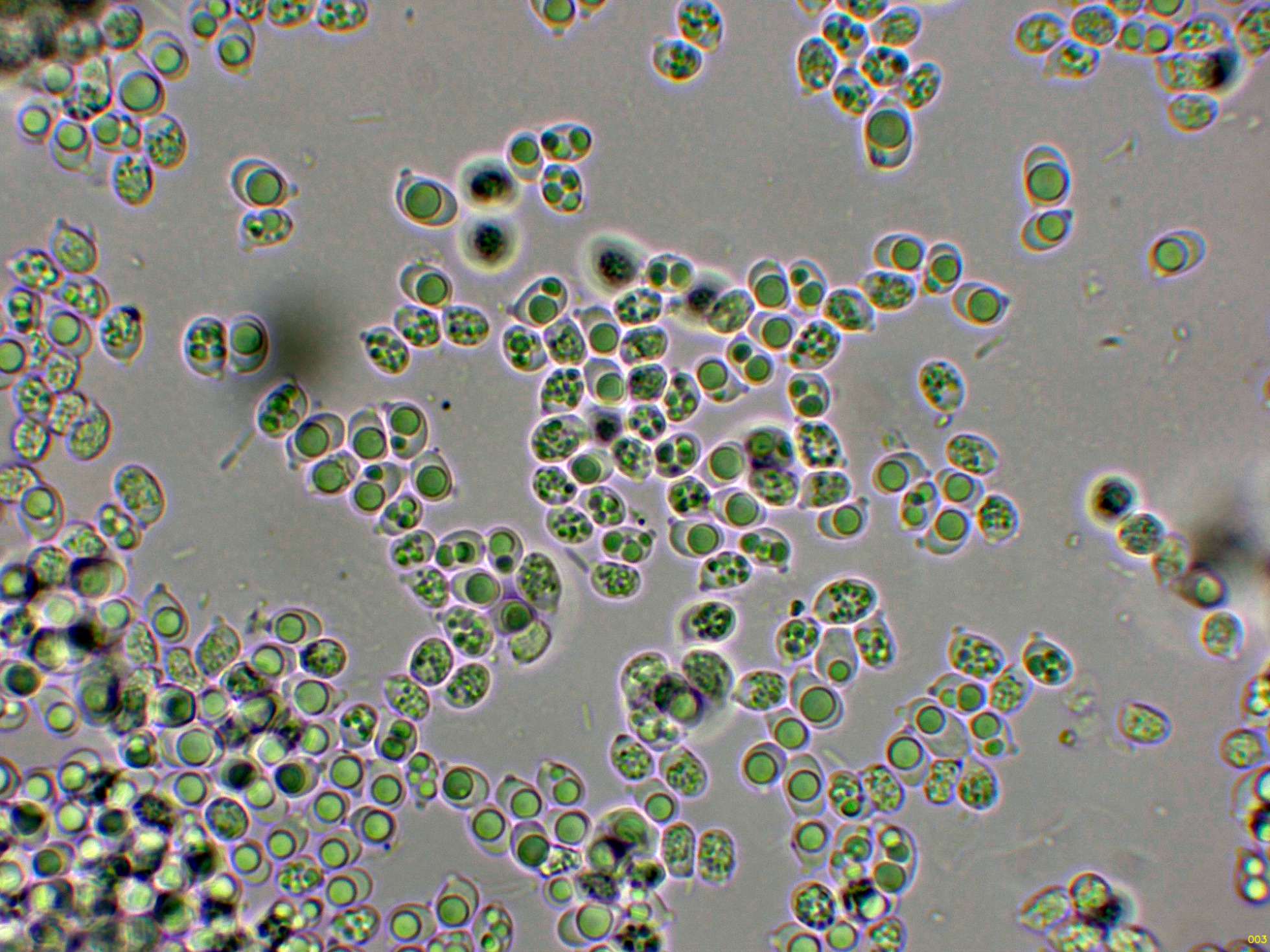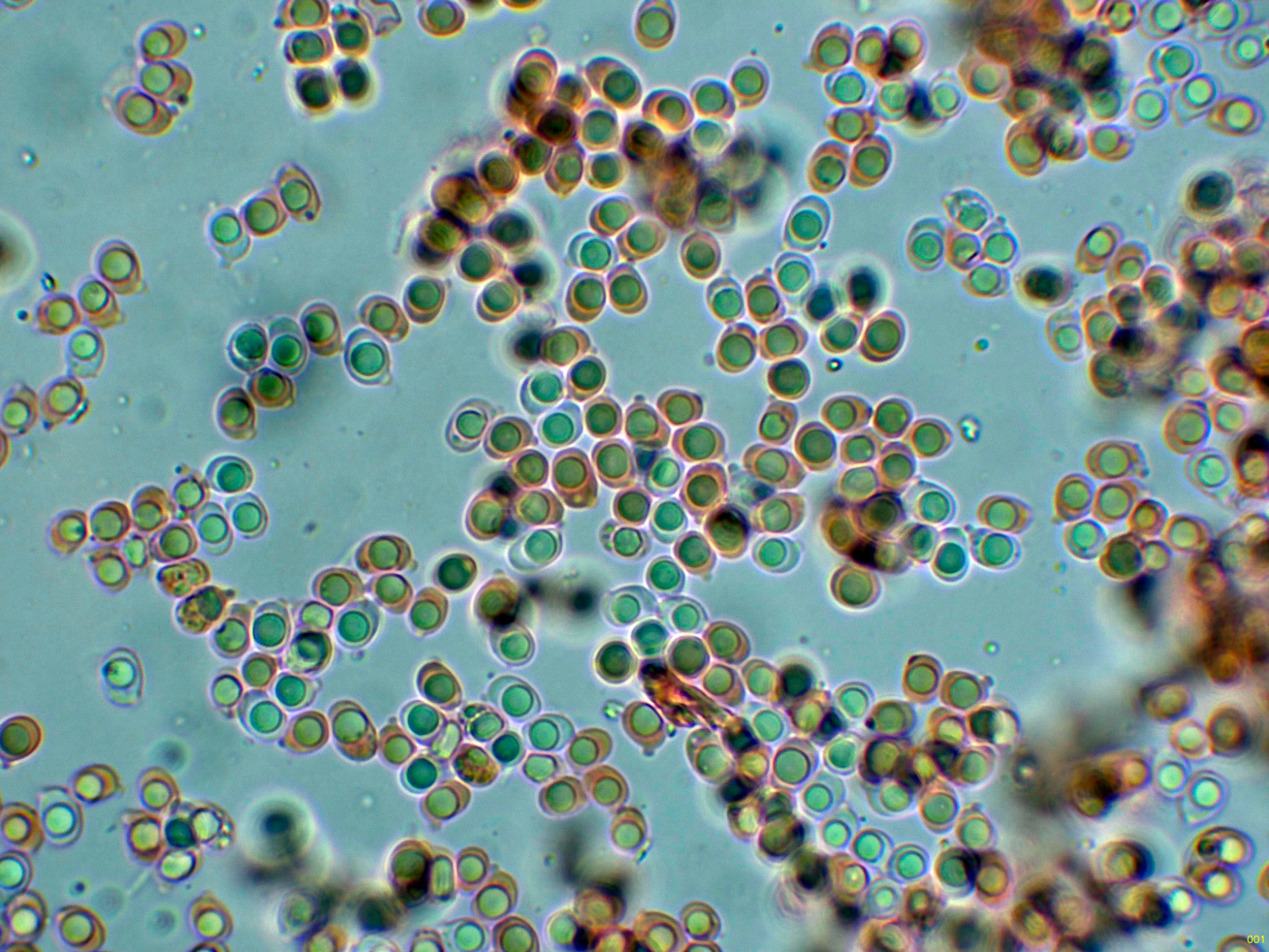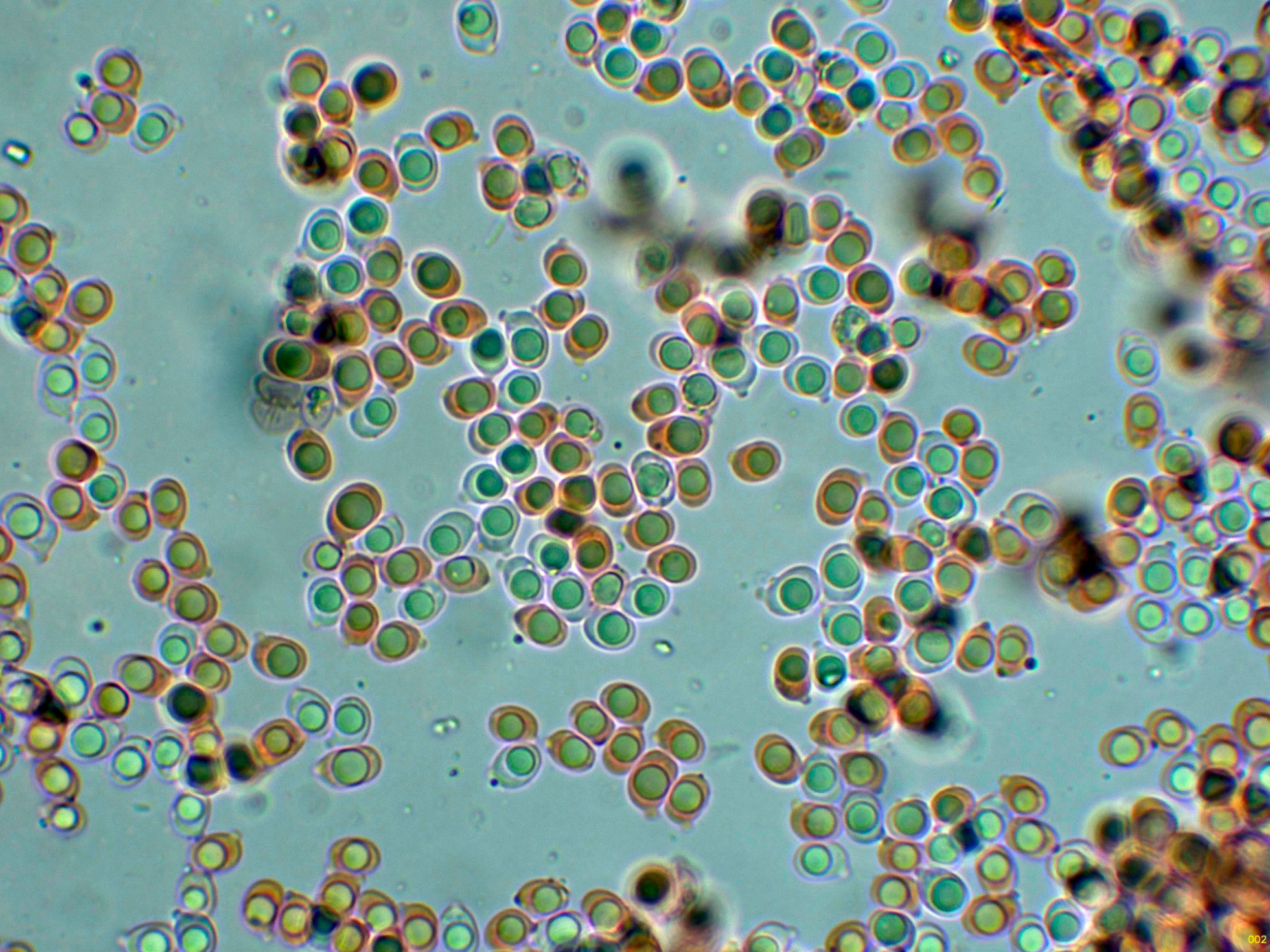 Las esporas en solución de Rojo Congo diluido.