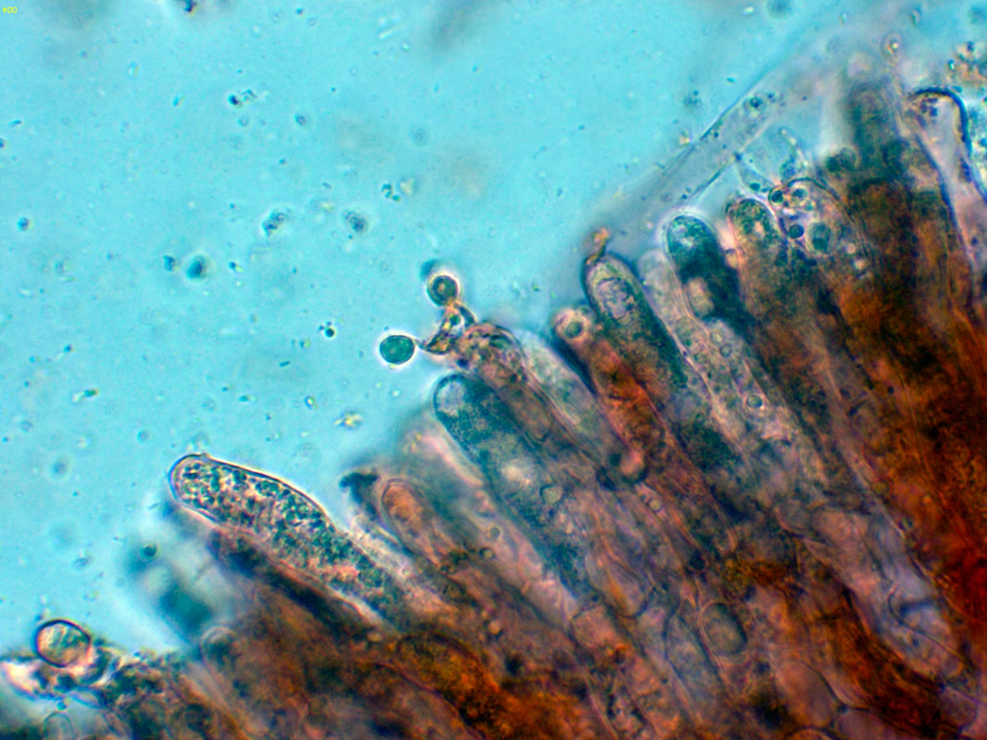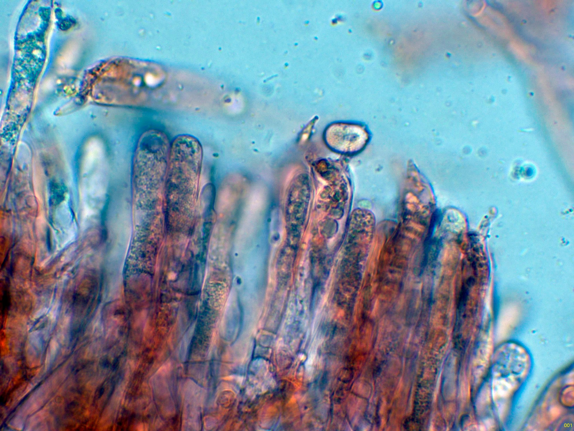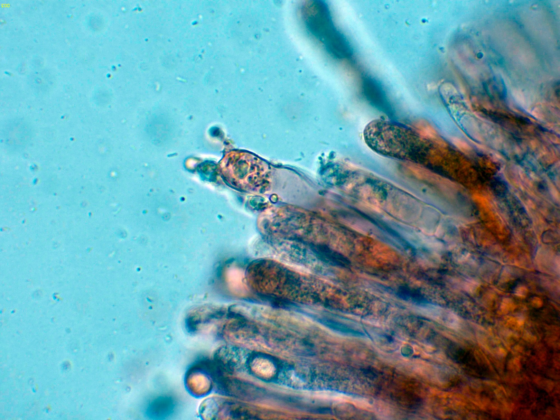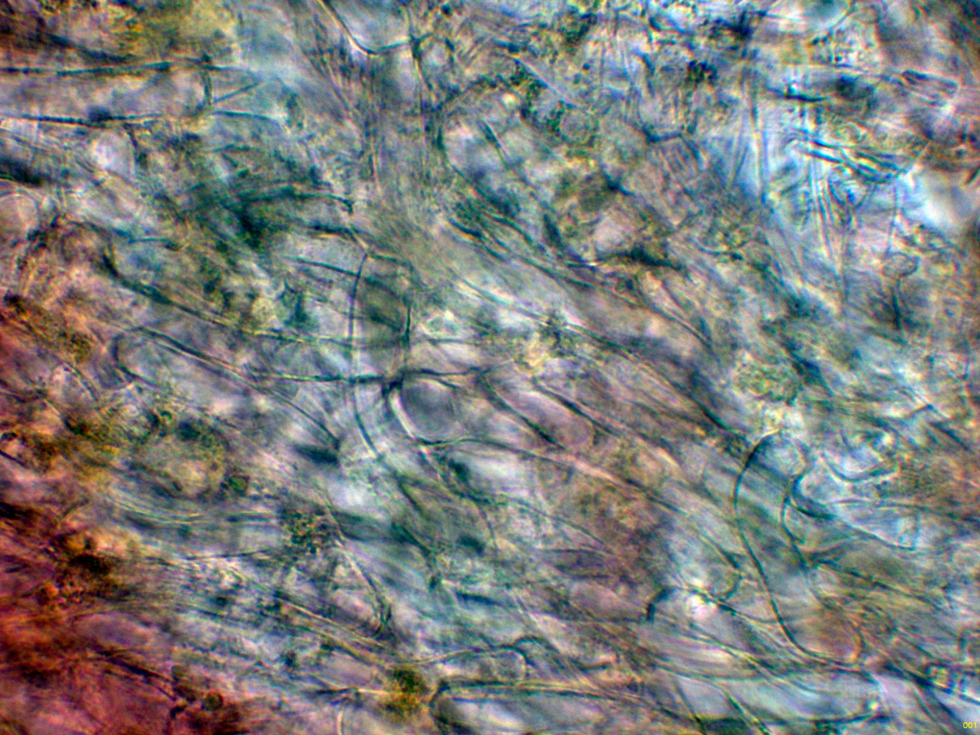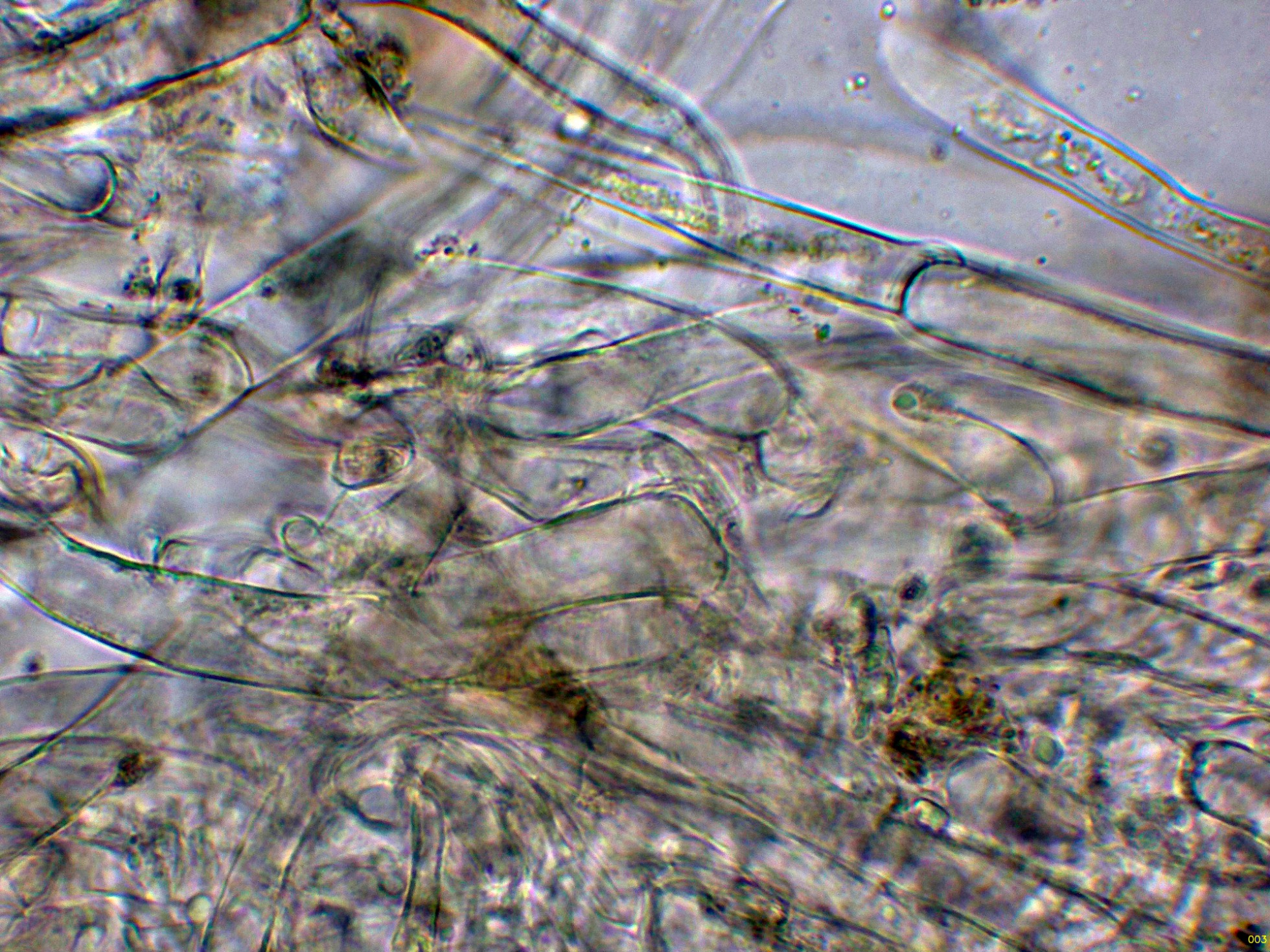 Hifas de la suprapellis en agua, con los tabiques provistos de fíbulas.