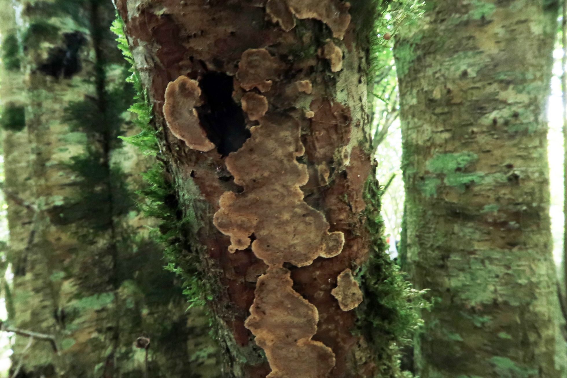 La Hypocreopsis rhododendri parasita a la Hymenochaete corrugata, actualmente denominada: