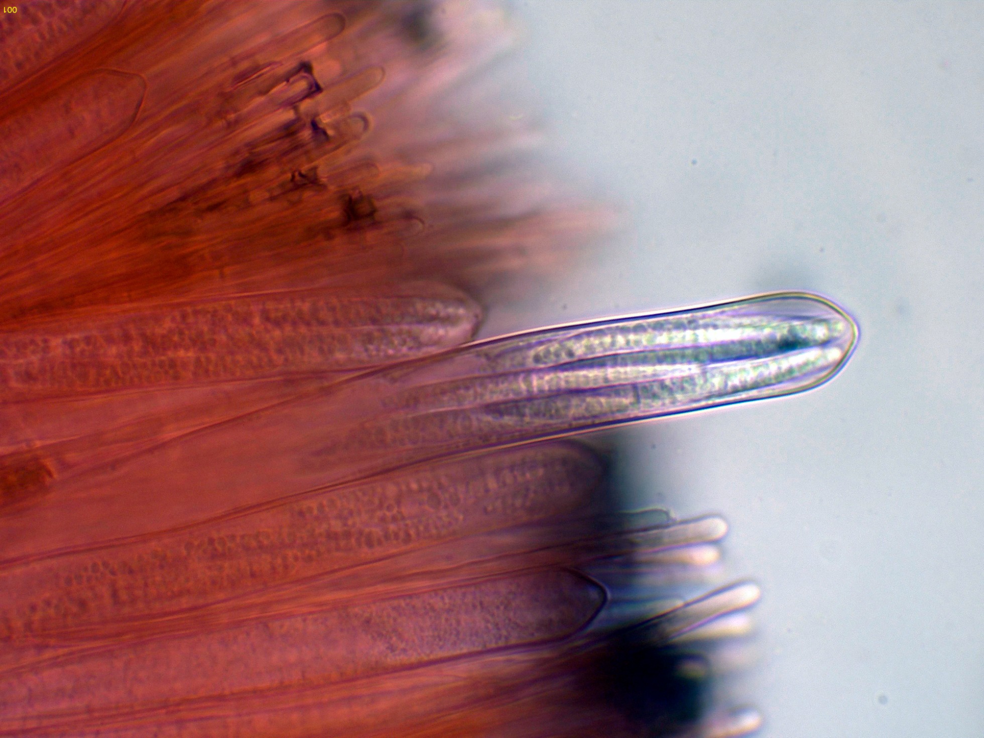 Ascos con reacción amiloide de su diminuto aparato apical (IKI +)